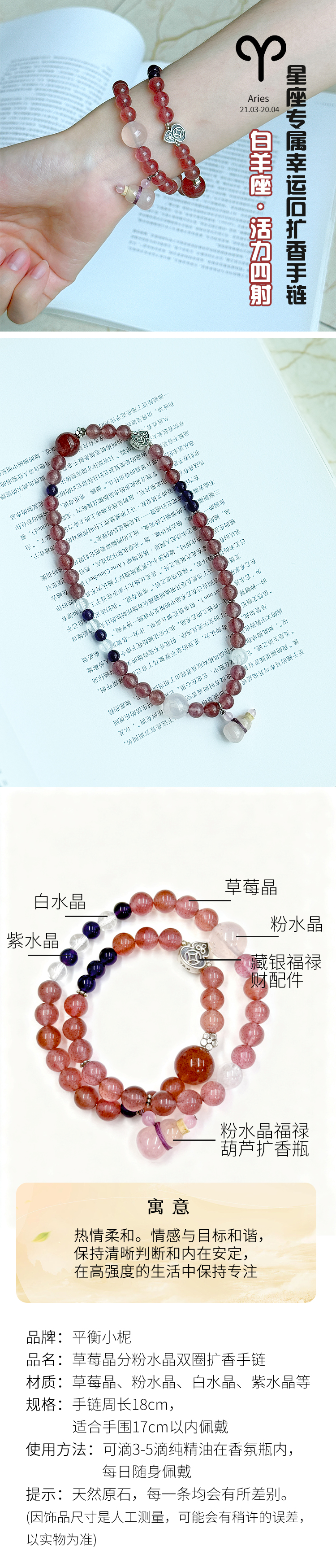 十二星座升级版专属幸运石扩香手链手串两圈白羊座