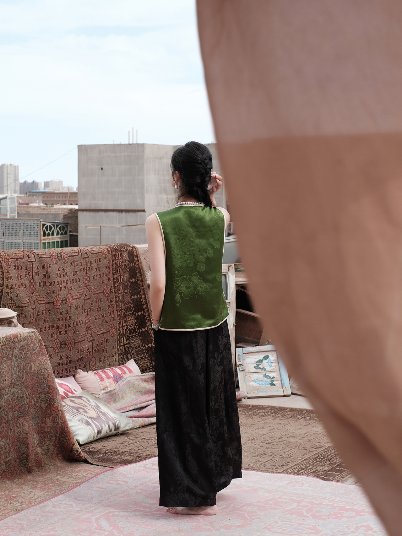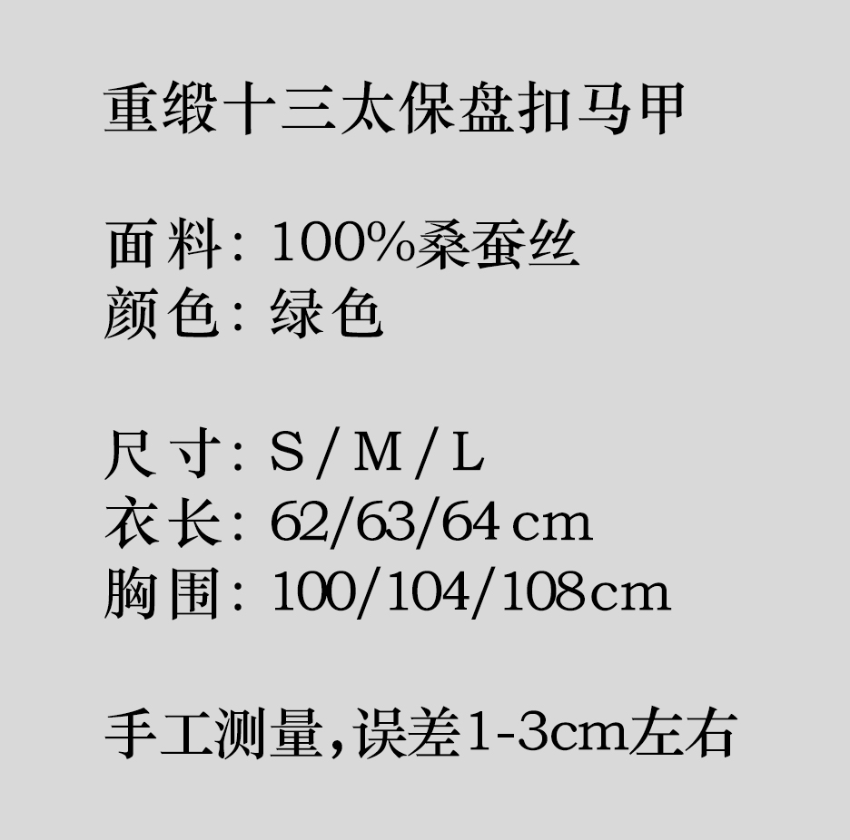 盛唐牡丹盛奢系列| 限量款| 高货-重缎十三太保盘扣马甲-绿色(特殊商品不退不换-内里白色、棕色随机发)