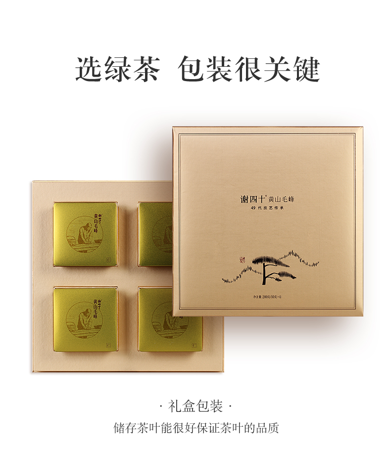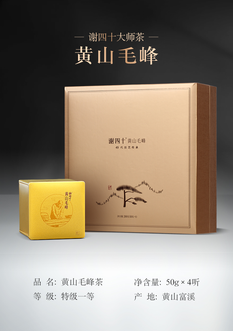 谢四十大师茶黄山毛峰礼盒装200克绿茶