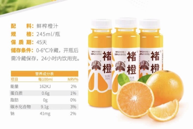 褚橙NFC鲜榨橙汁245ml纯果汁非浓缩无添加饮品橙汁12瓶
