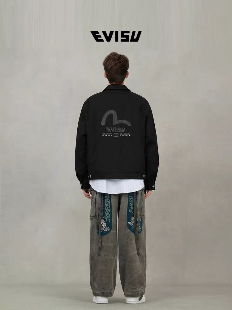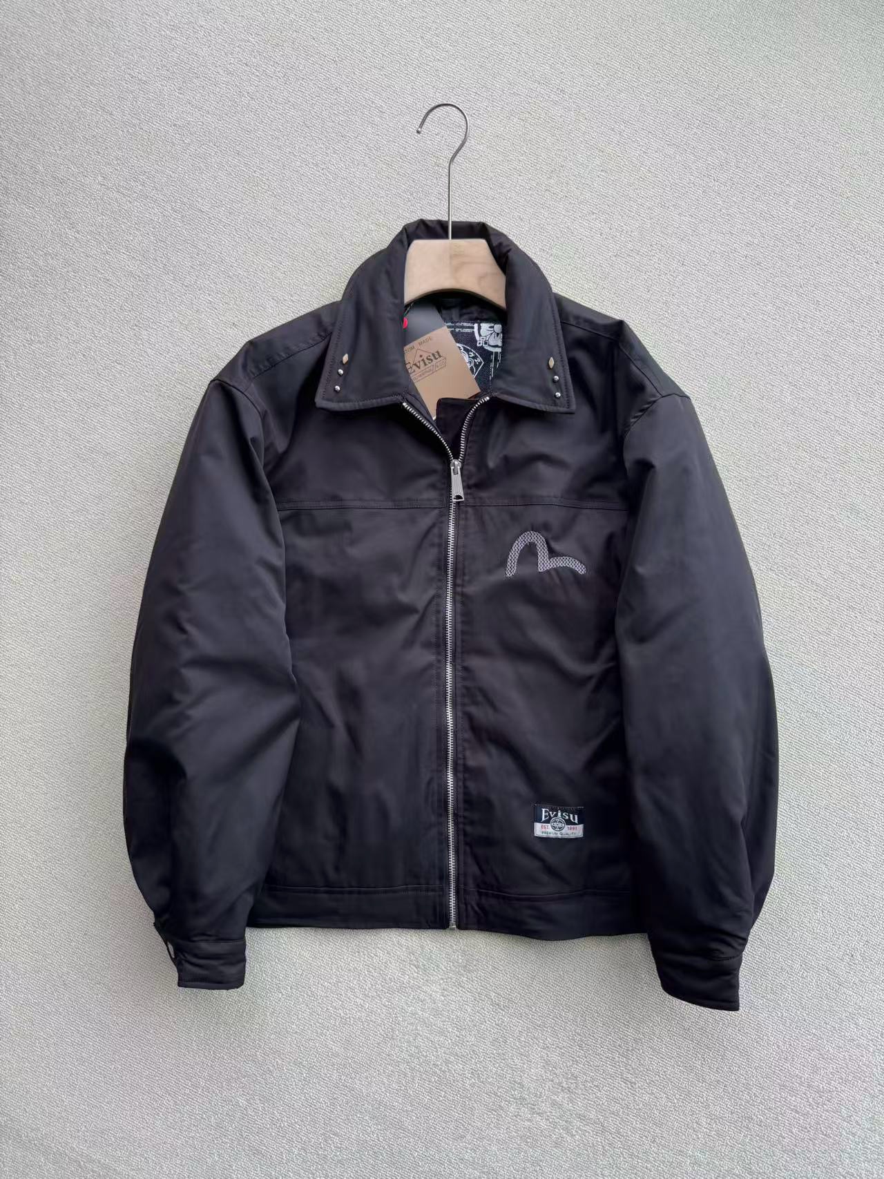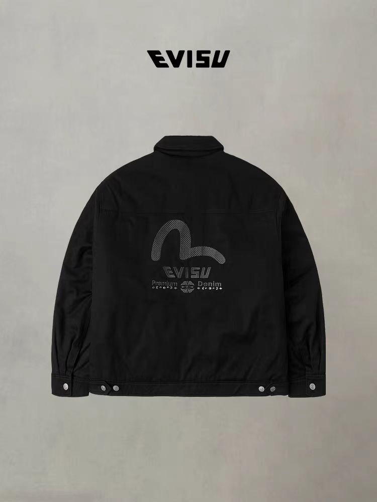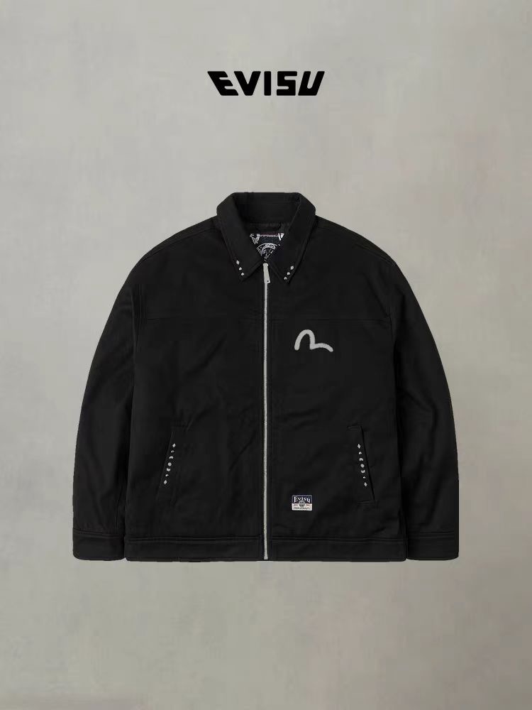 EVISU福神 2025冬季新品男士商标刺绣翻领加厚休闲通勤夹克外套