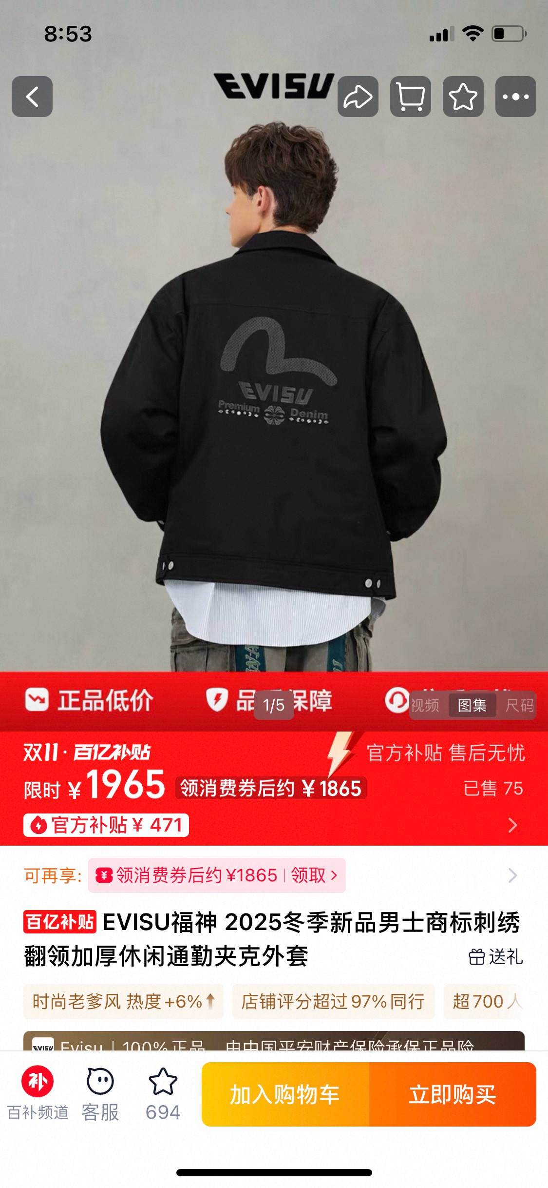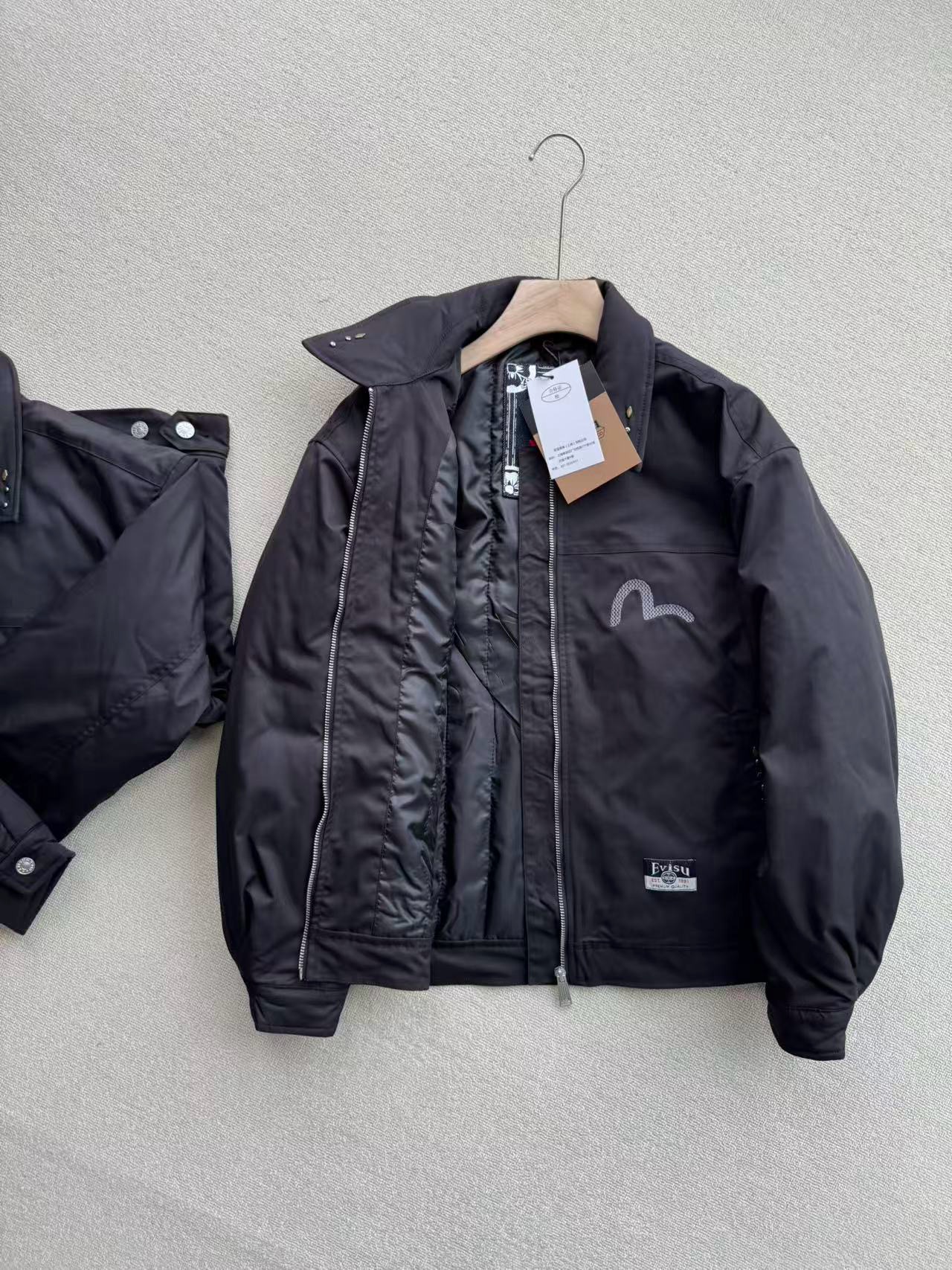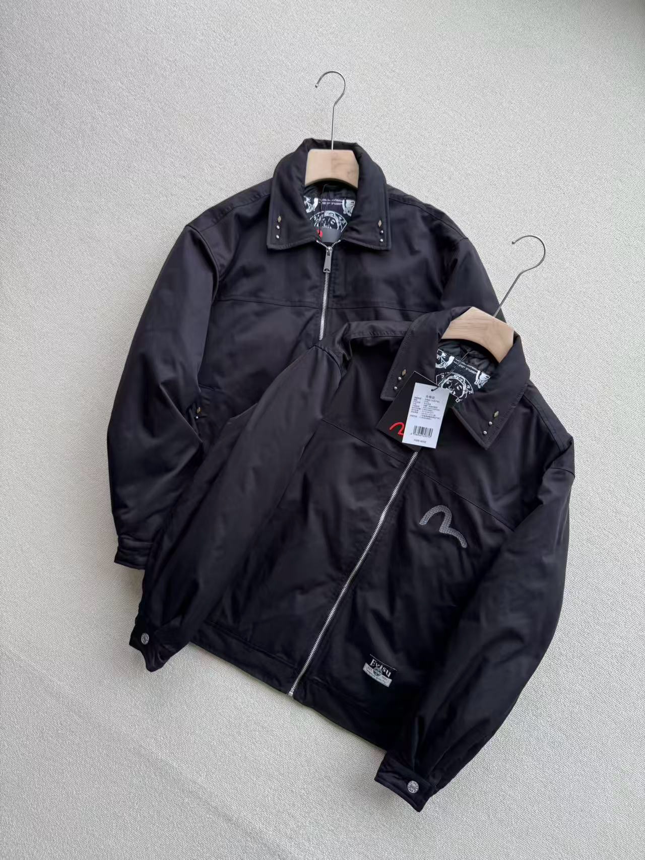 EVISU福神 2025冬季新品男士商标刺绣翻领加厚休闲通勤夹克外套