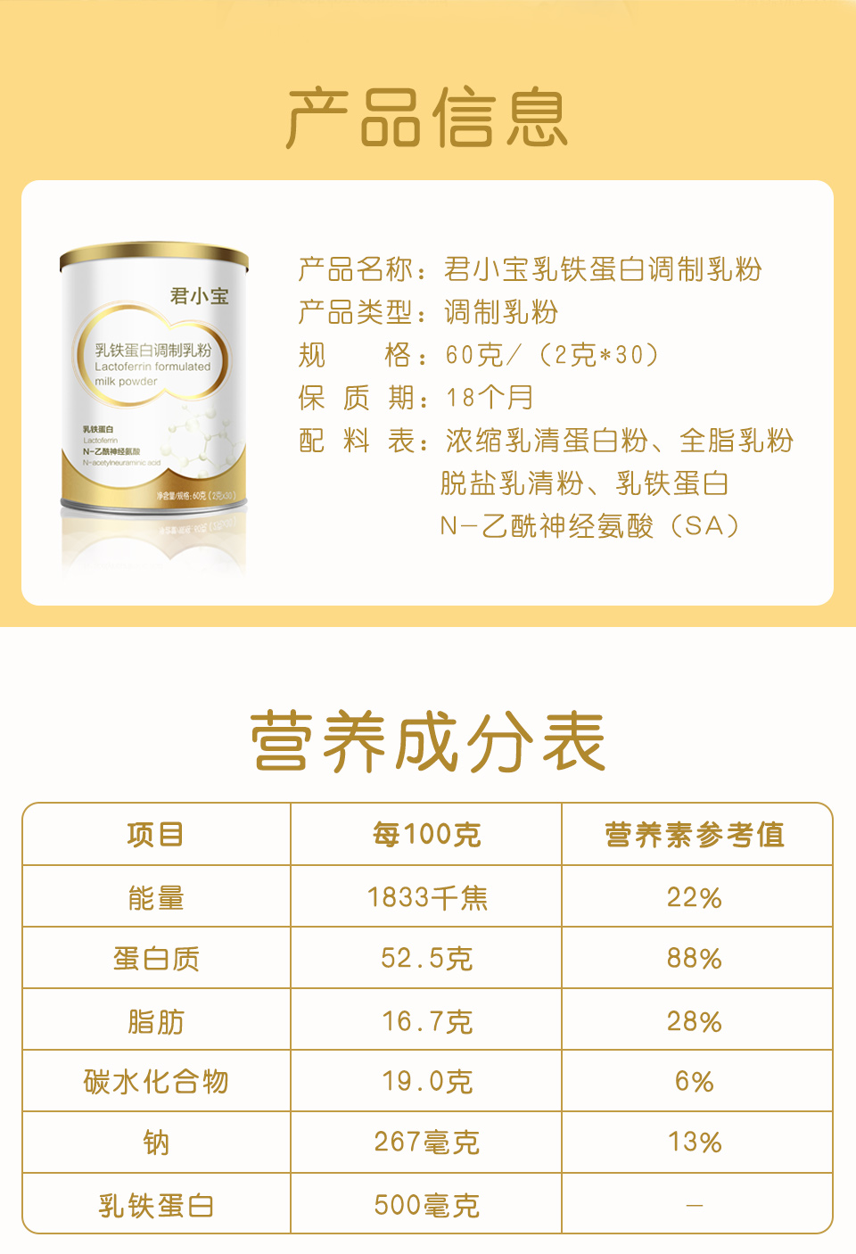 君乐宝君小宝乳铁蛋白调制乳粉儿童孕妇2g*30袋