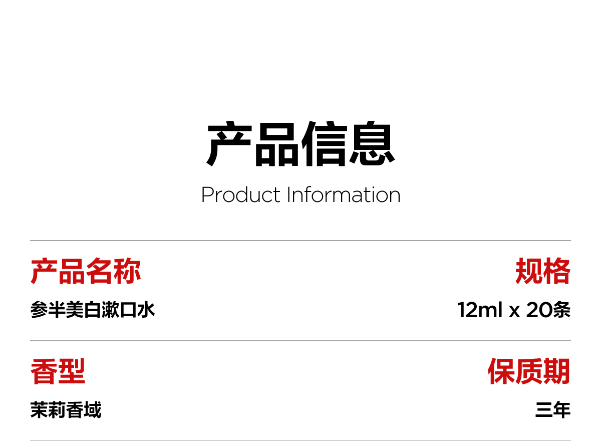 参半茉莉香域味美白漱口水20条罐装