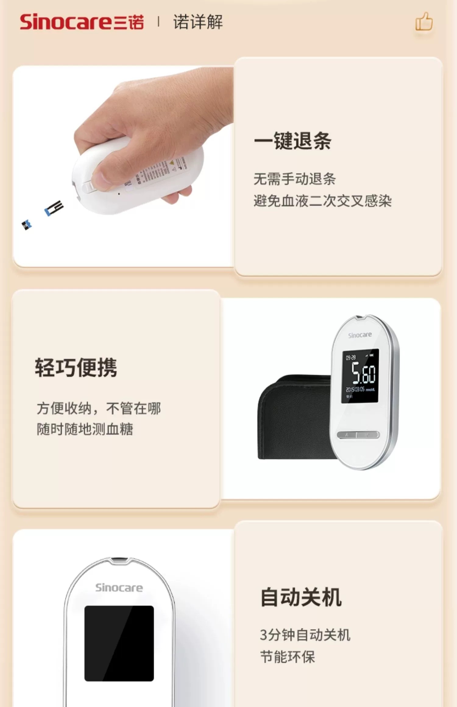 - 三诺血糖仪官方旗舰店,产品覆盖血糖、血脂、糖化血红蛋白、尿酸等多项糖尿病指标检测,中国血糖仪品牌领导者。