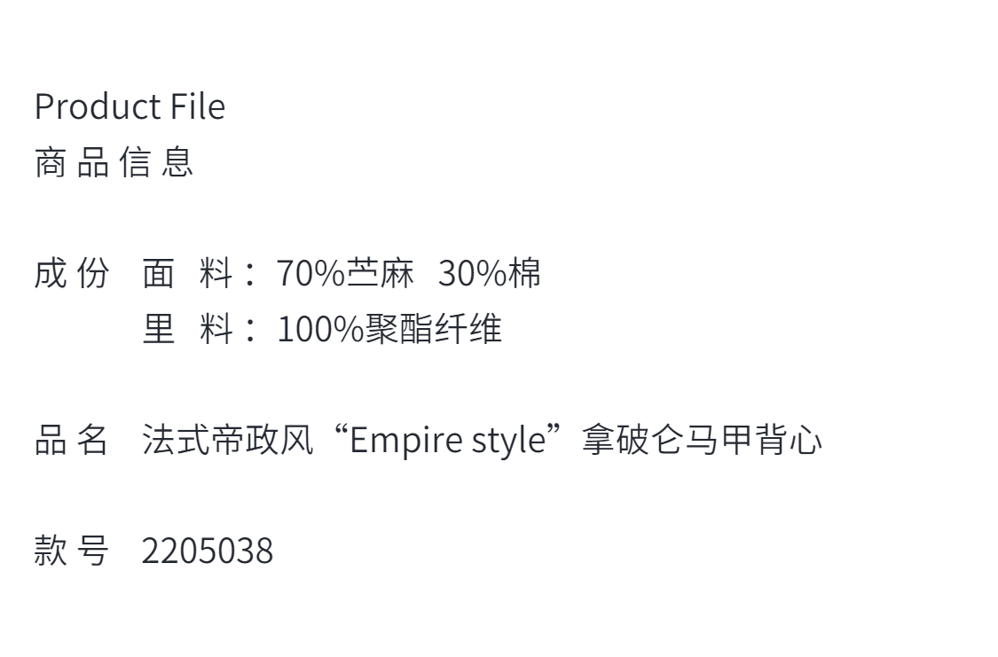 收藏级-法式帝政风“Empirestyle”无袖马甲背心显瘦小众v领2205038