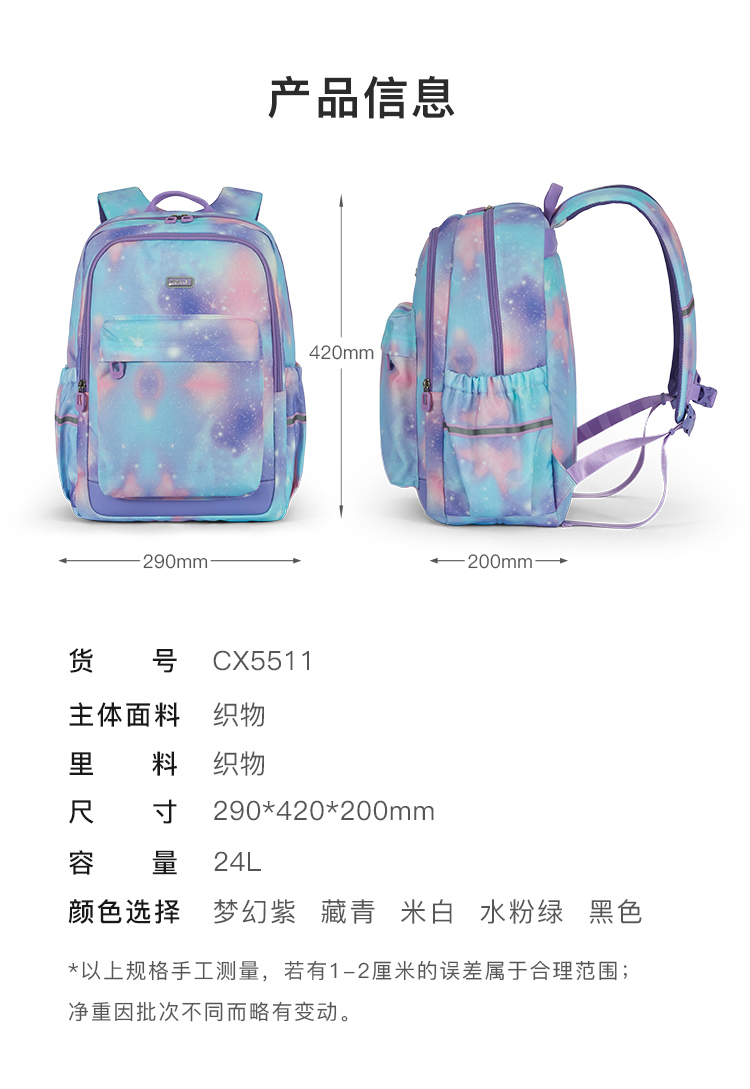 卡拉羊18L/24L轻便游学包双肩书包大容量儿童防水 追风CX2839+CX5511