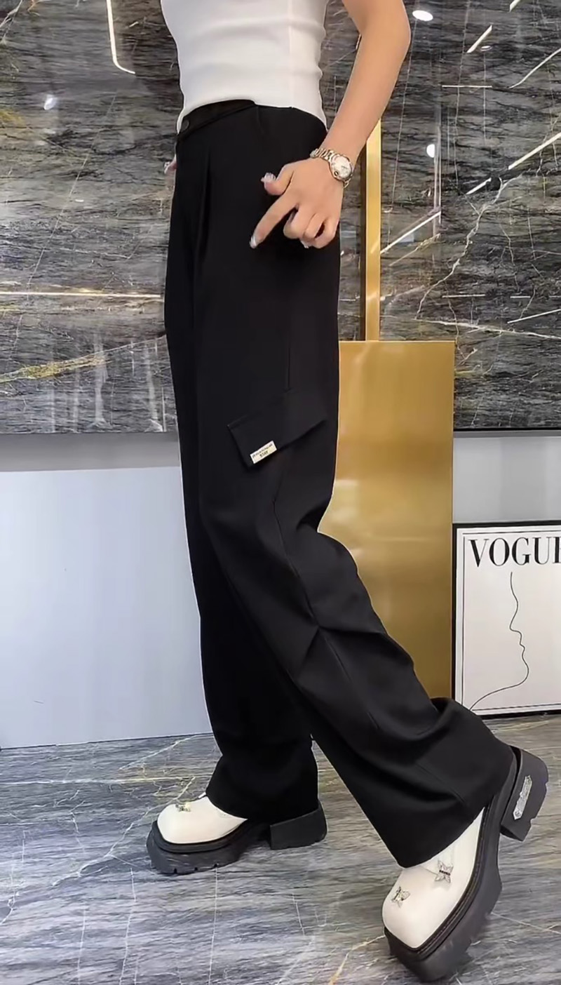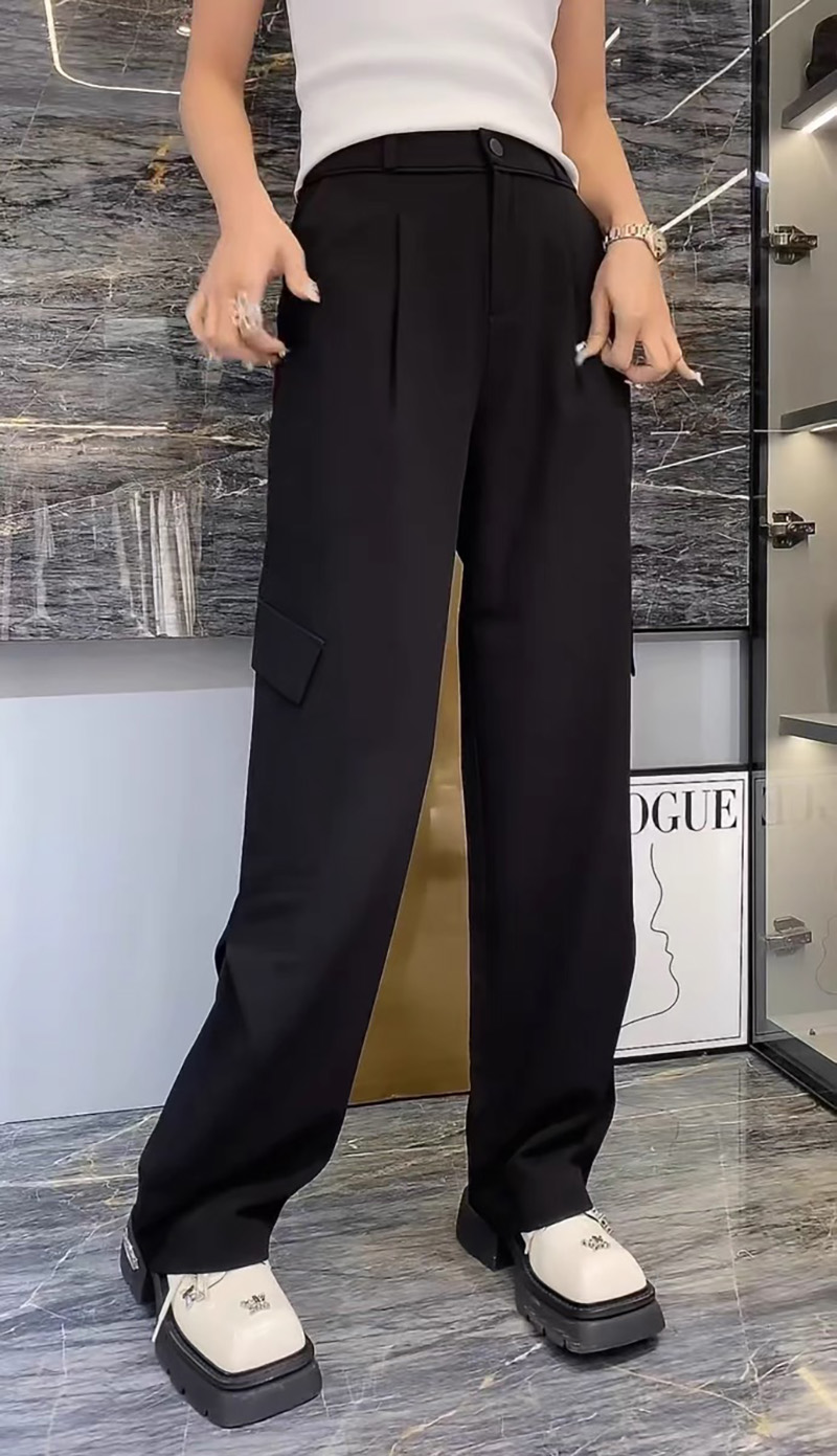 侧双褶净色工装长裤 9522100012