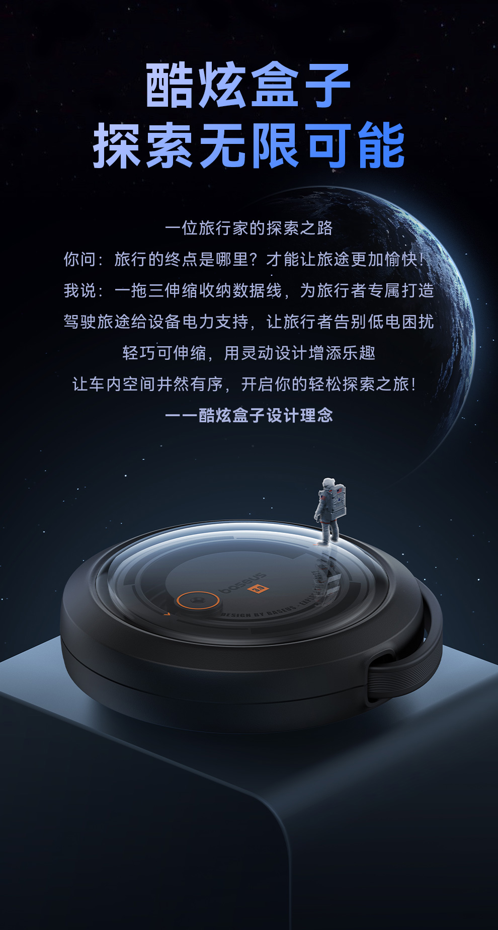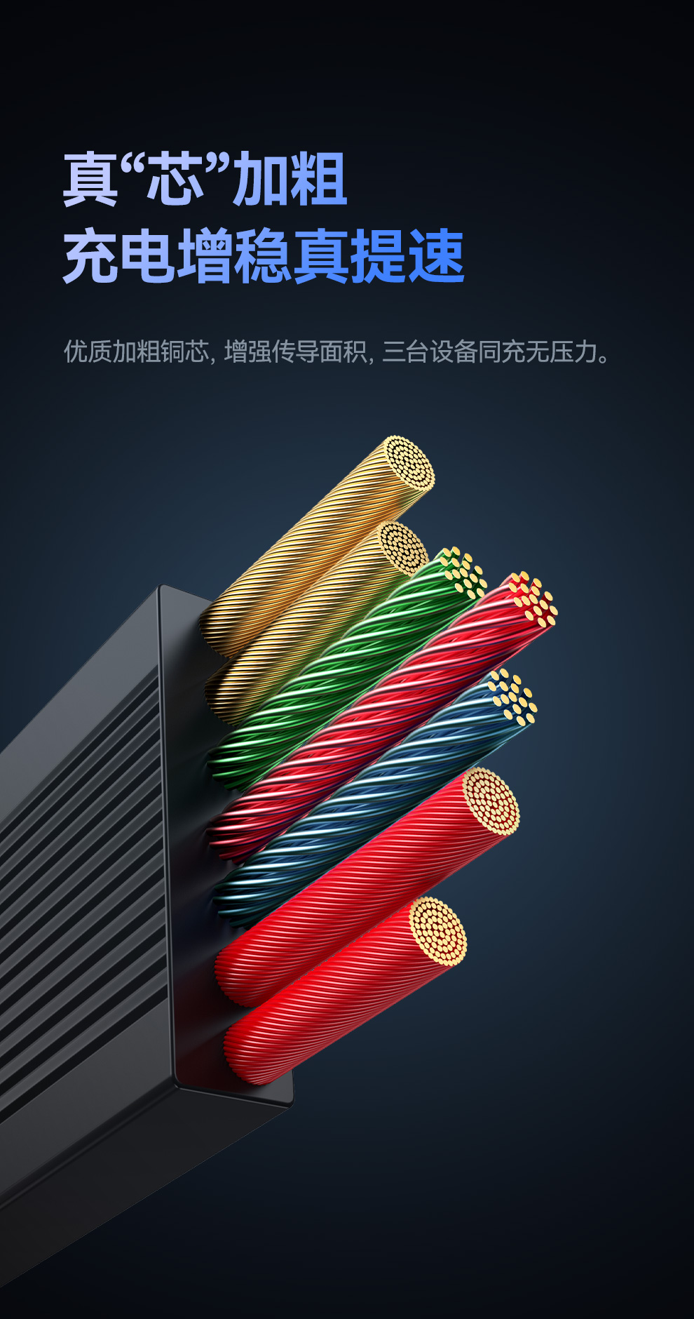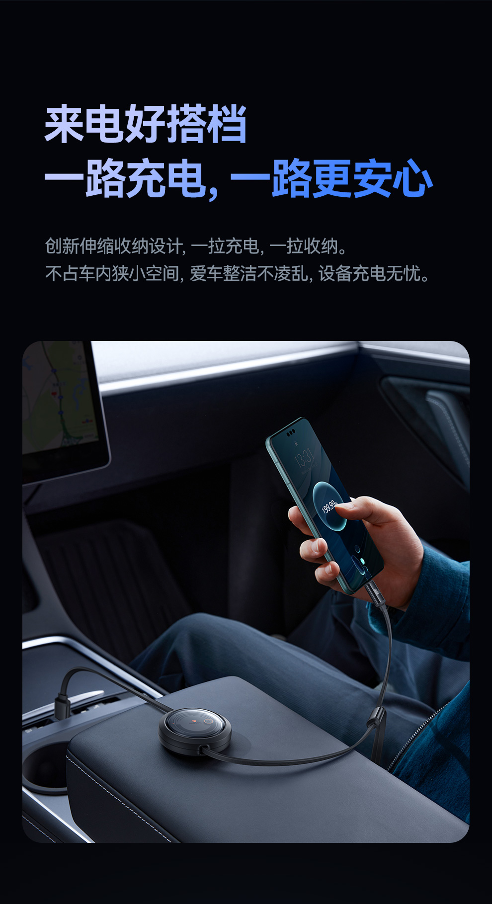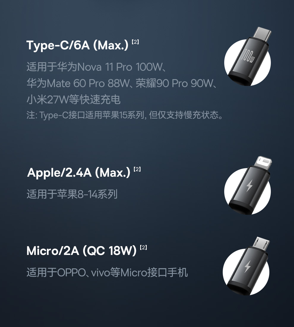 倍思 酷睿系列 随意拉伸快充数据线 USB to M+L+C 100W 1.1m