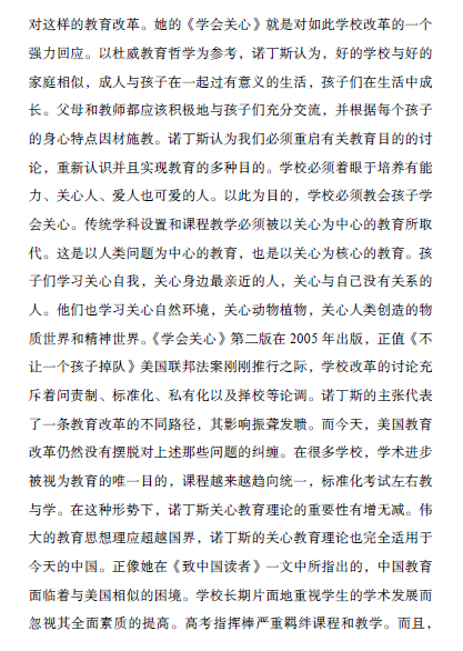 面临一个越来越非人化的教育系统,诺丁斯强调教育的人性。诺丁斯所提倡的教育改革不仅是我们亟需的,也是切实可行的。