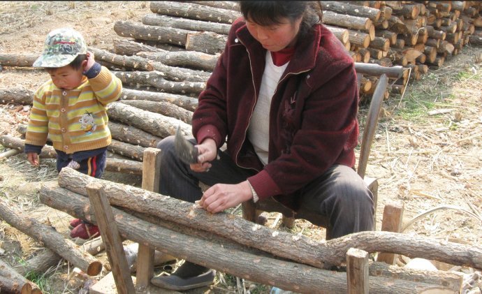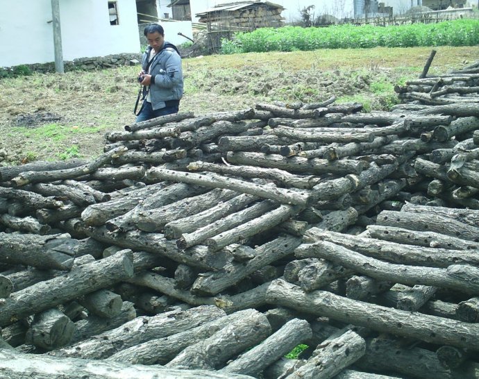 砍下树之后要把他们锯成段木,砍过的树还需要人工从山上运到山下!这个过程最辛苦的,山上的路大家都知道,很窄的,要人力用肩膀从山上往下背。没有亲眼看到,就光听向叔说都能感到他们的艰难!
