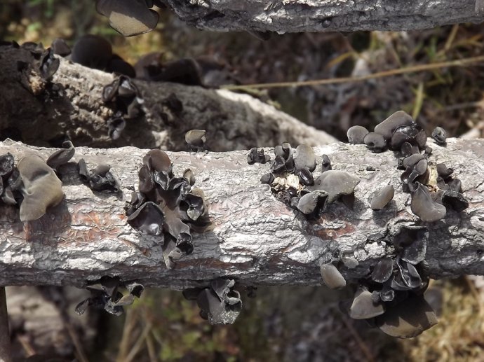 发酵后的段木,如果是木耳需要把接种后的段木整整齐齐的排在地上,放在潮湿的地方,让它们充分吸收湿气,并且要隔2个月翻棒一次,上面翻下面,翻棒目的是为了调剂菌丝的温湿度,使它们生长的更均匀些。