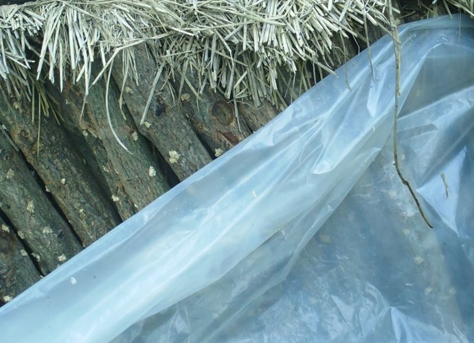 发酵中的段木不能被雨淋到,所以得用塑料布蒙起!