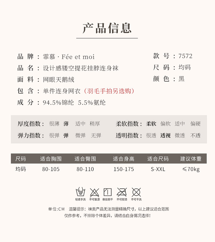 热销内衣 设计感镂空提花挂脖连身袜 号7572