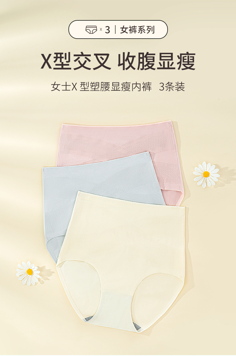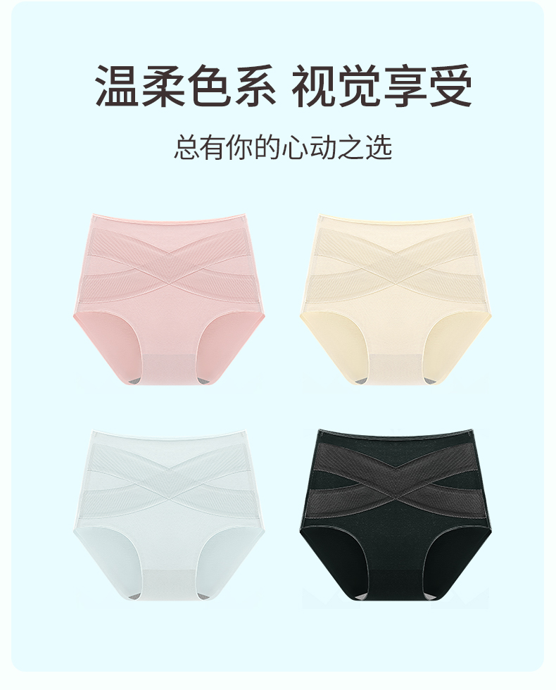 雅黛丽女士内裤高腰收腹显瘦短裤纯棉柔软亲肤高弹透气三角裤