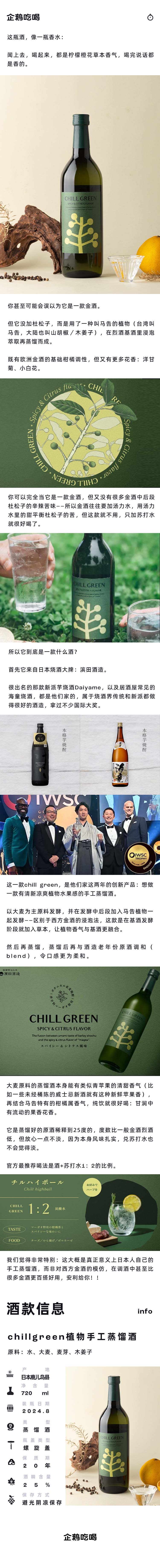 企鹅市集|鹿儿岛滨田酒造 chill green植物手工蒸馏酒 山胡椒木姜子 柠檬橙花草本香