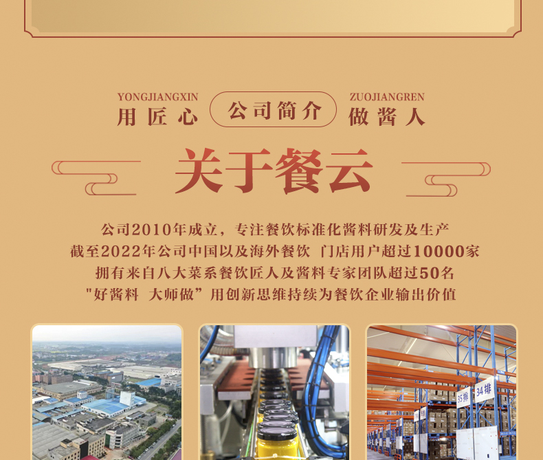 餐云标准化酱料为餐饮节约厨房人工成本30%,无厨师经验从业者通过标准化流程亦可操作,30名国内中餐大厨专家365天持续研发创新!