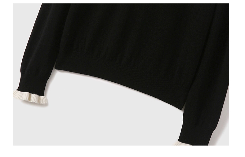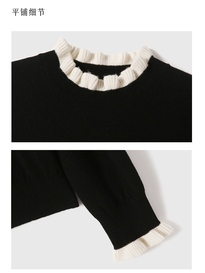 所以我在领口和袖口,做了一圈白色木耳边撞色拼接。不是那种夸张的花边,就是细细的、柔柔的褶皱,像蛋糕裙的裙边,又像咖啡上的拉花。
