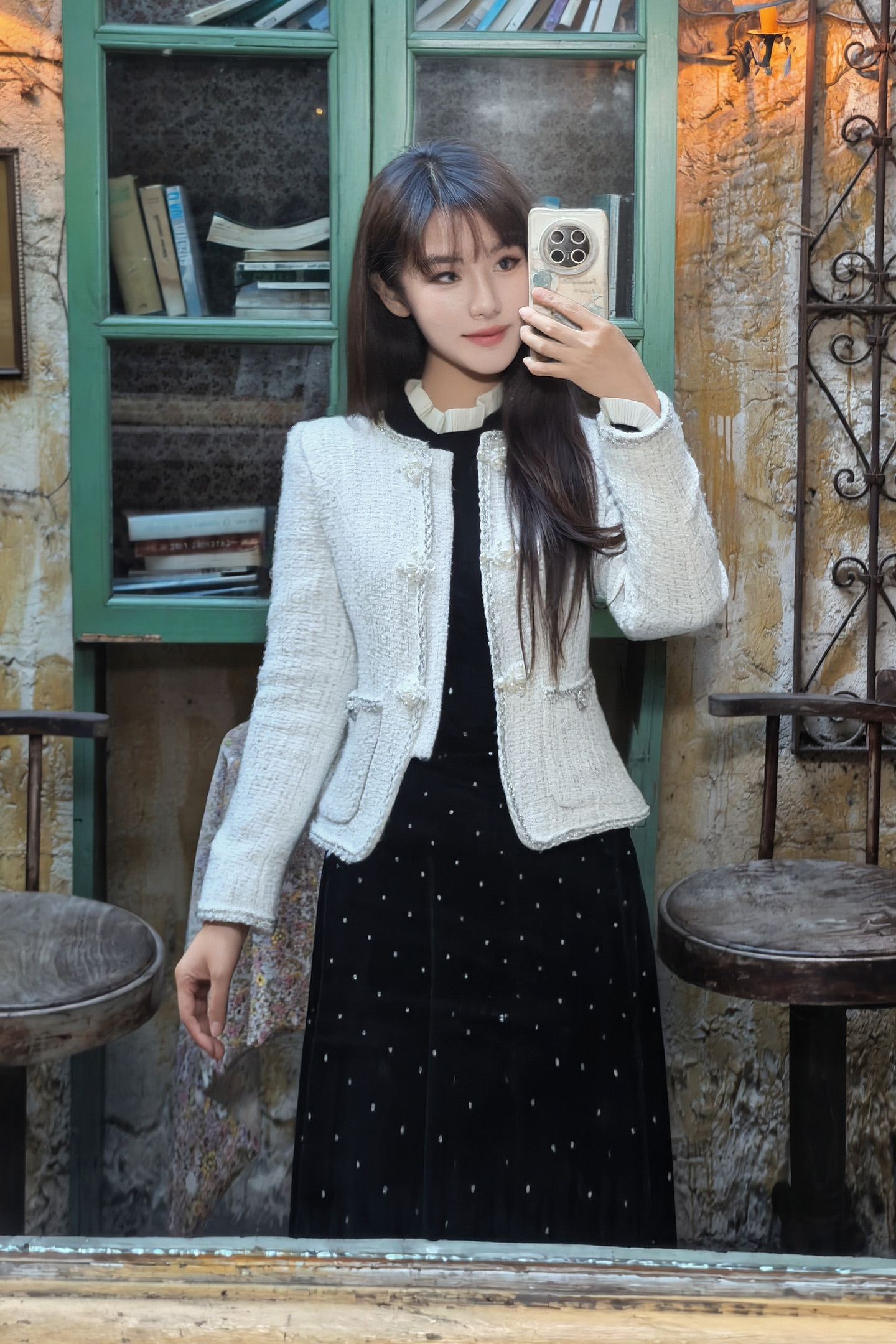 🌟外面搭件我们的小香风外套【茉光】,把木耳领子翻出来,法式与东方韵味双双结合;