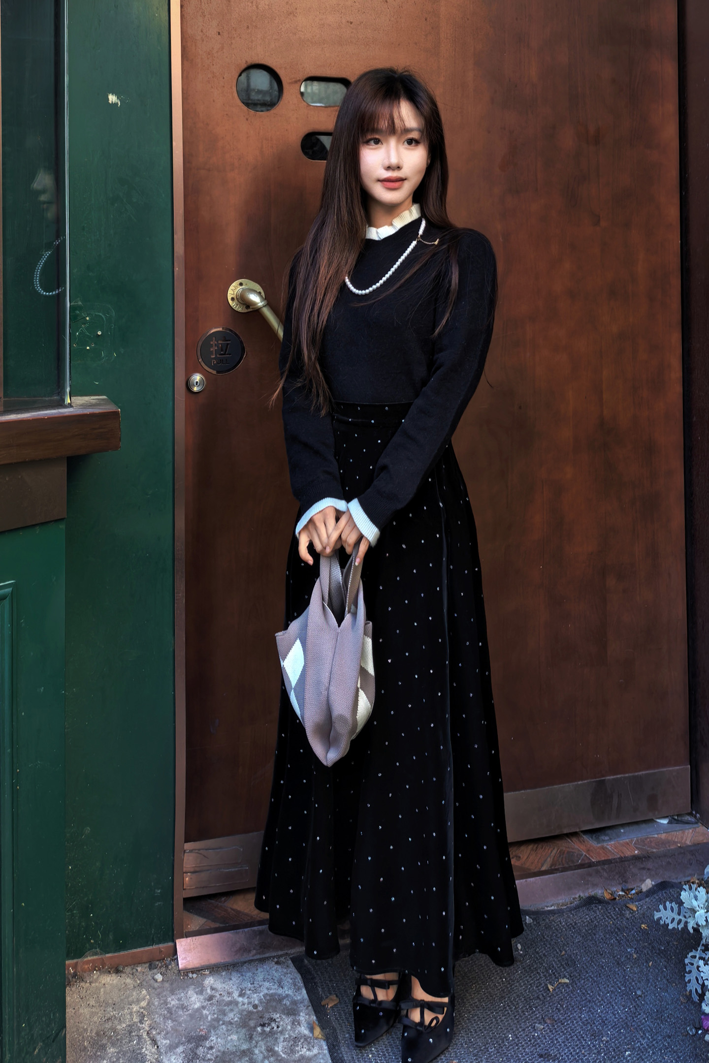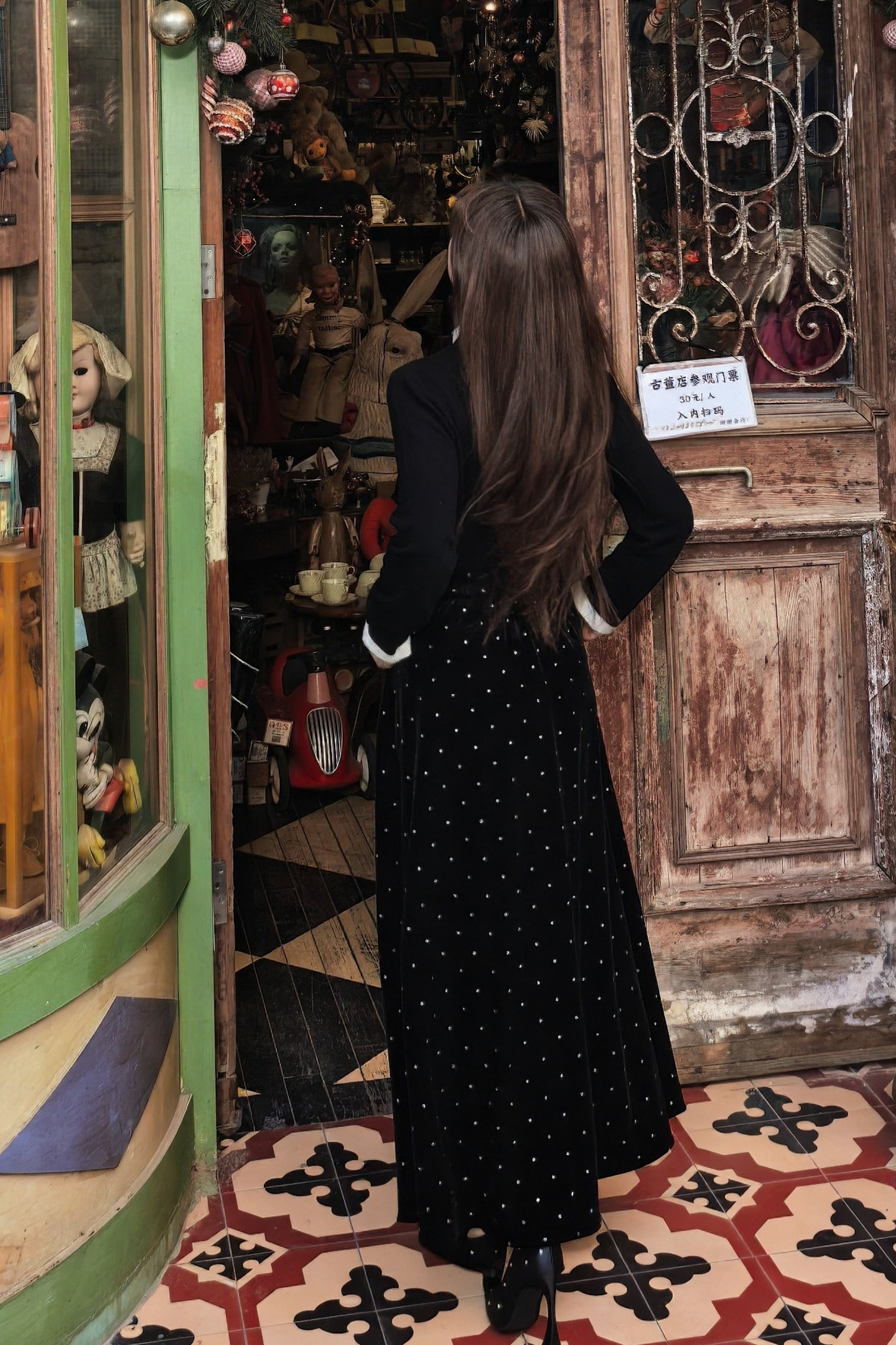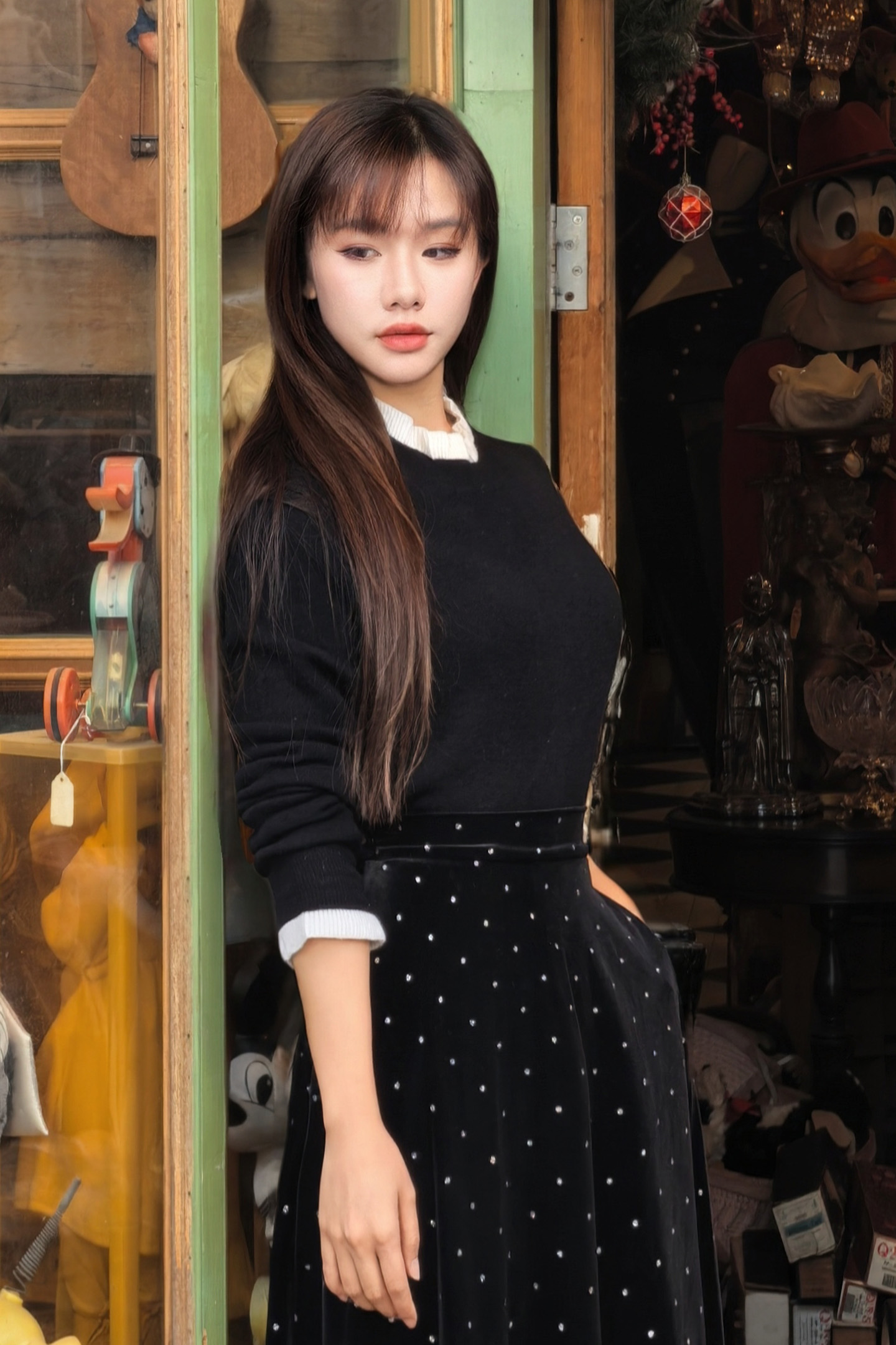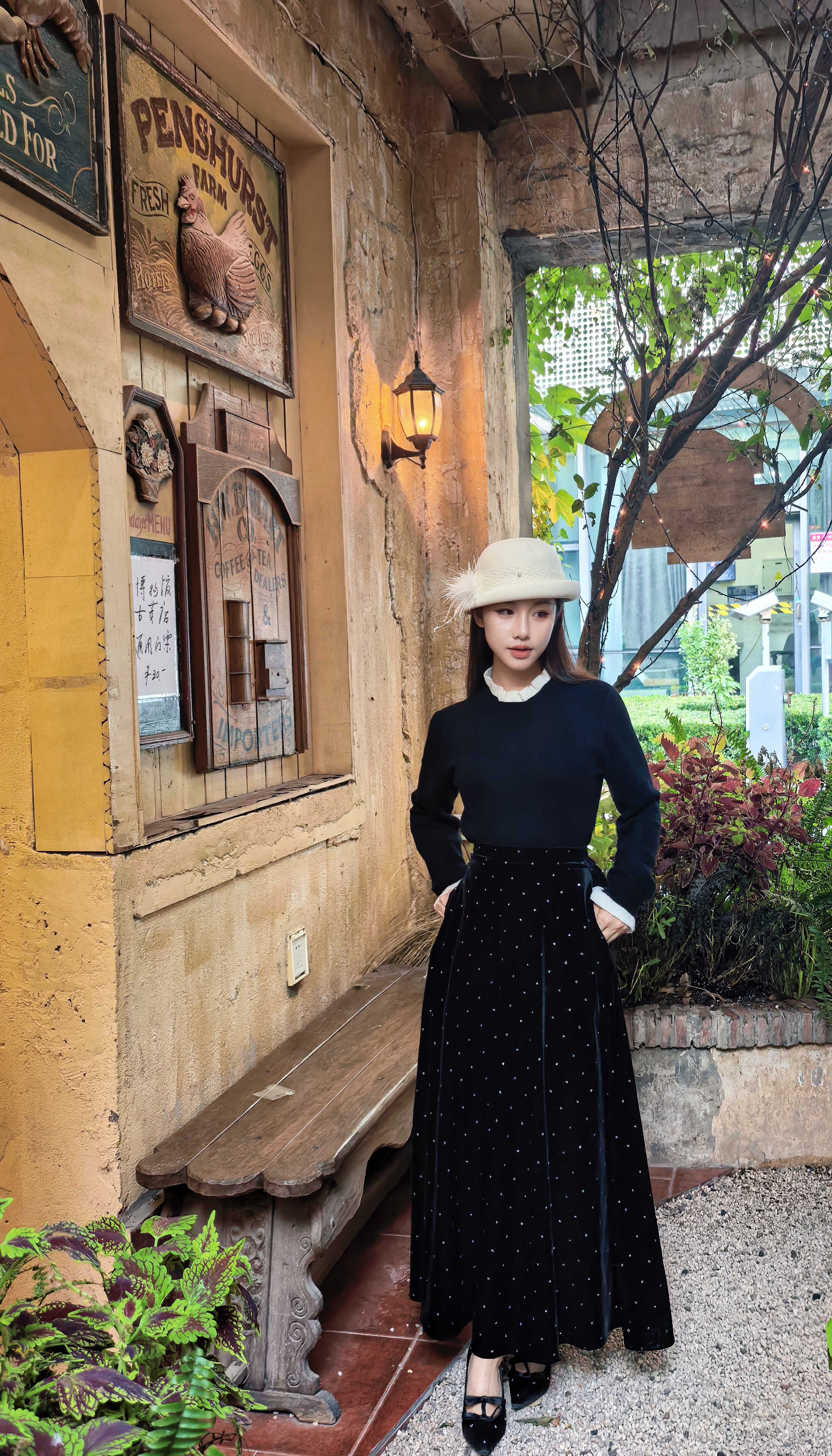🎄沉稳的黑白配色,巧妙平衡圣诞节那种"红绿金"的喧闹,静坐于铃铛木马与圣诞树之间,搭配一条丝绒半裙,复古氛围拉满~~