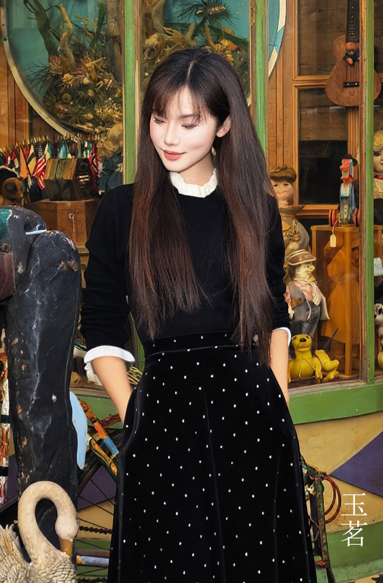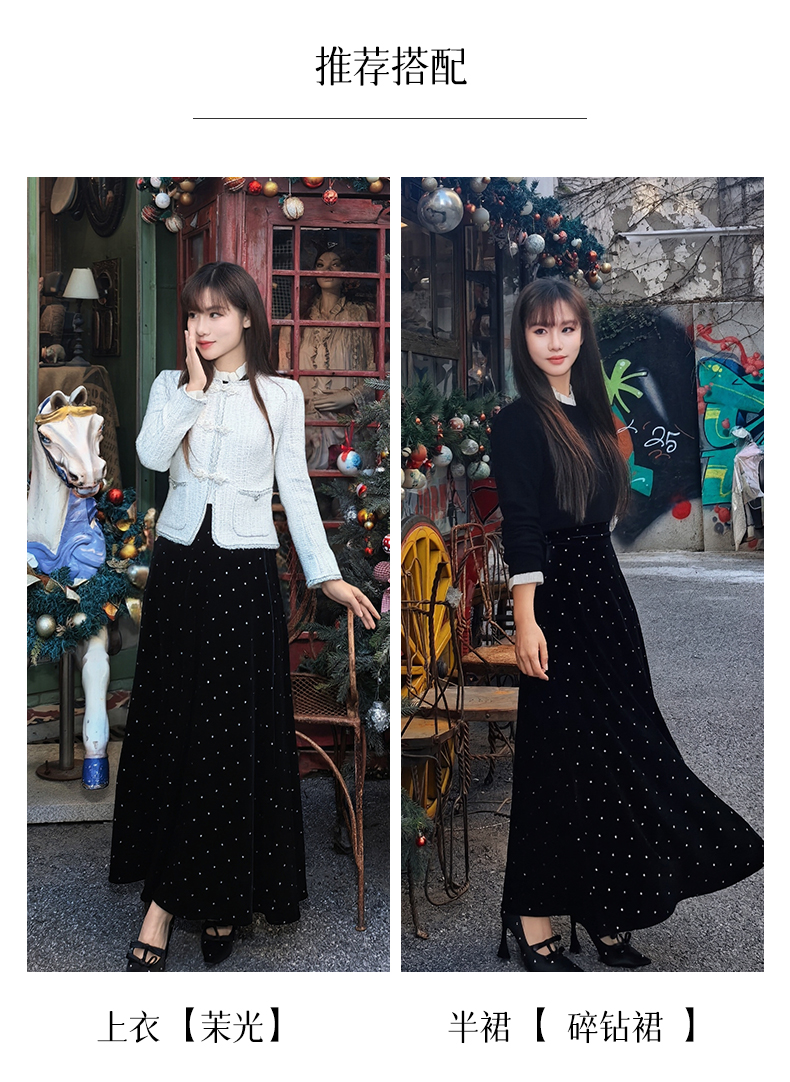 🌟半裙搭配的是【碎钻裙】,低调又闪耀,法式中国风的韵味简直拉满了~。