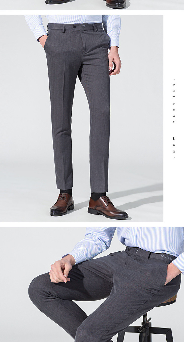 罗蒙秋冬款休闲裤男士纯色百搭商务通勤抗皱免烫男长裤