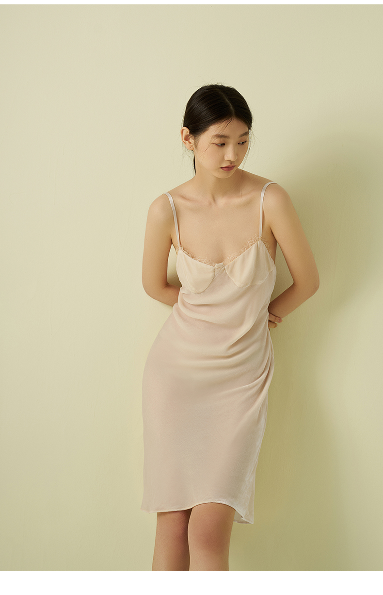 绒光蕾丝』桑罗桑蚕丝绒吊带裙纯色性感修身睡裙女家居服可外穿