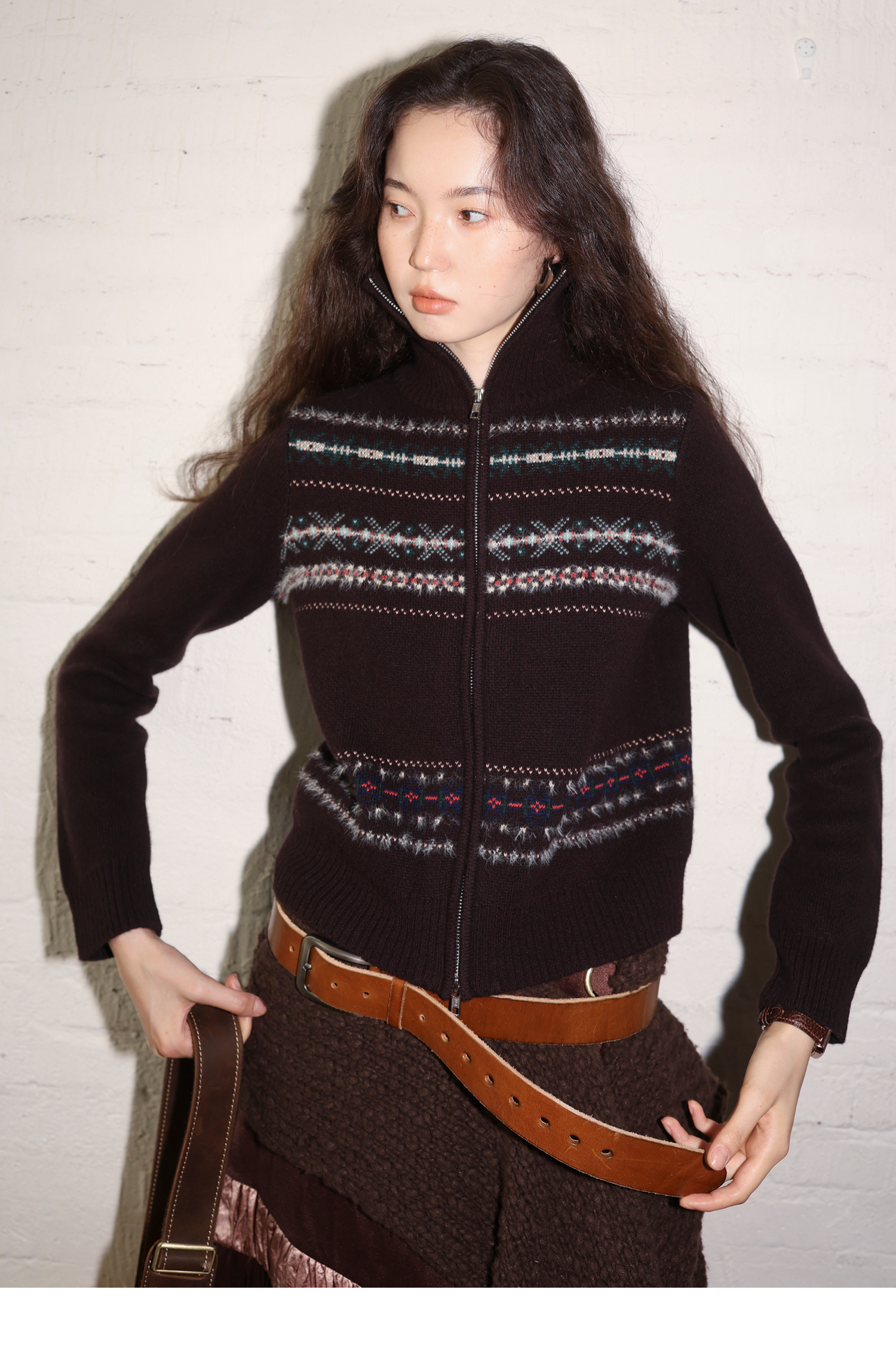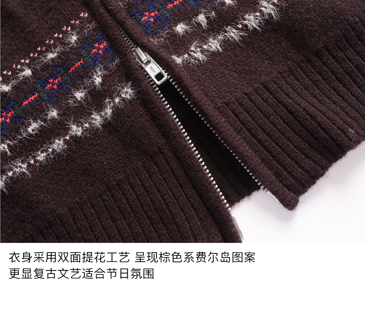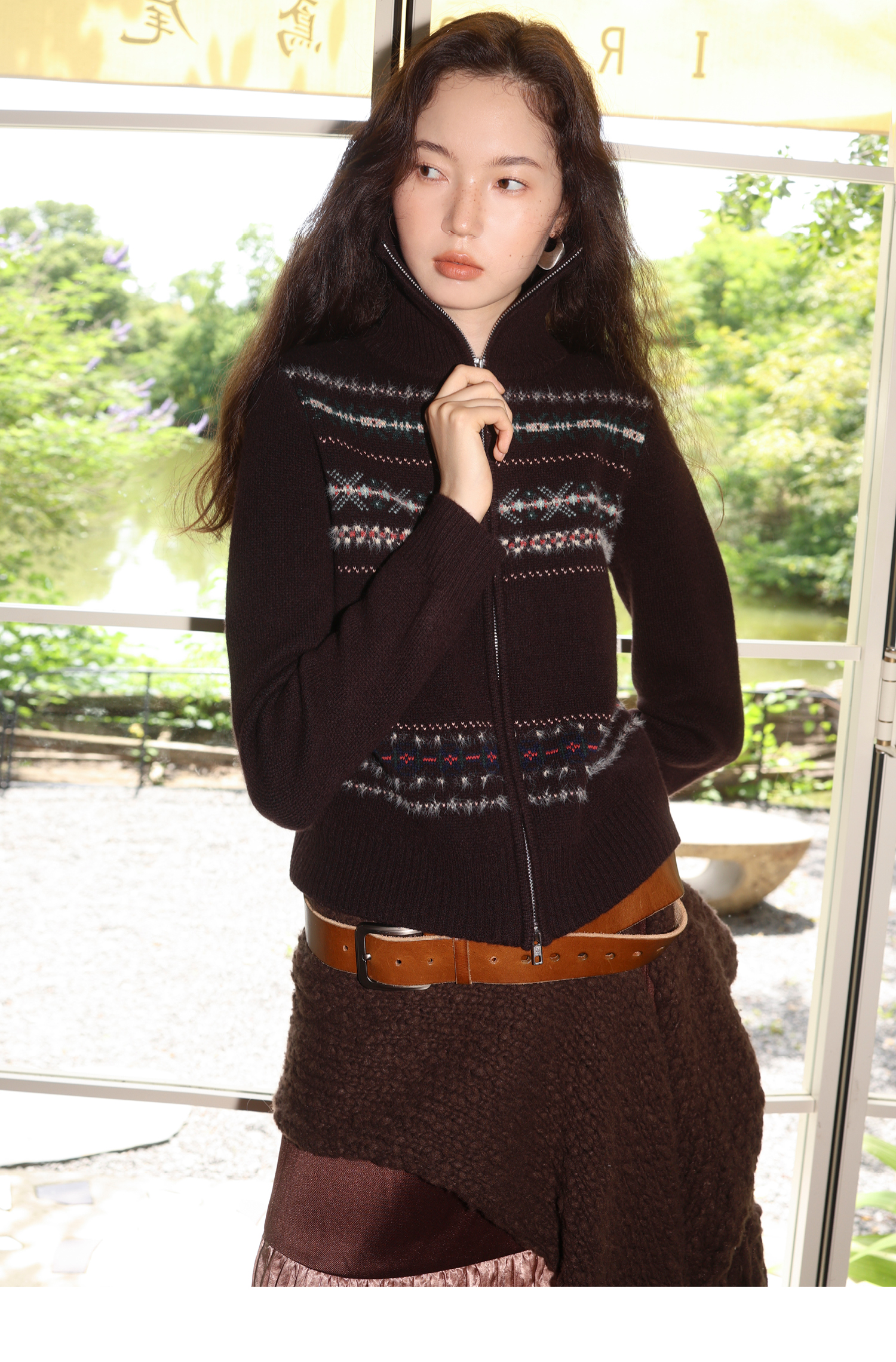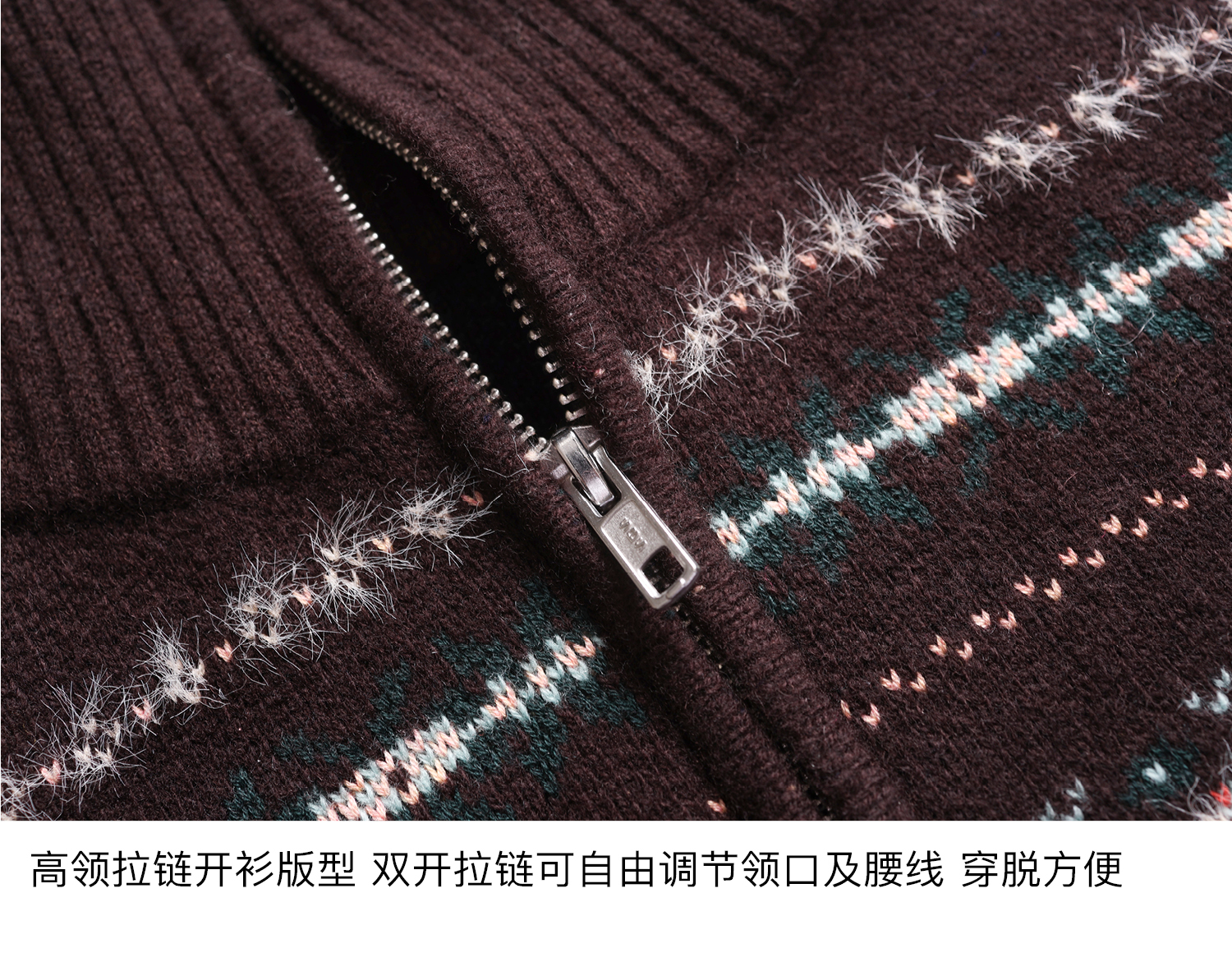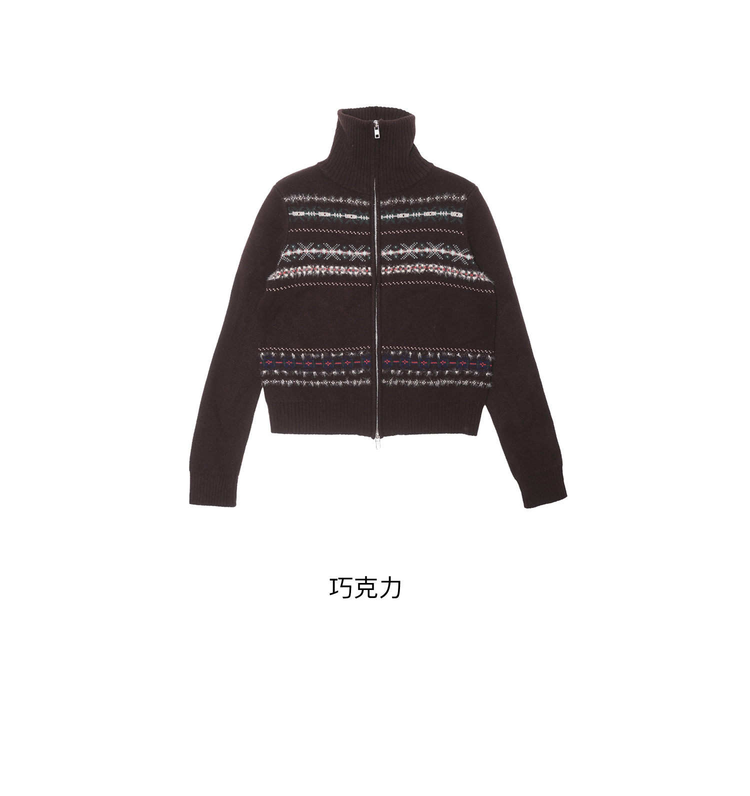 素舶 澳洲美利奴羊毛光泽细腻雪花费尔岛高领拉链短款针织开衫