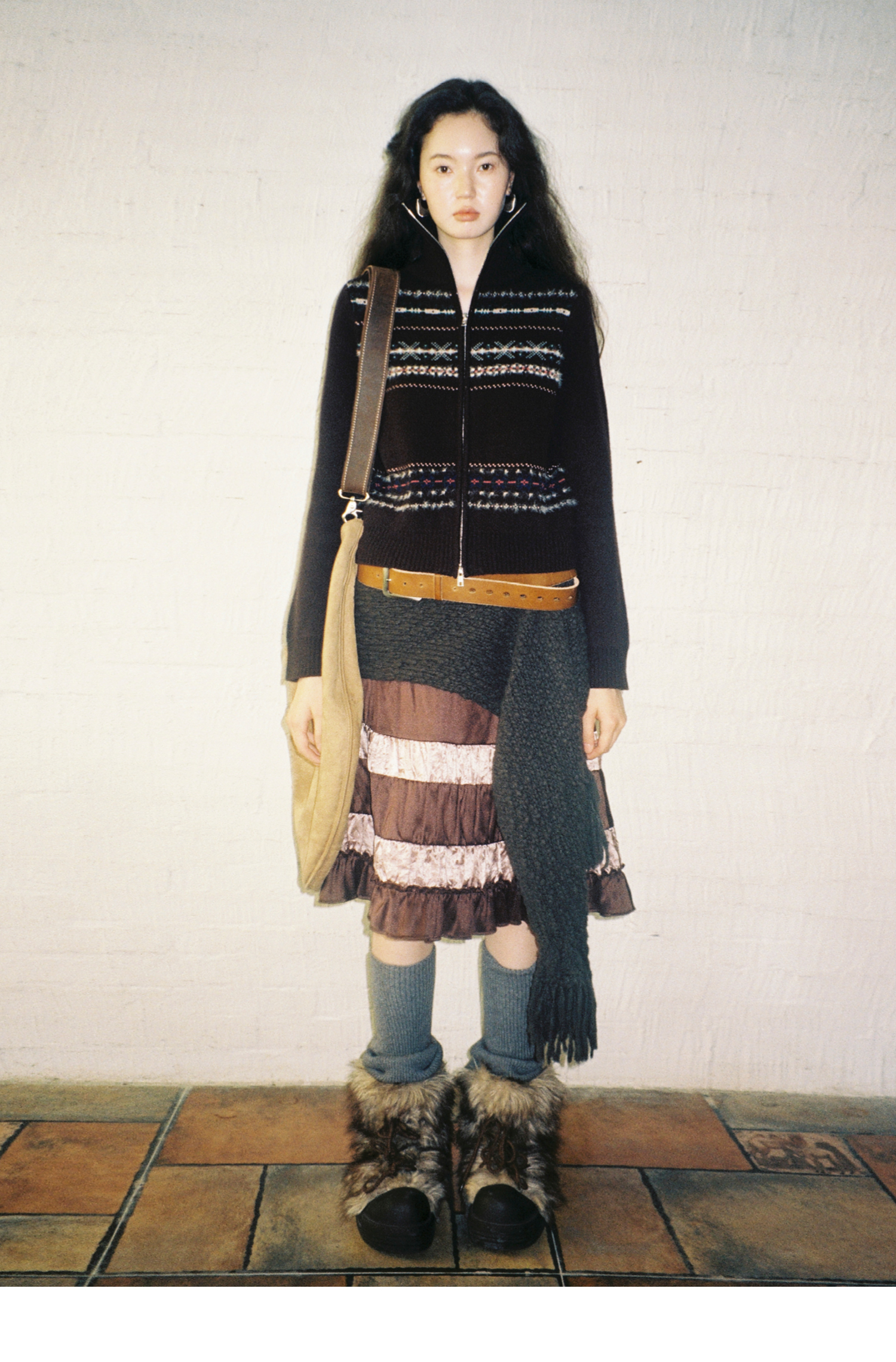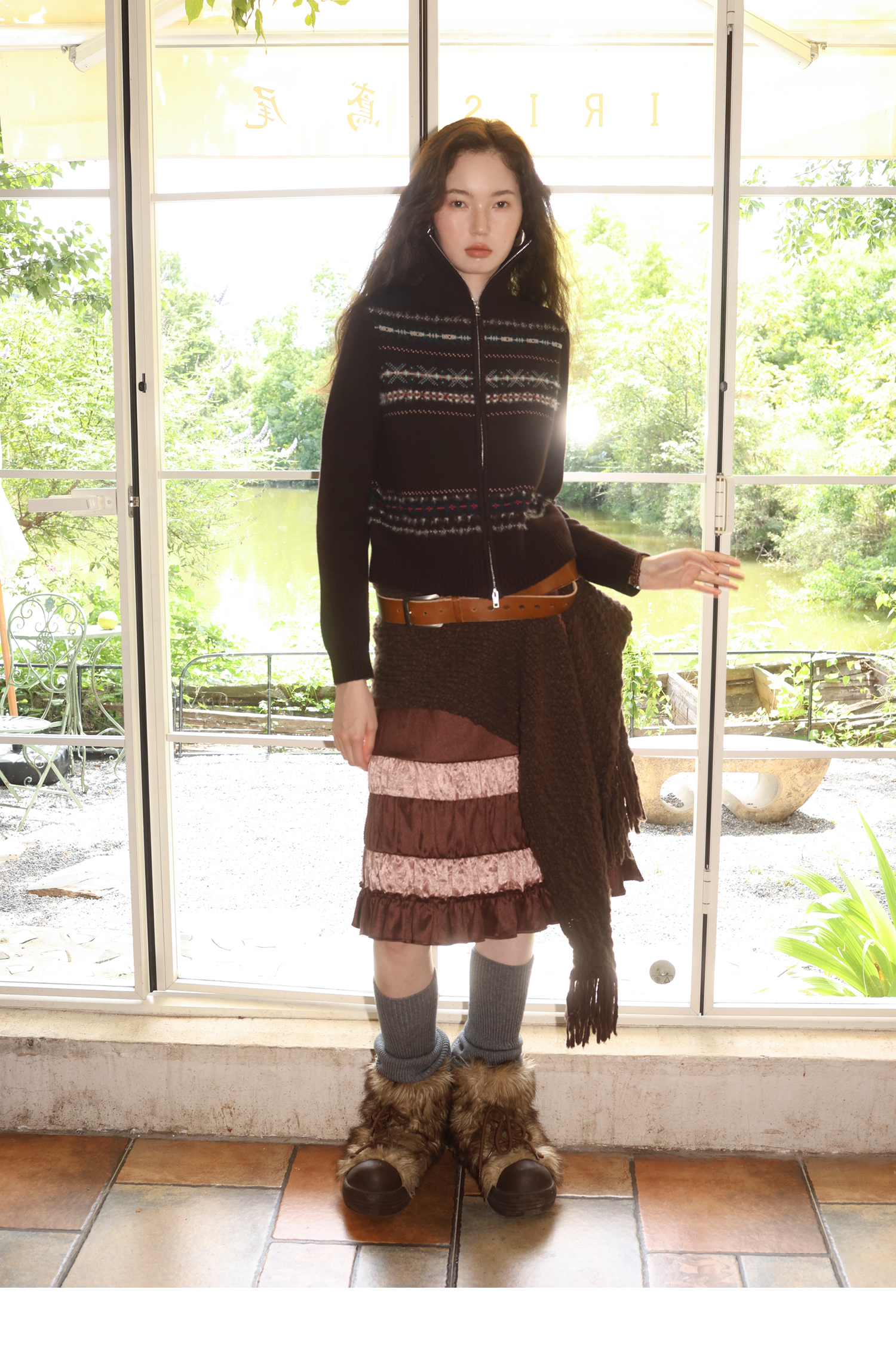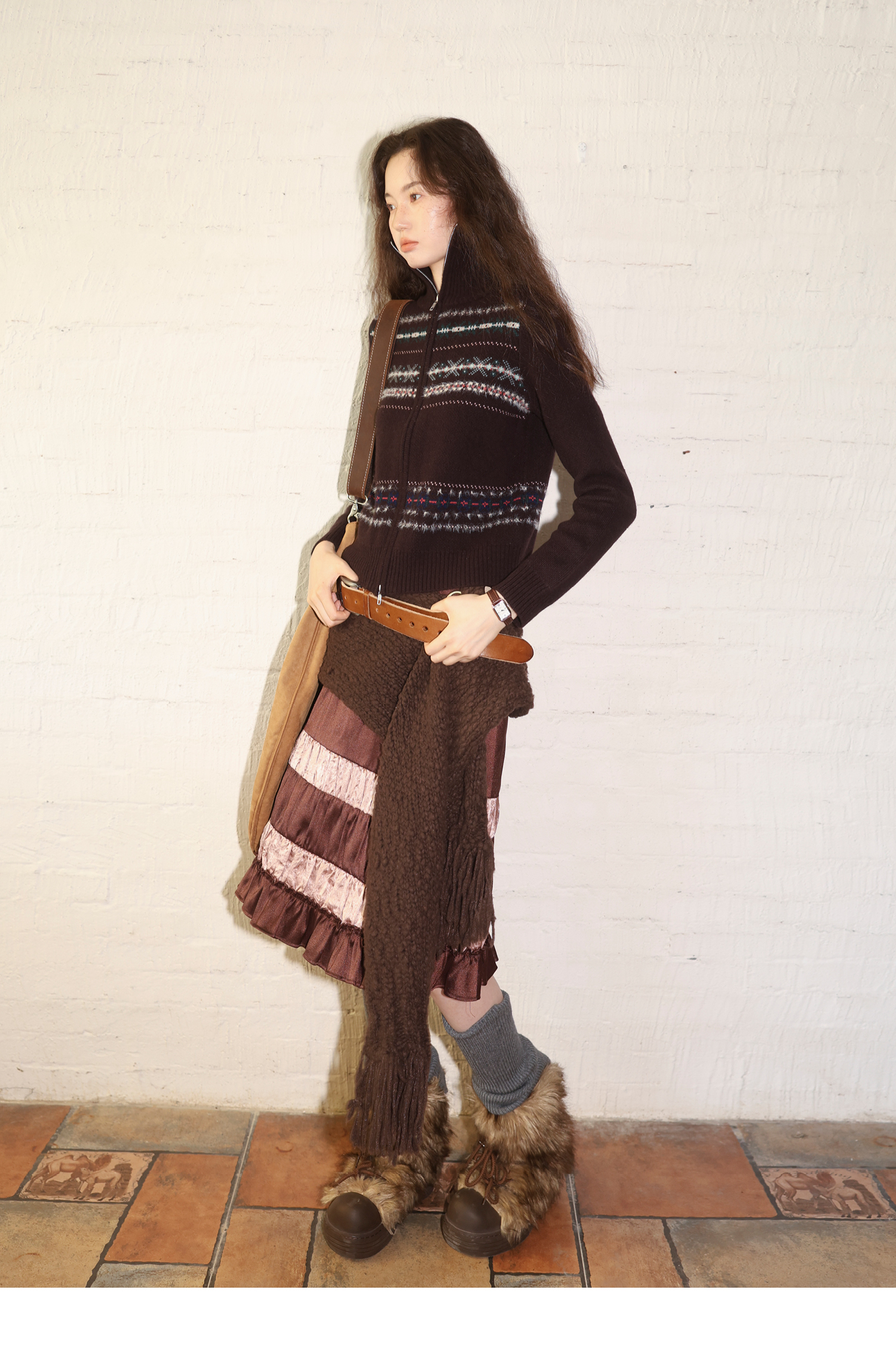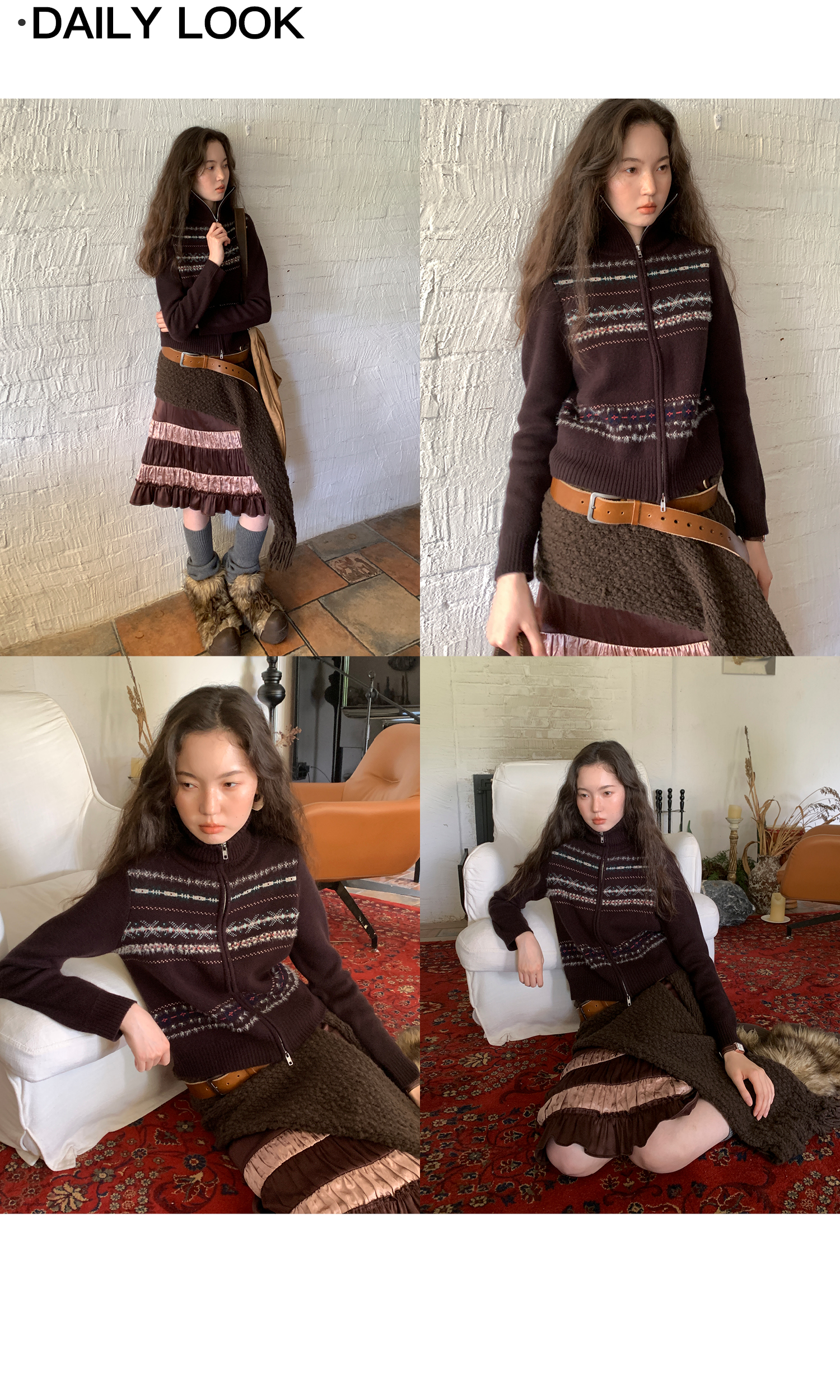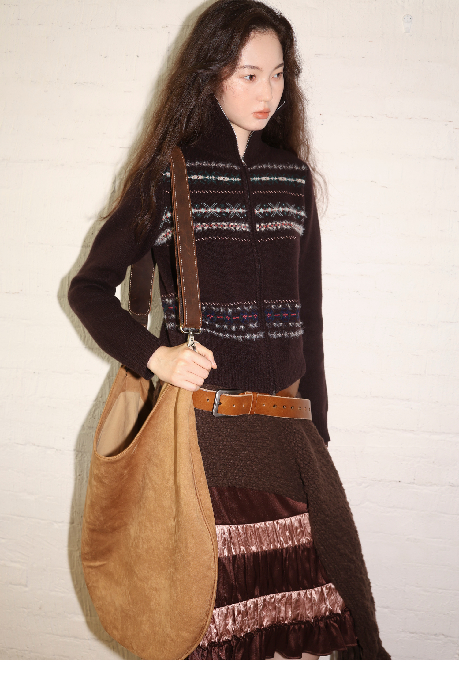 素舶 澳洲美利奴羊毛光泽细腻雪花费尔岛高领拉链短款针织开衫