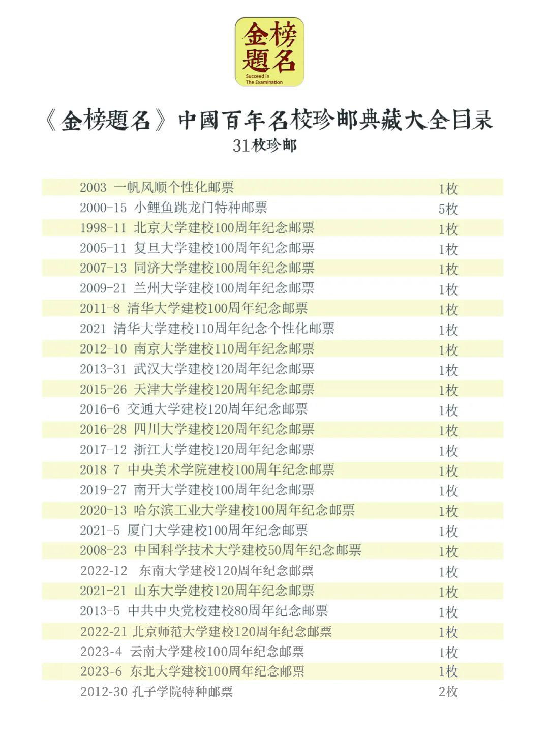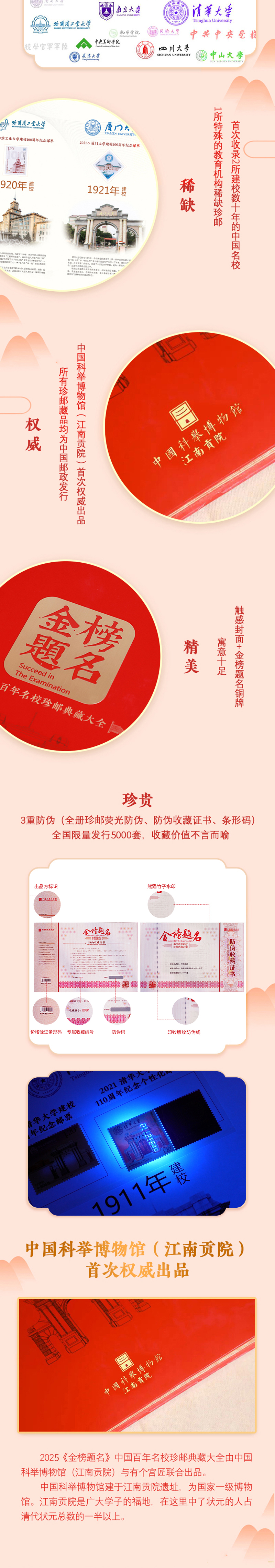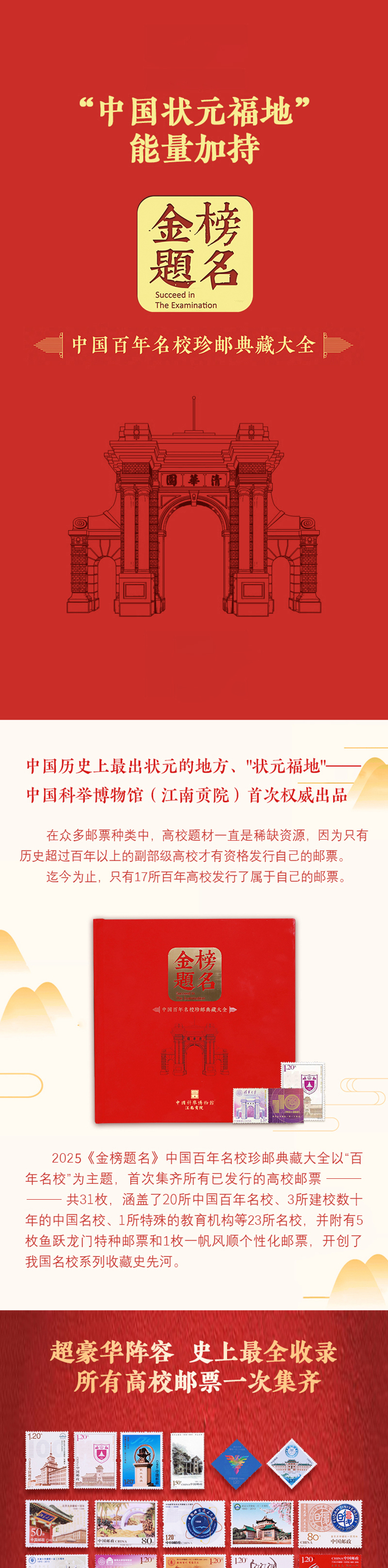 (现货发售)2025《金榜题名》中国百年名校珍邮典藏大全 23所名校31枚珍邮 中国邮政发行