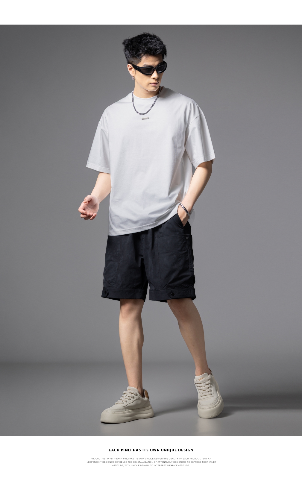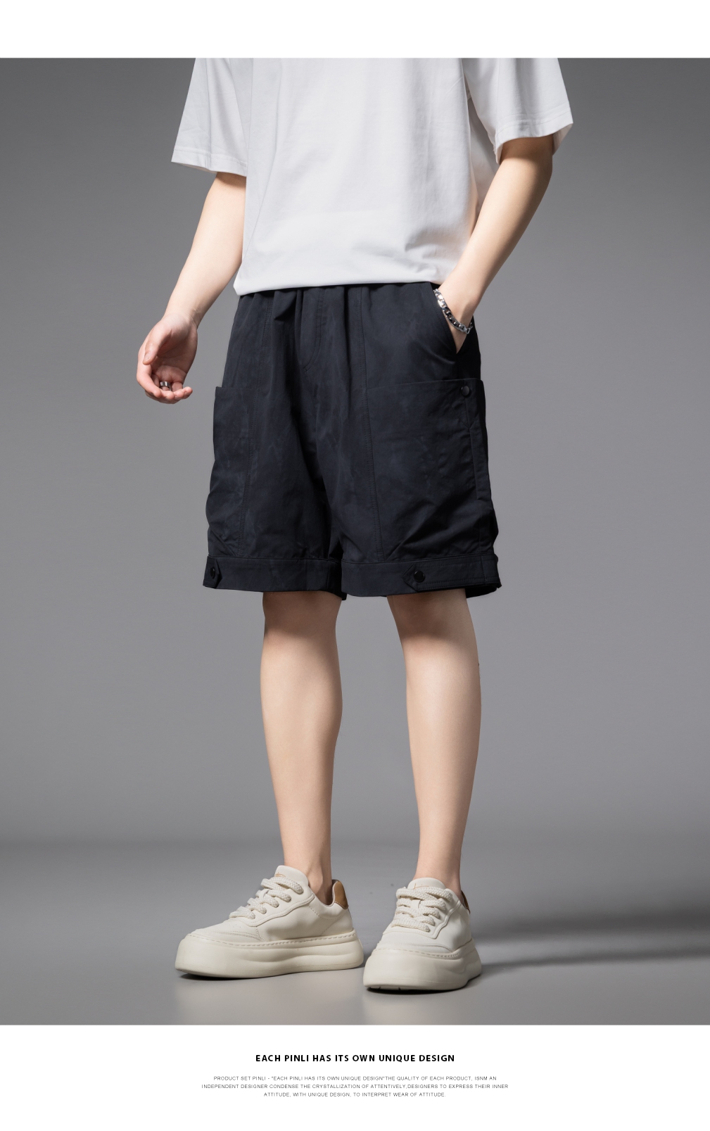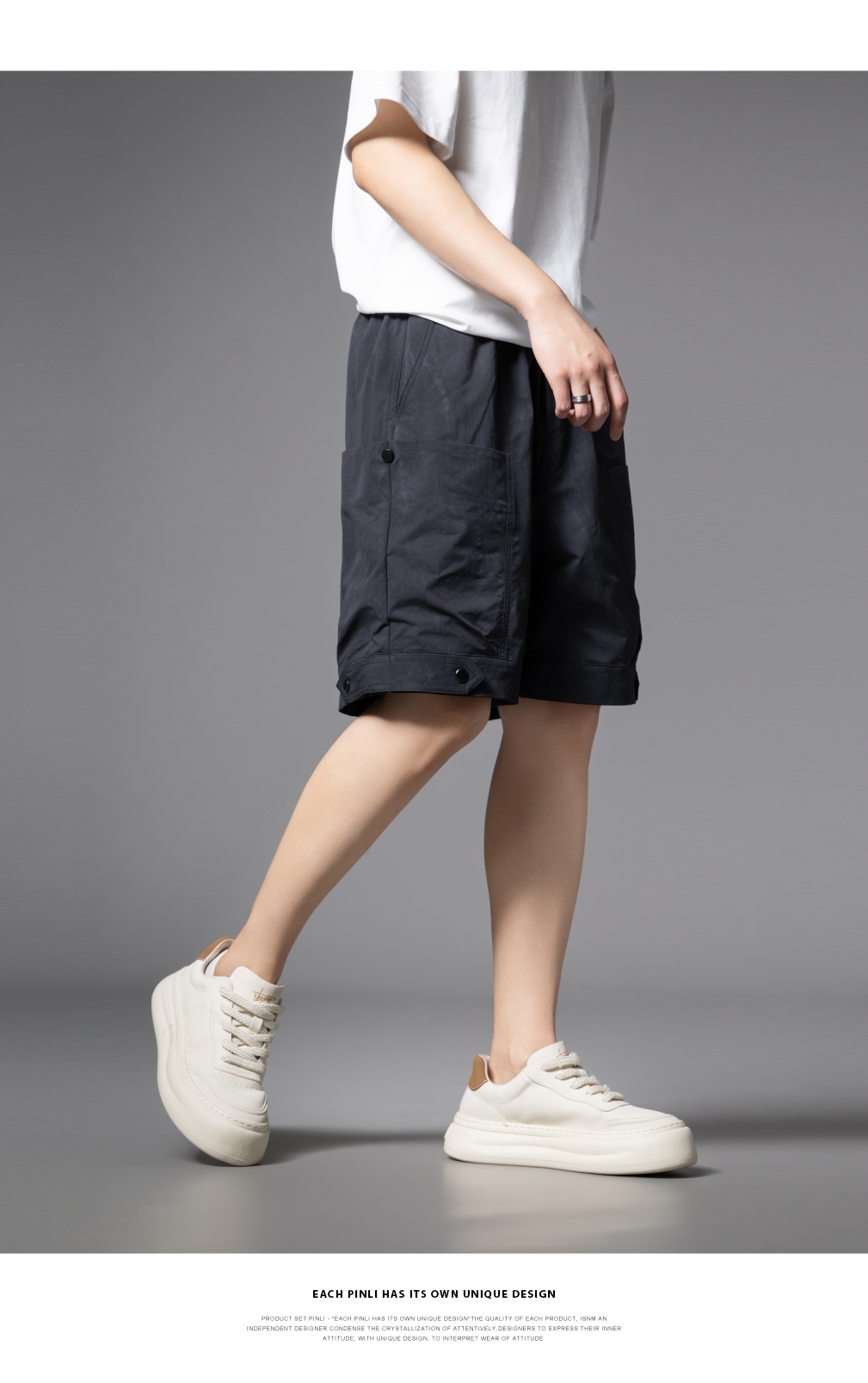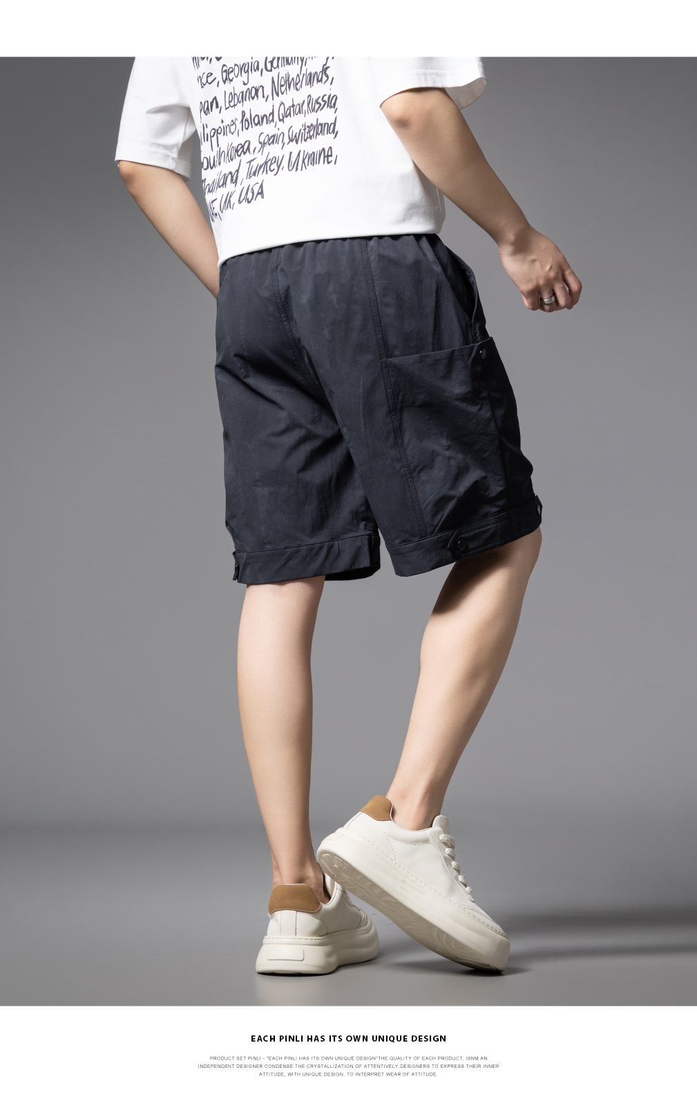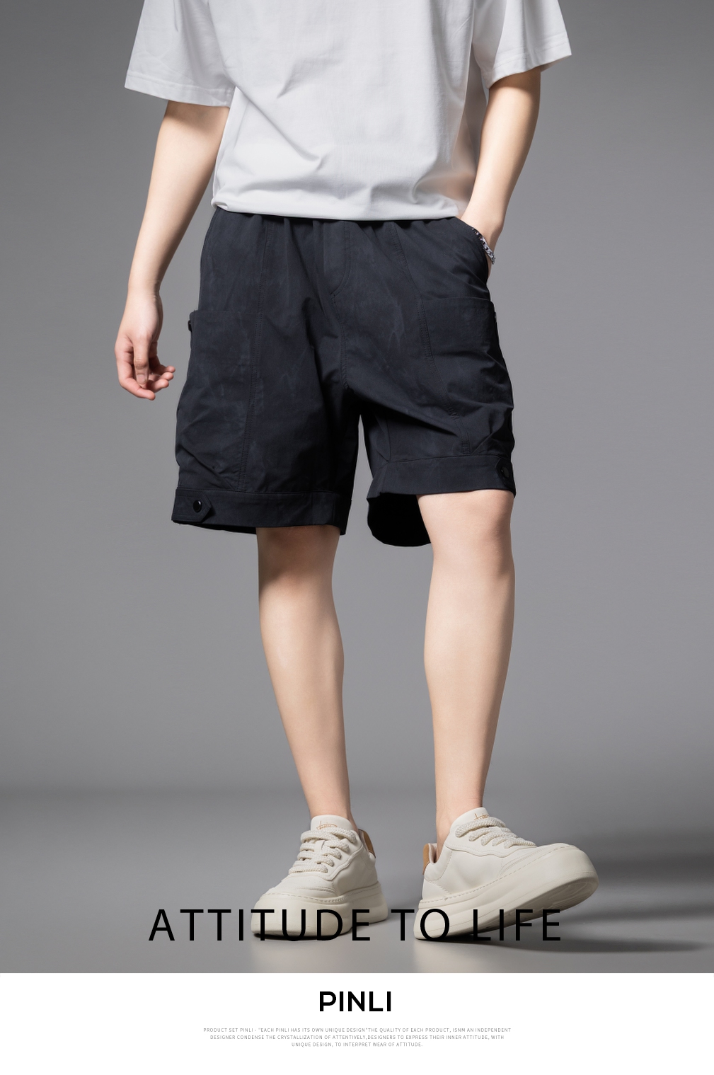 PINLI品立2025夏季新款潮牌运动休闲短裤男士宽松机能百搭五分裤GD252117397