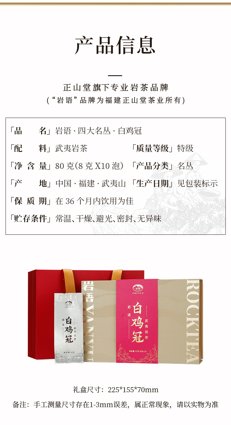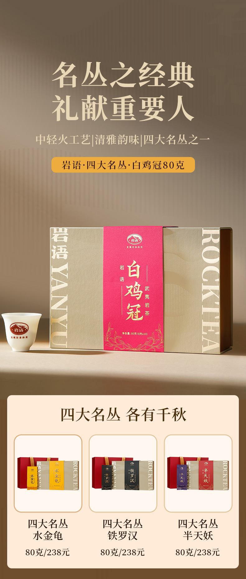 岩语 白鸡冠礼盒装 武夷岩茶正宗四大名丛武特级乌龙茶送礼长辈80g