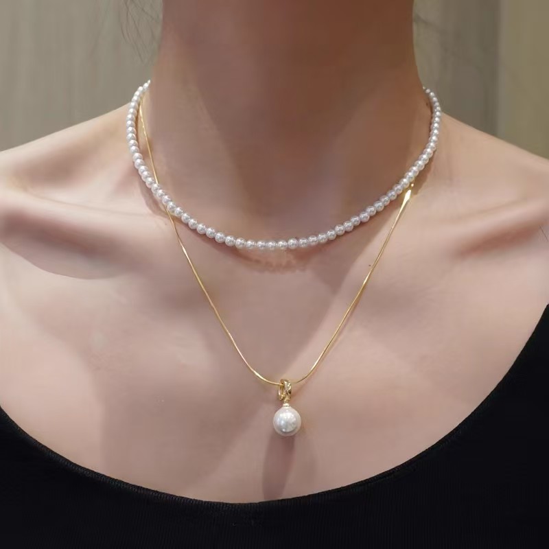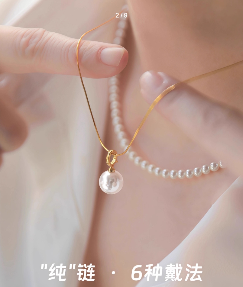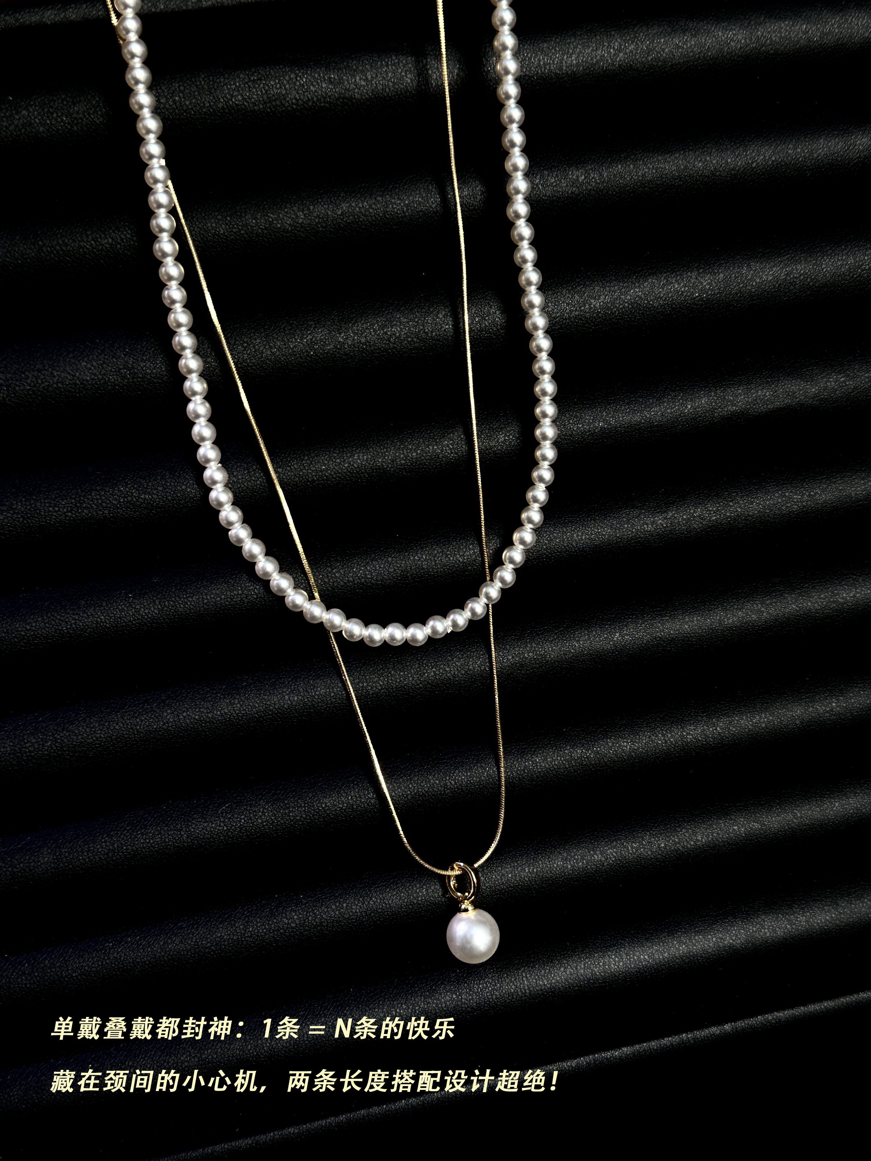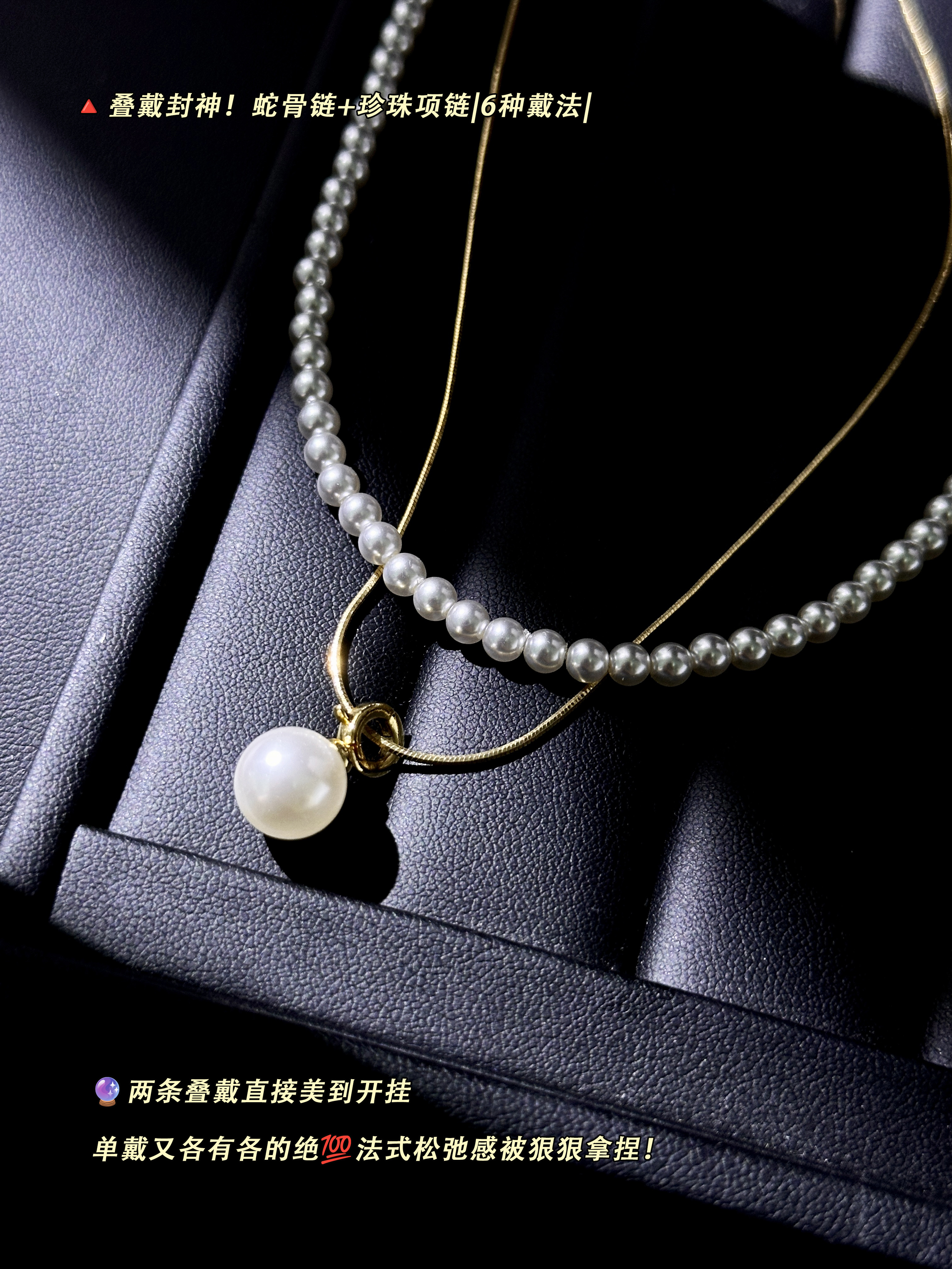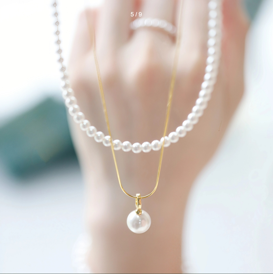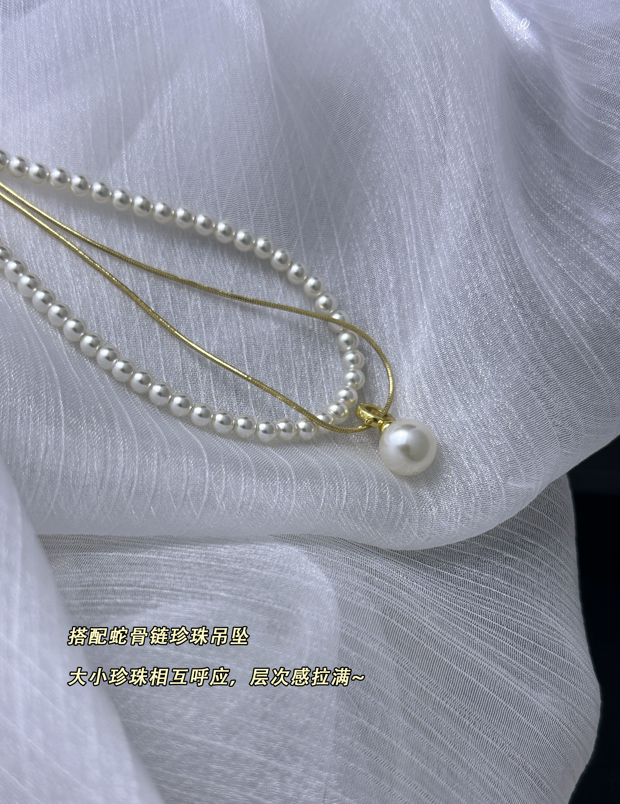 藏在颈间的小心机,两条长度搭配设计超绝!蛇骨链+珍珠+吊坠,大小珍珠相互呼应,层次感拉满~