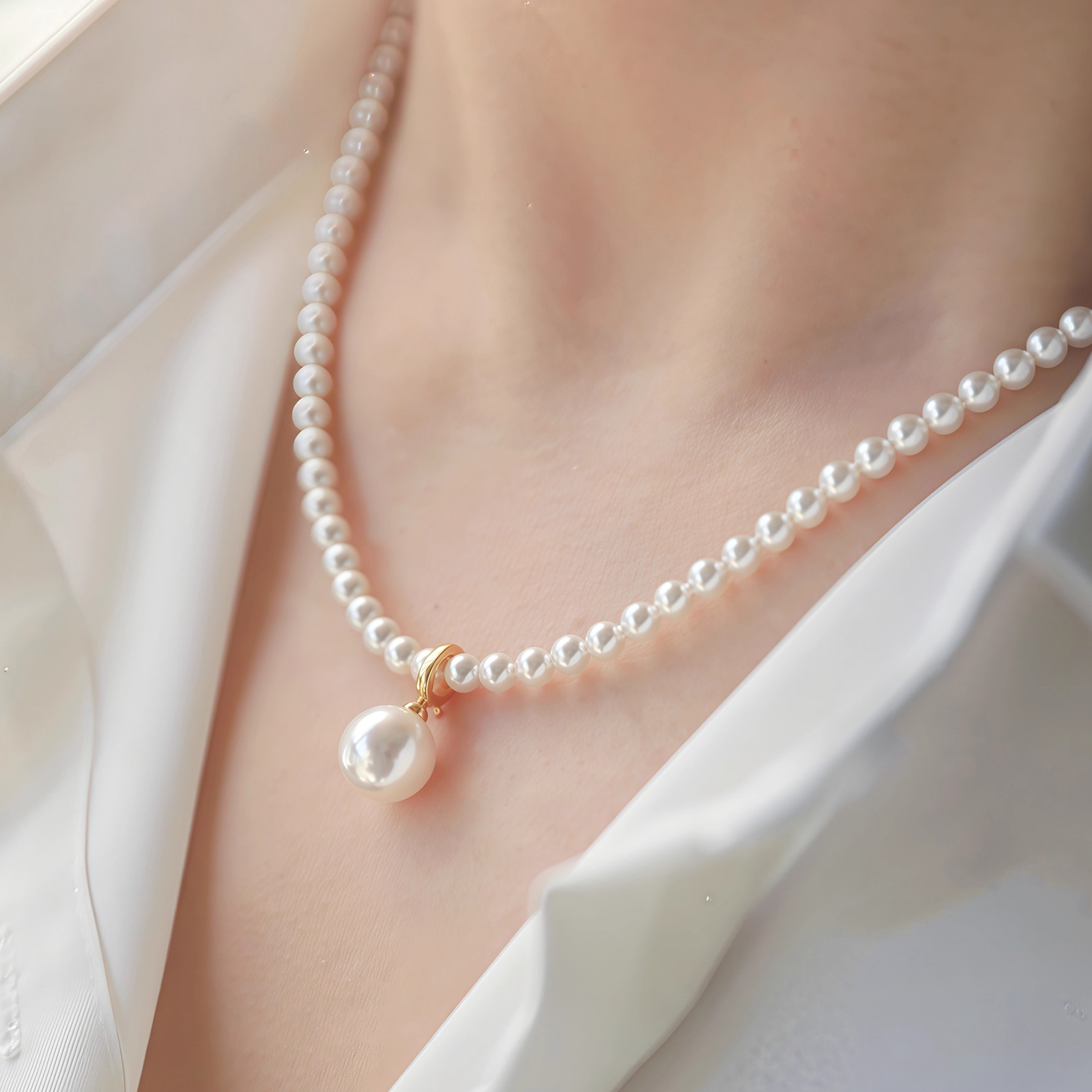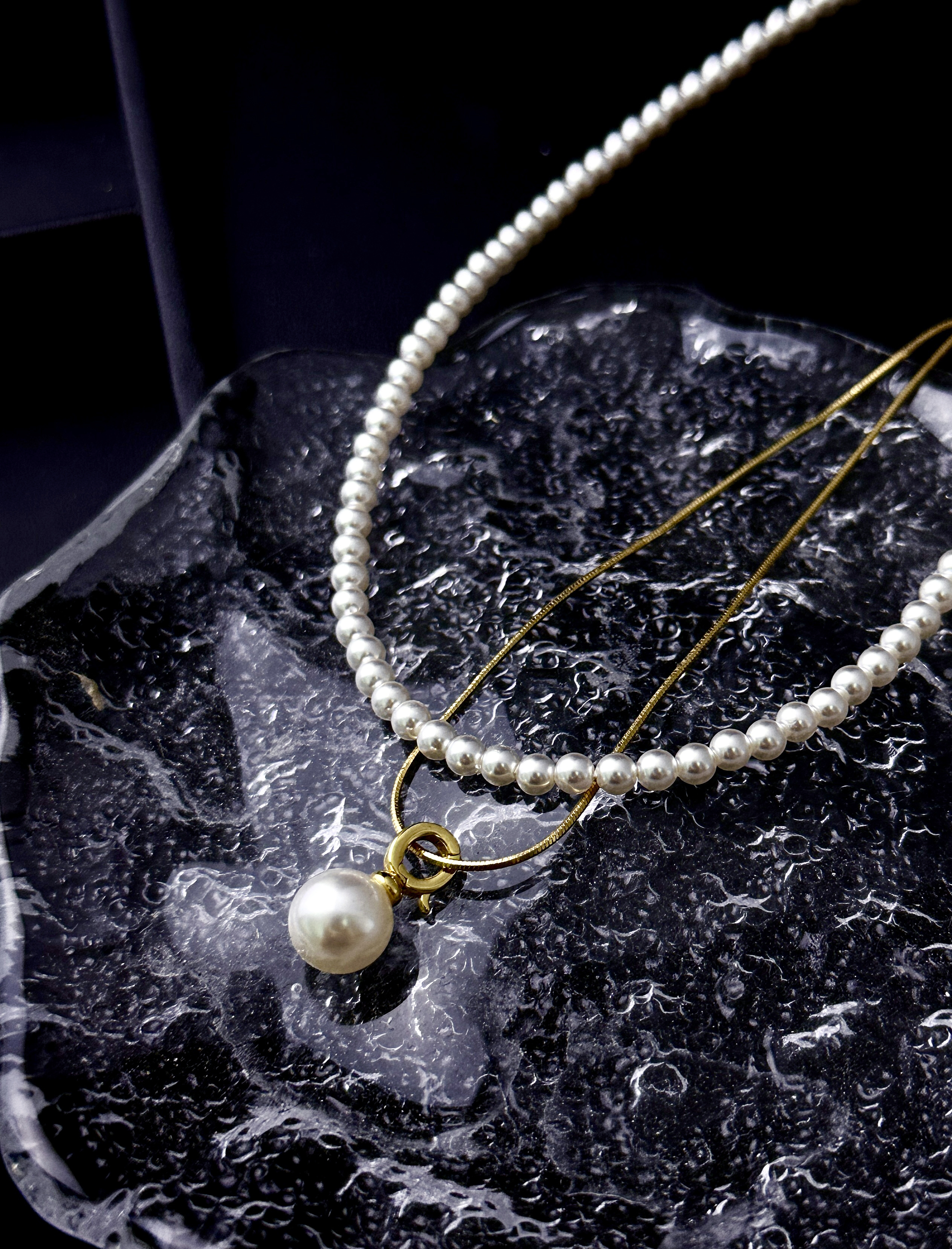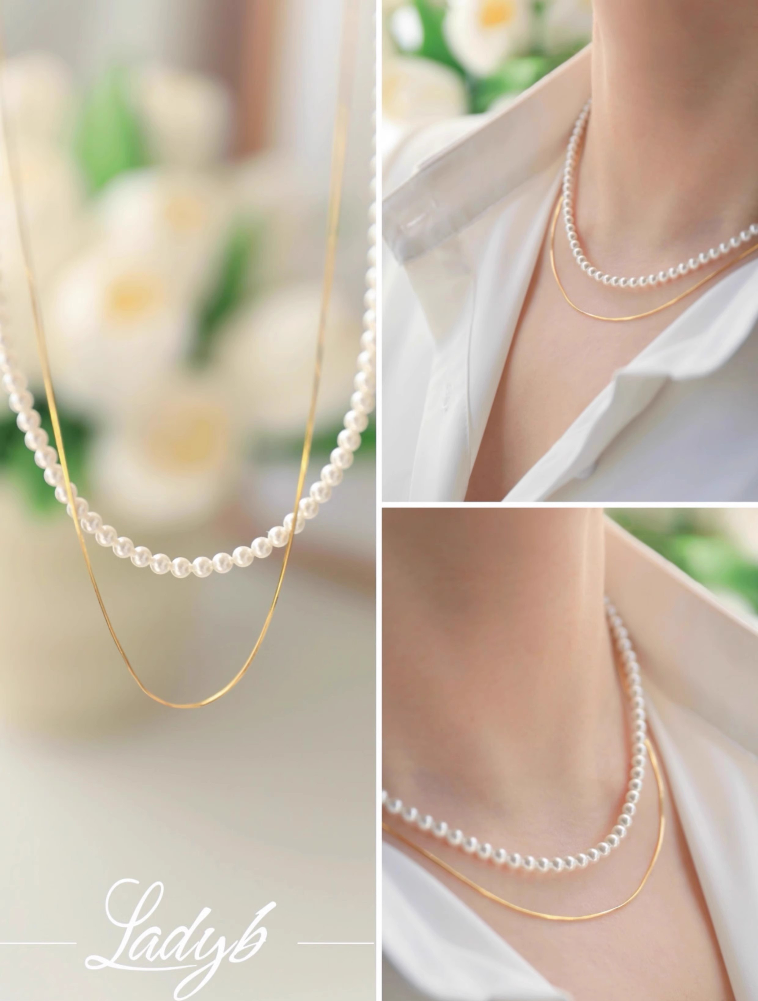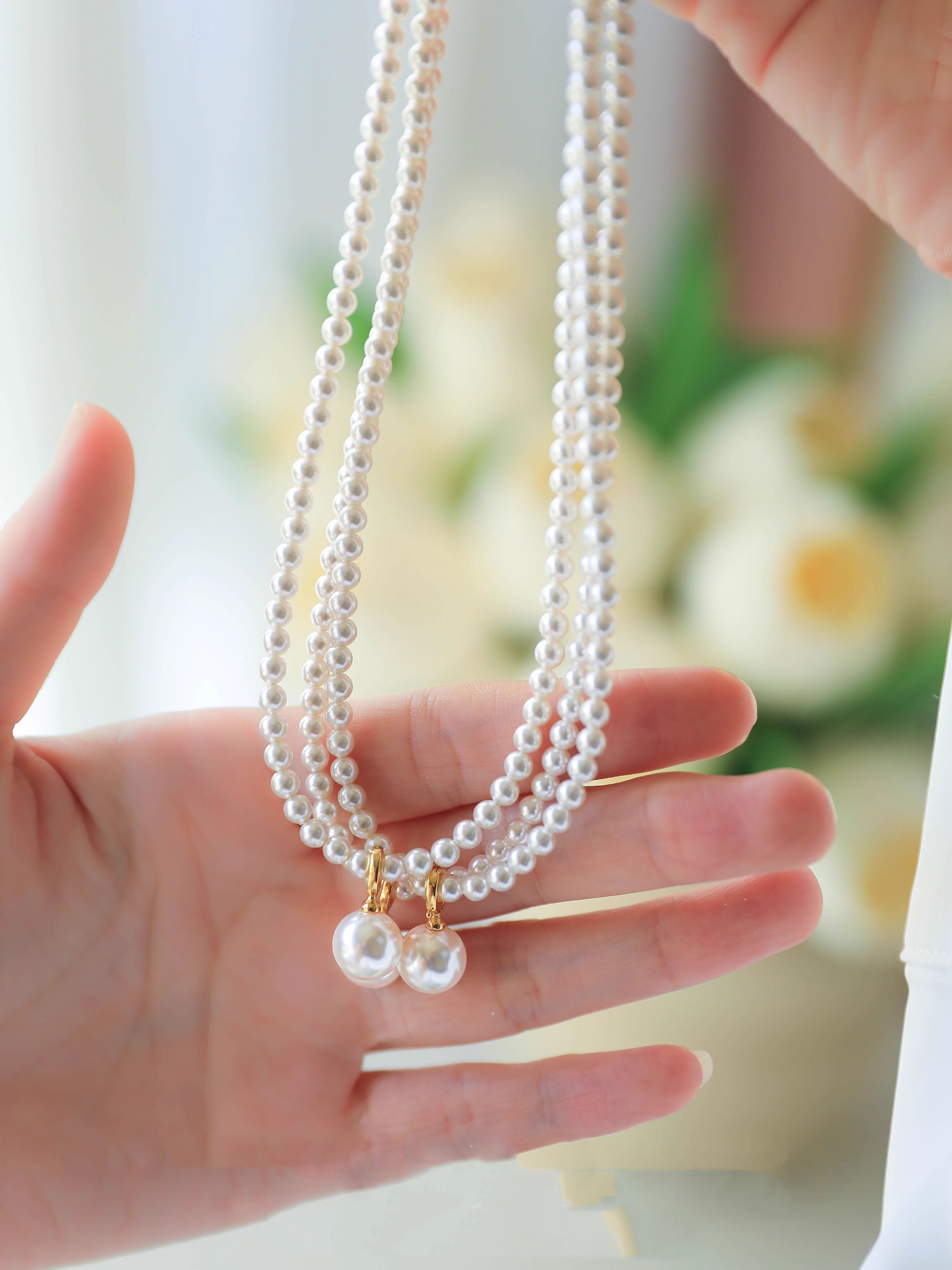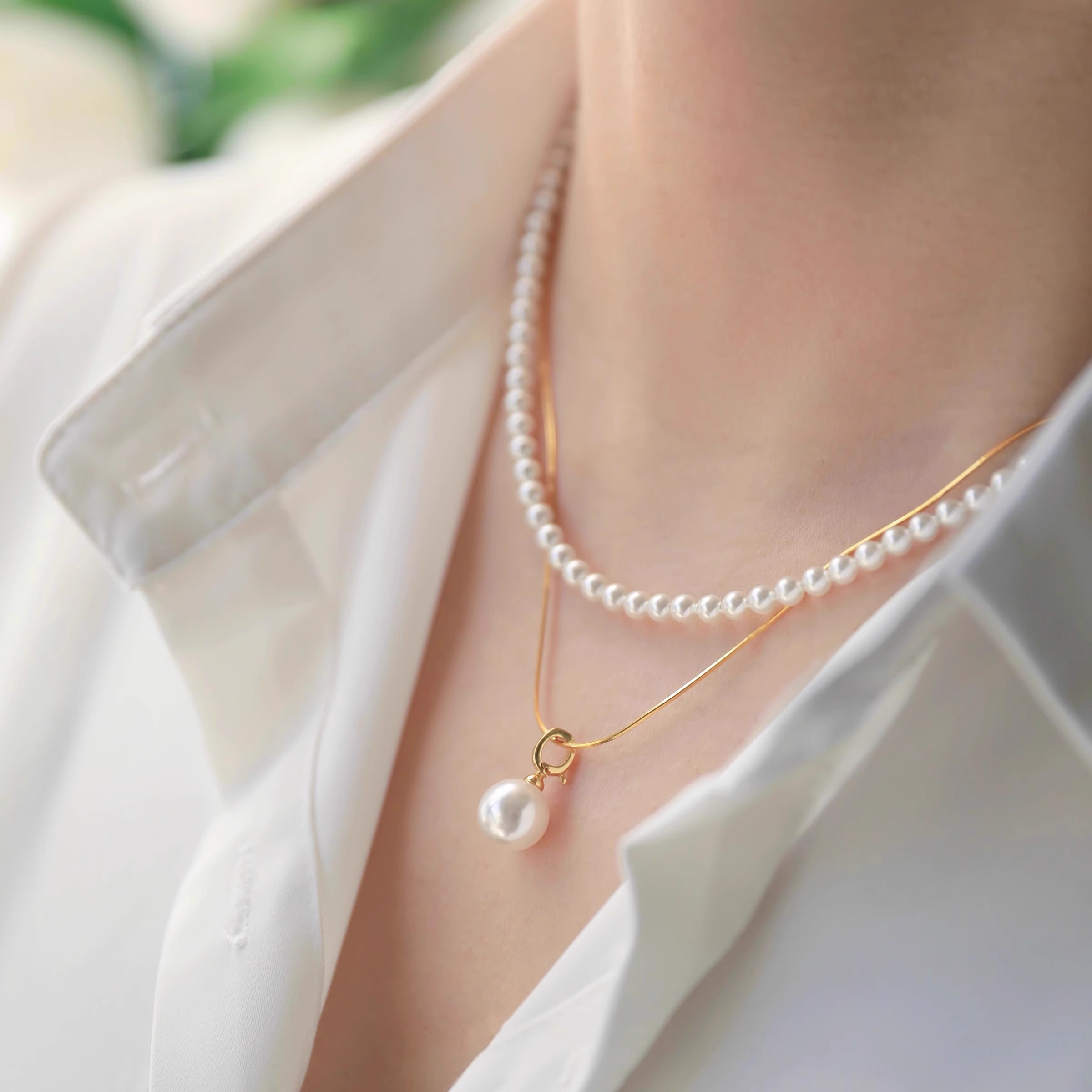 藏在颈间的小心机,两条长度搭配设计超绝!蛇骨链+珍珠+吊坠,大小珍珠相互呼应,层次感拉满~