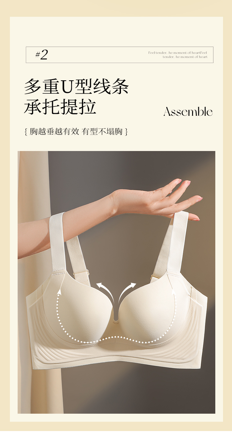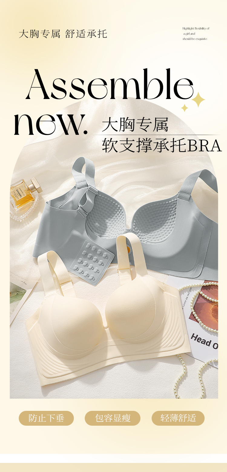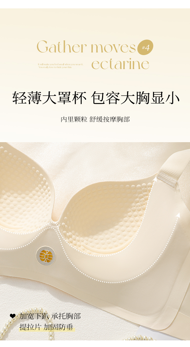 【大胸提拉防垂】裸感无痕聚拢内衣女按摩颗粒内杯收副乳文胸罩轻云漫漫