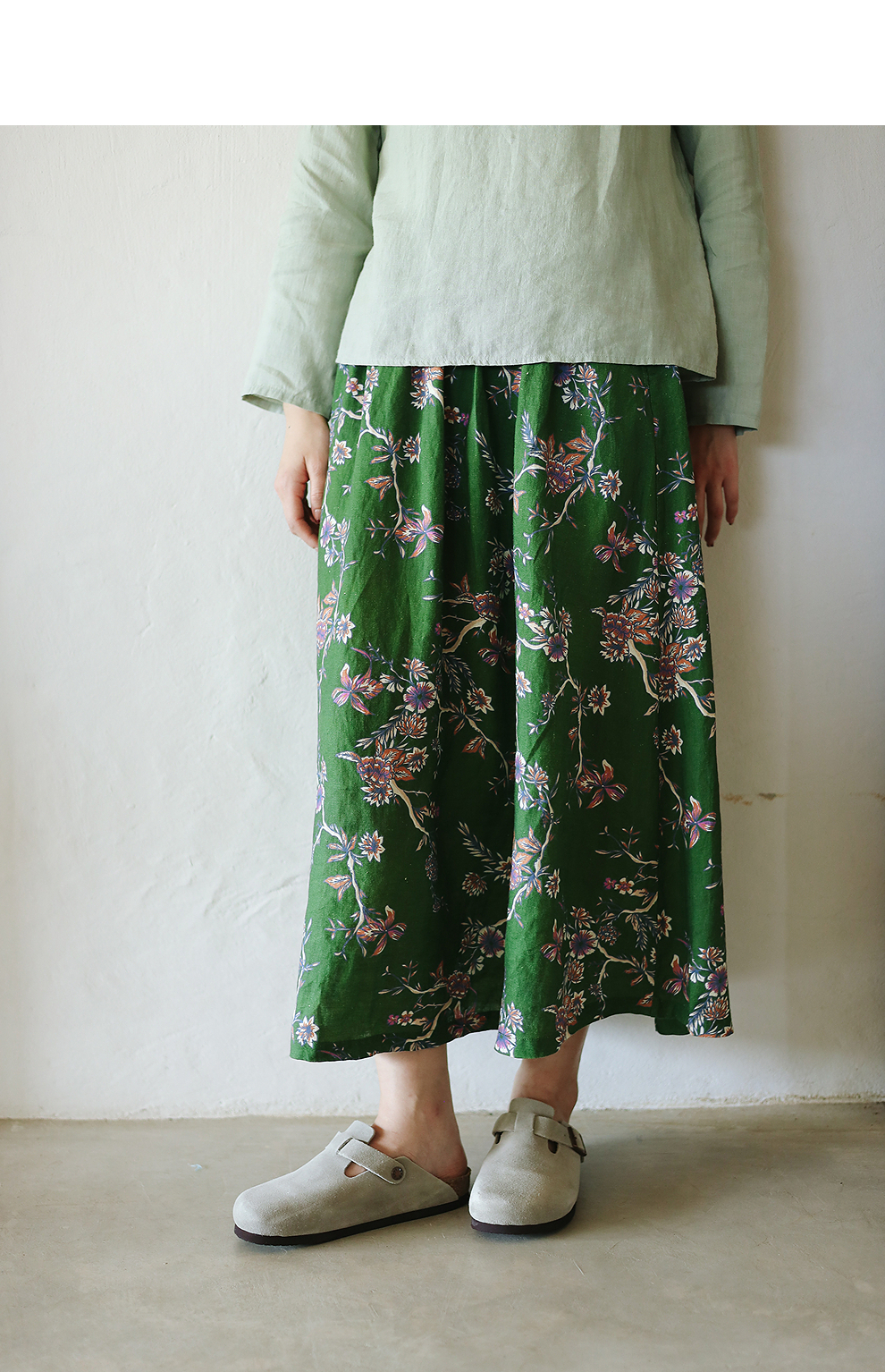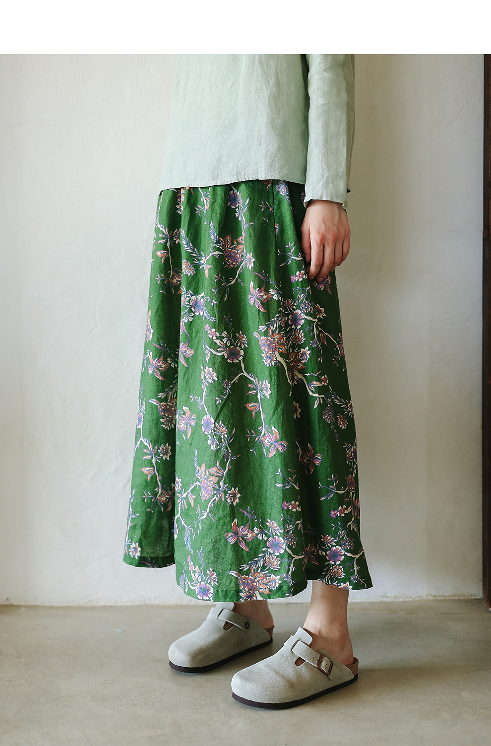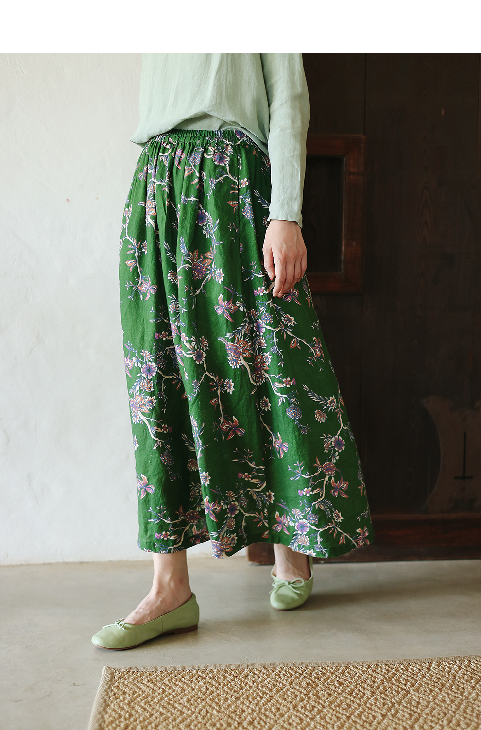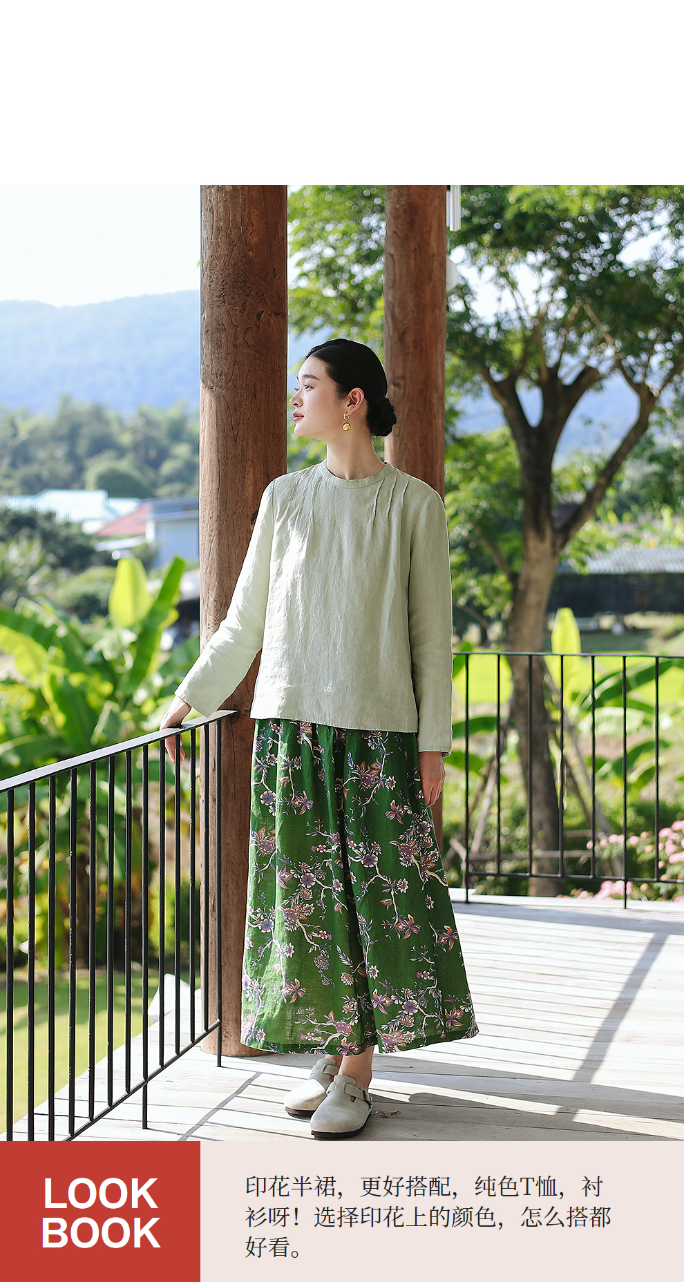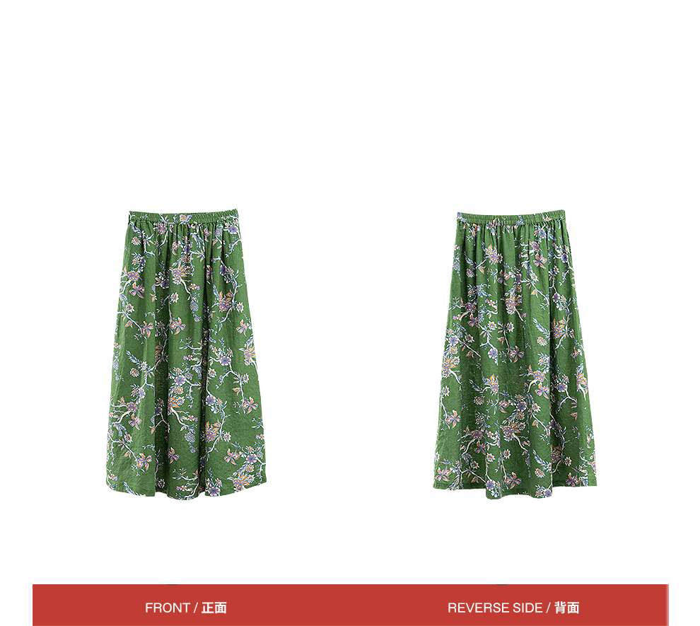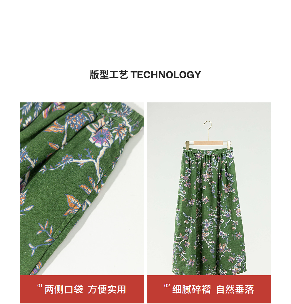 绽放旅行女装116朵/亚麻底印花全腰松紧内加抽绳显瘦A字摆半裙
