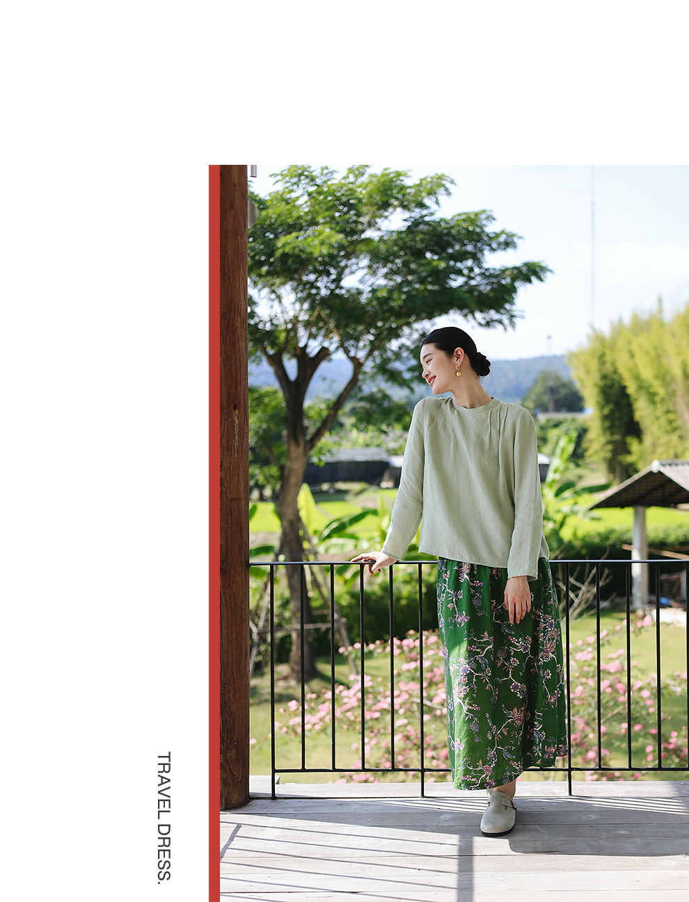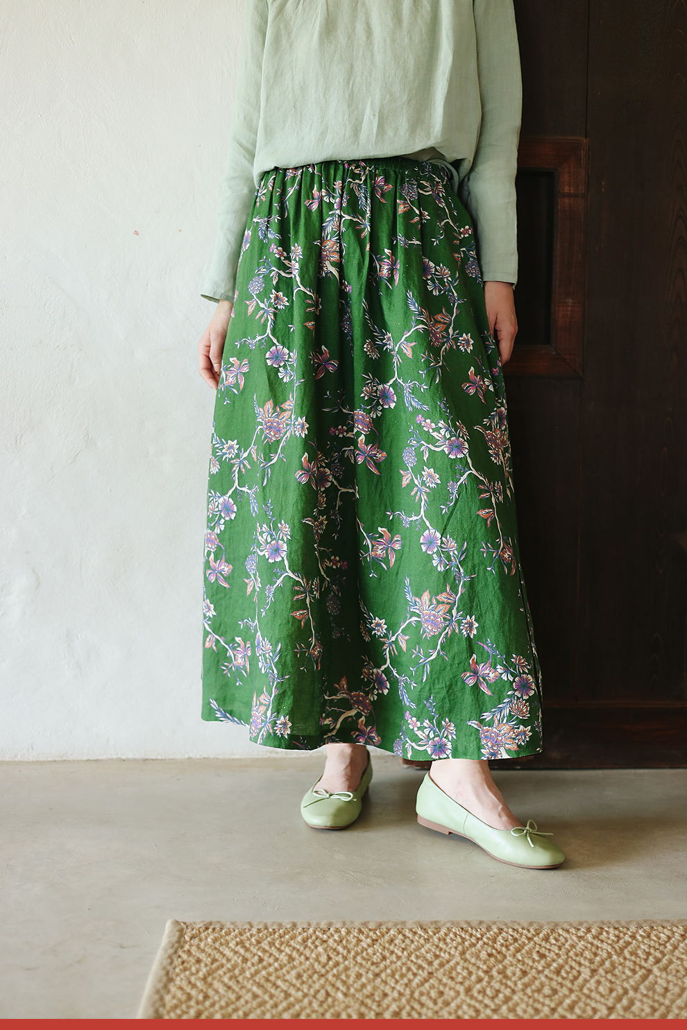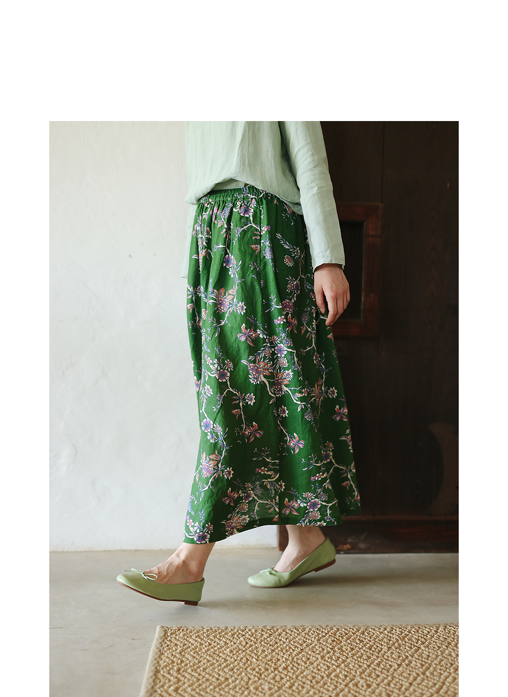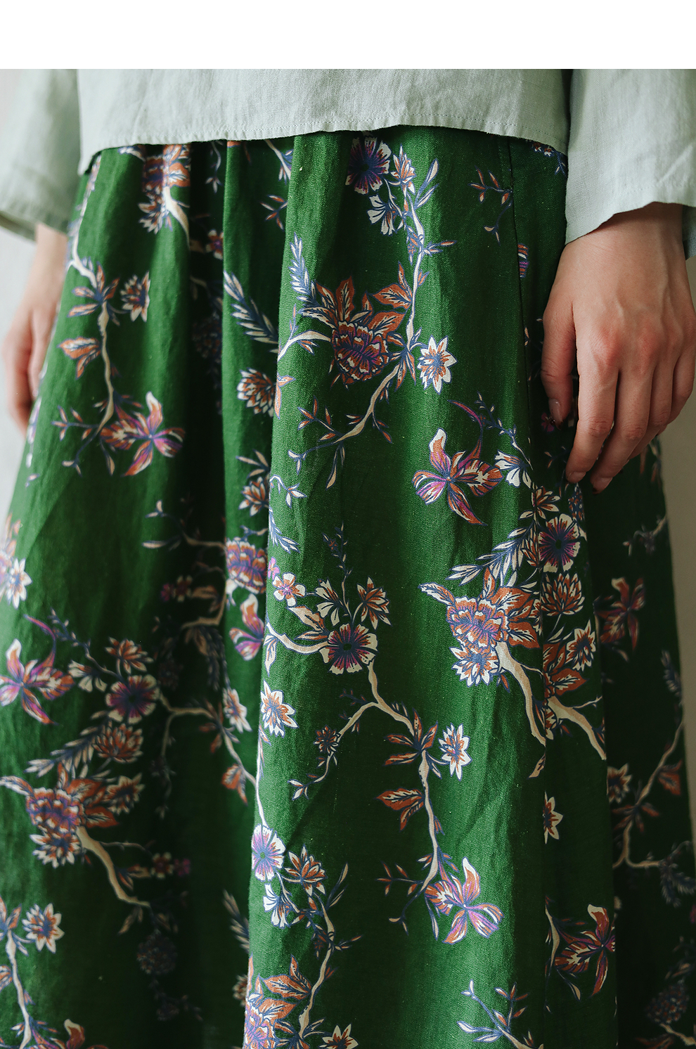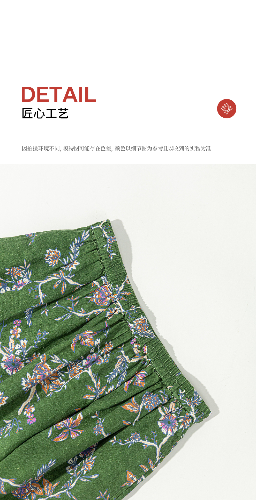 绽放旅行女装116朵/亚麻底印花全腰松紧内加抽绳显瘦A字摆半裙