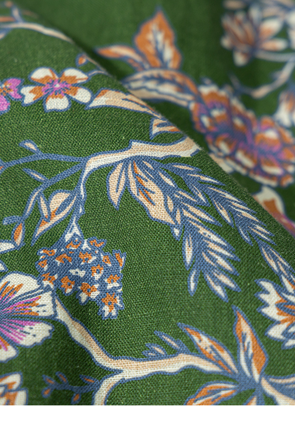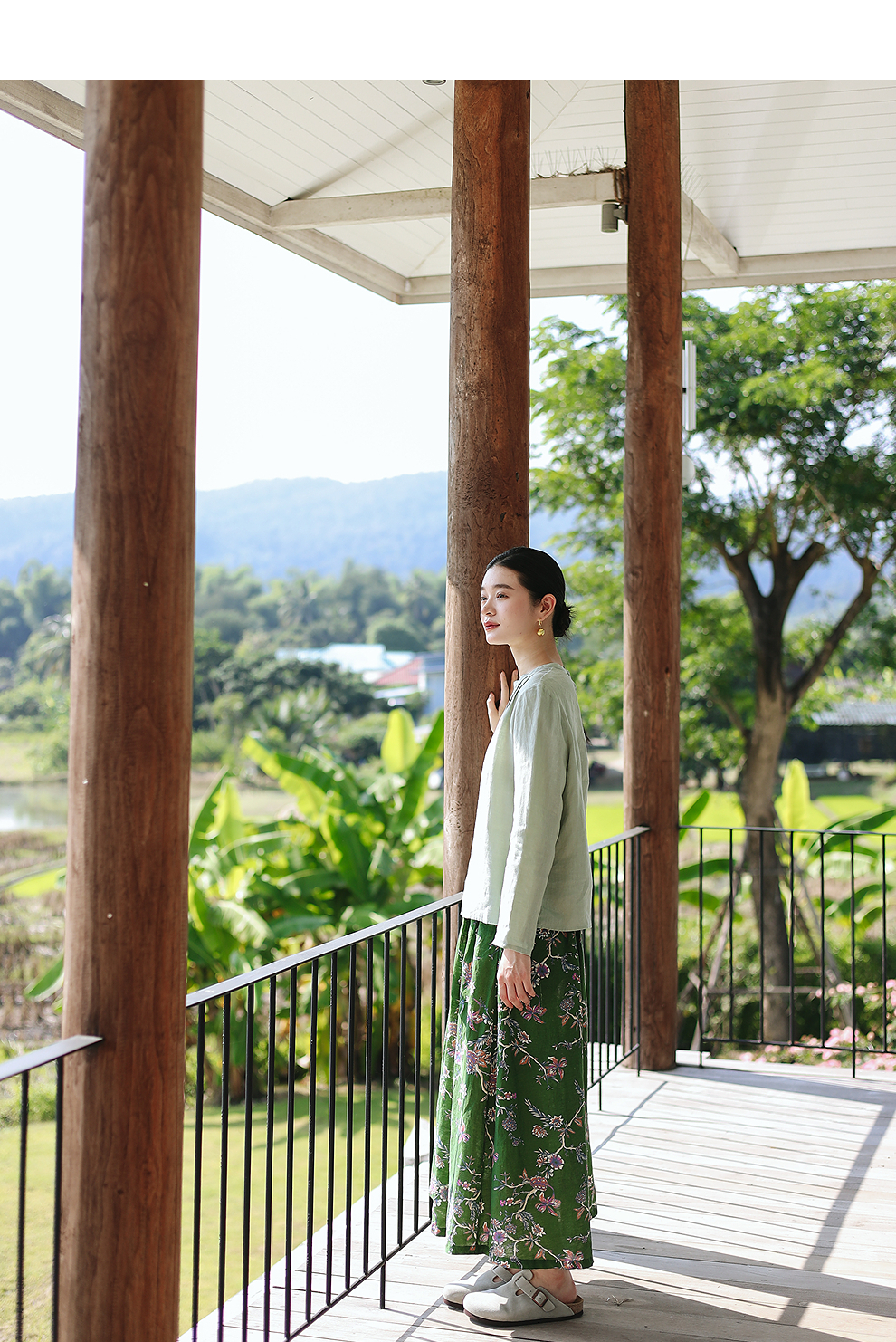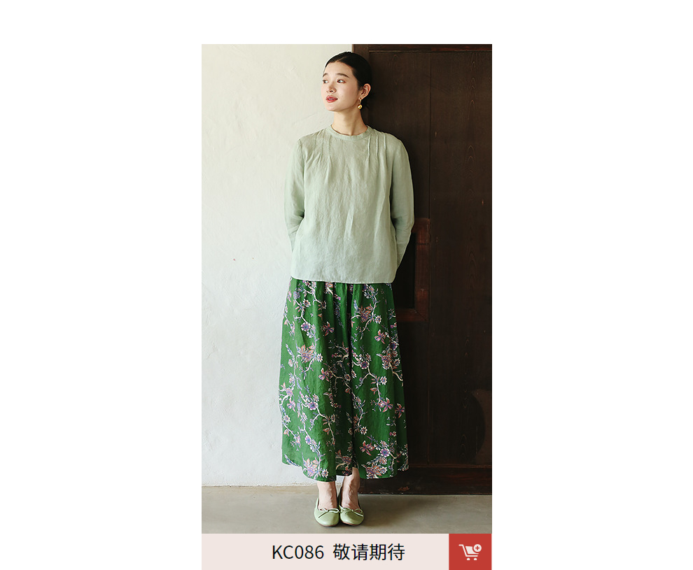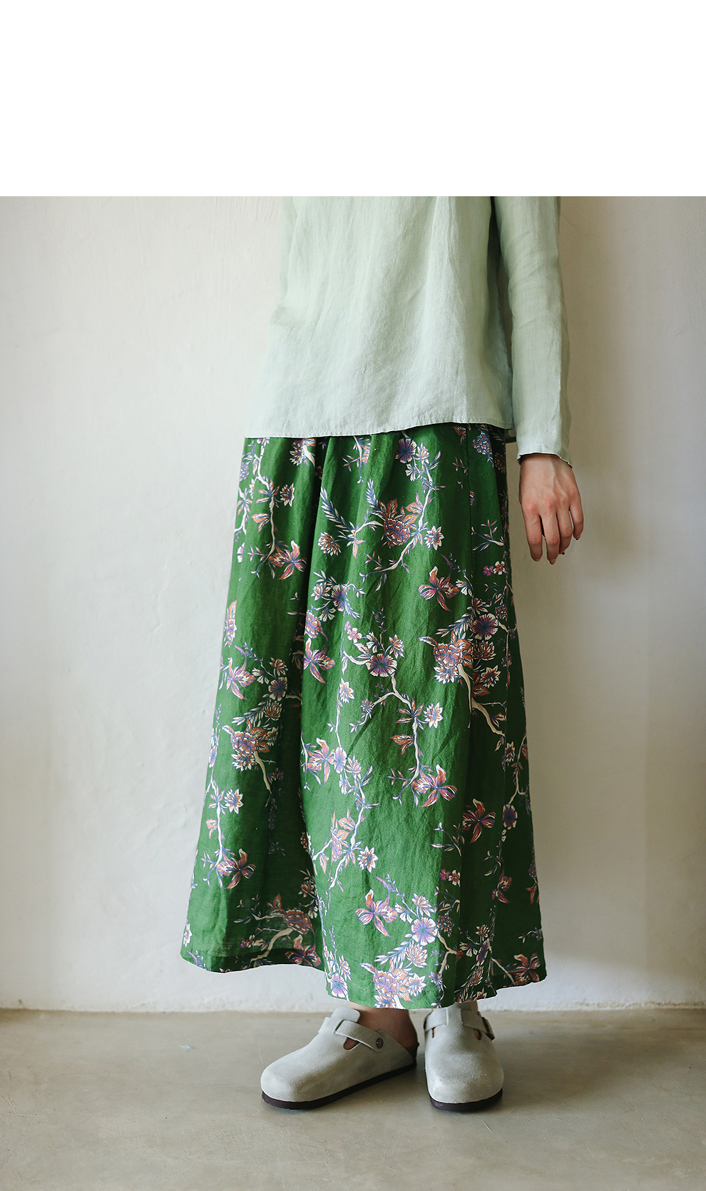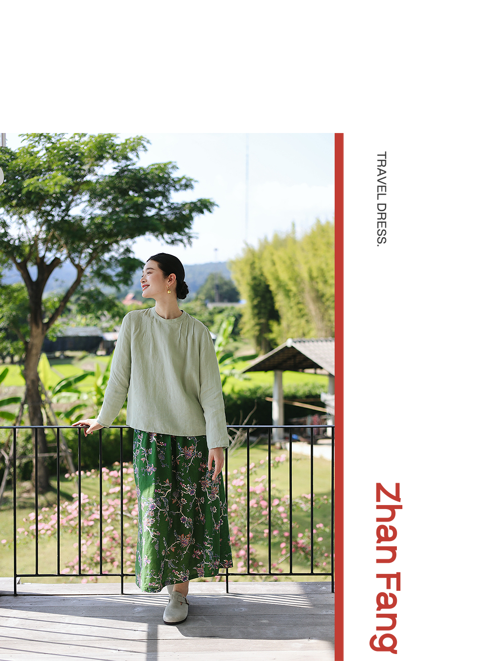 绽放旅行女装116朵/亚麻底印花全腰松紧内加抽绳显瘦A字摆半裙
