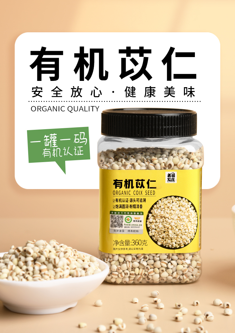美丽农庄有机苡仁 辽宁薏苡仁薏米煲汤甜品煮水360g/罐