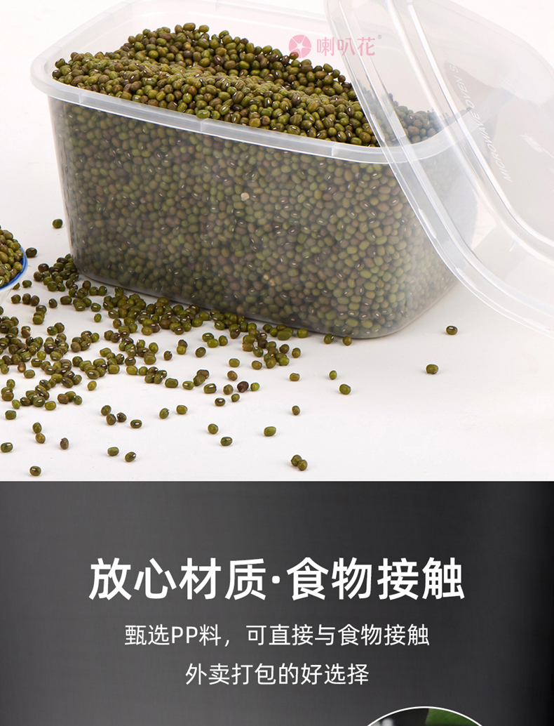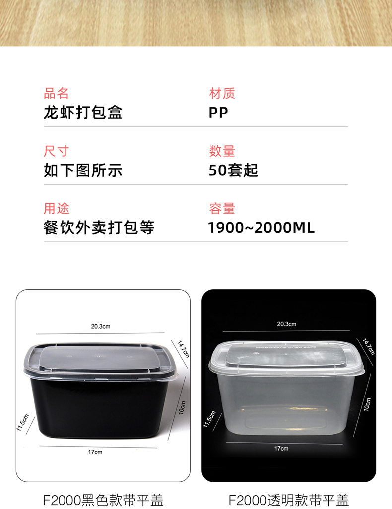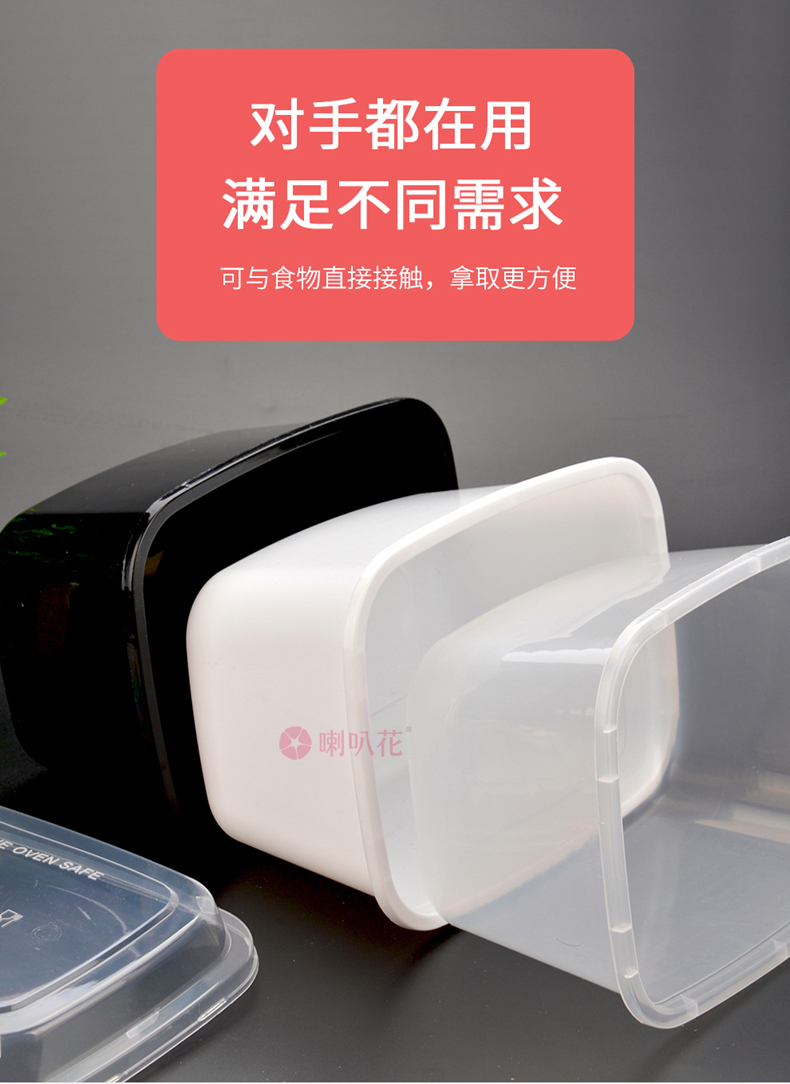喇叭花2000ml一次性餐盒长方形加厚打包盒螃蟹小龙虾姜母鸭盒50套