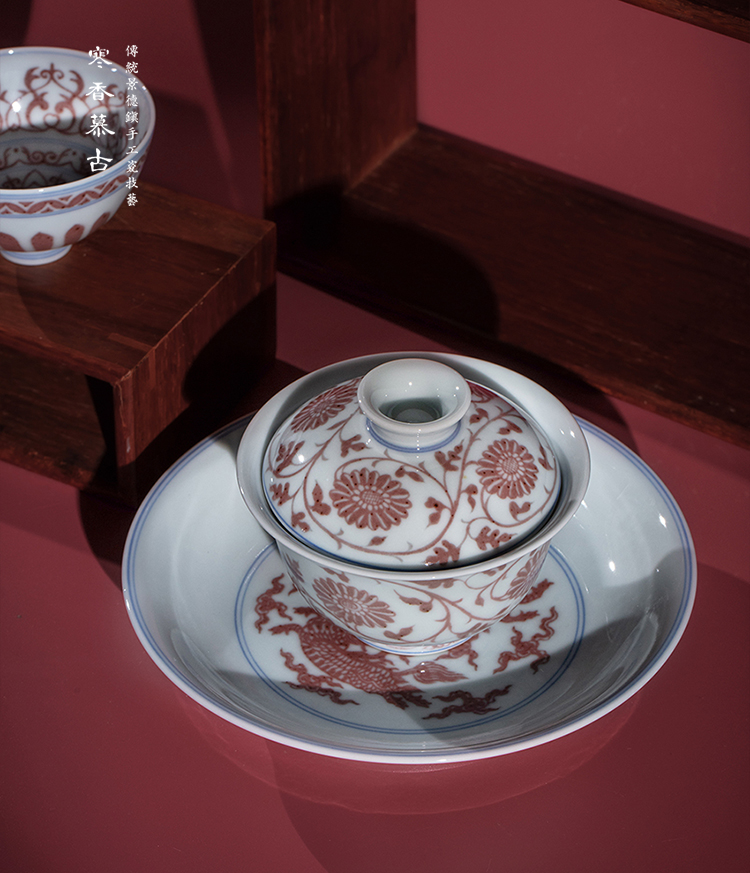 寒香慕古明釉里红菊花纹圆融盖碗(缺货)