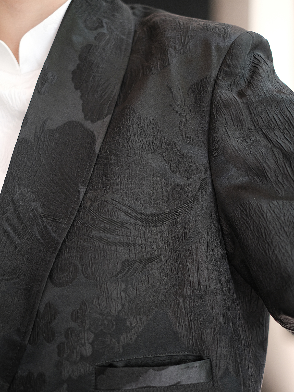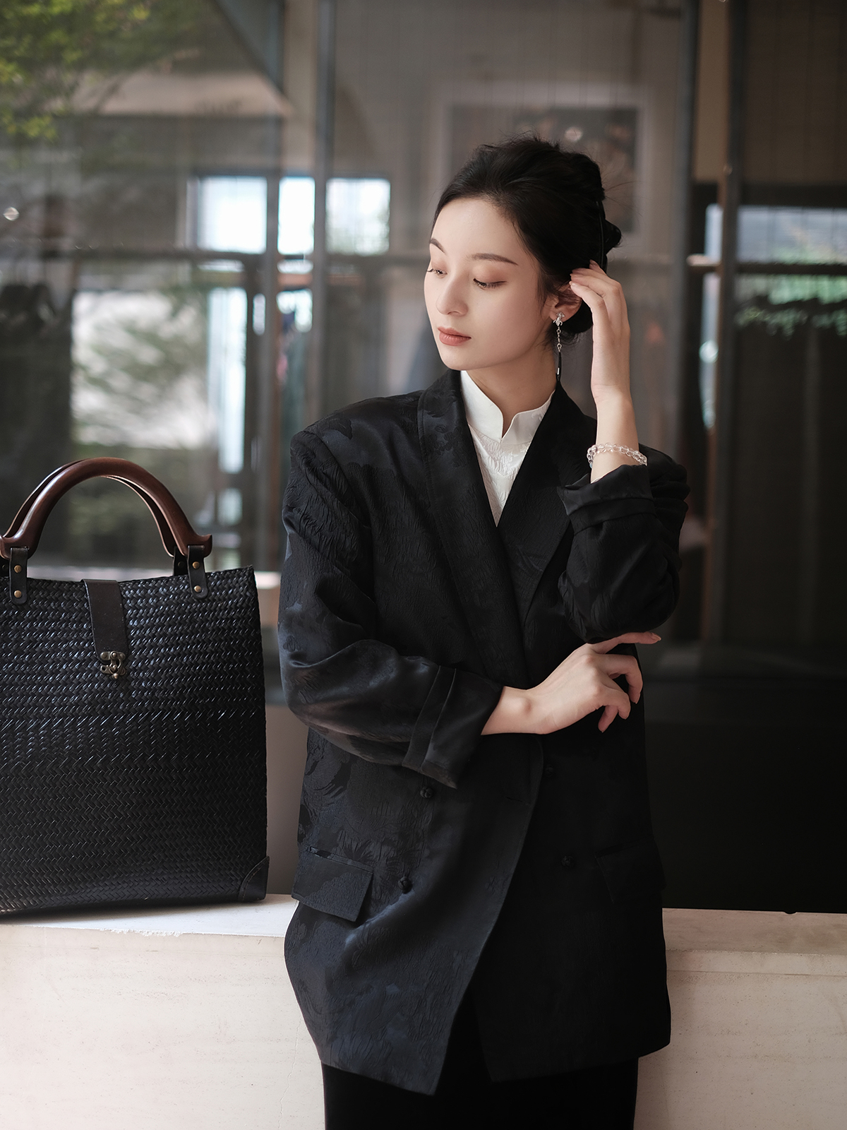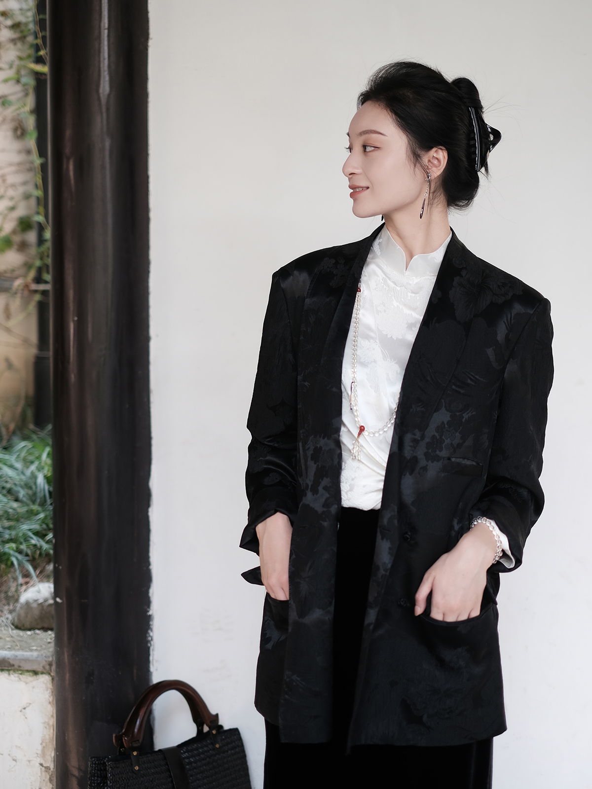 盛唐牡丹 |真丝冠乐绉凤凰纹双排扣西装外套