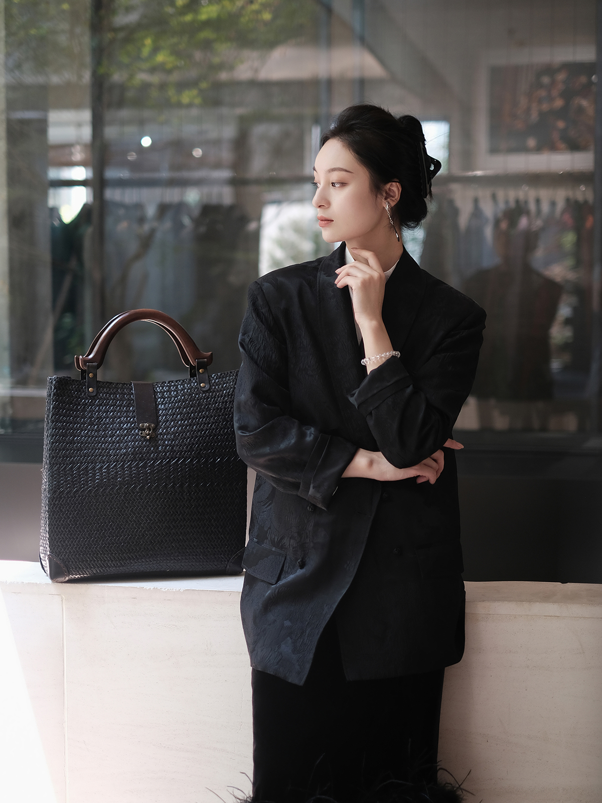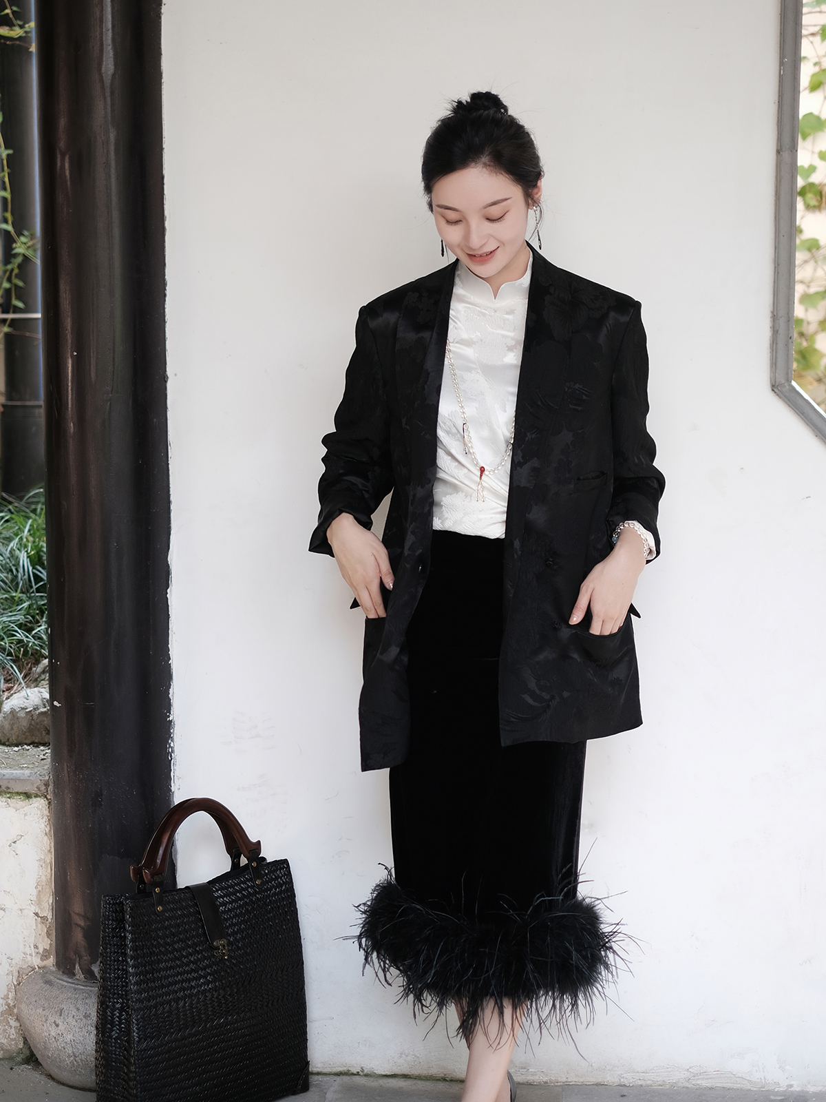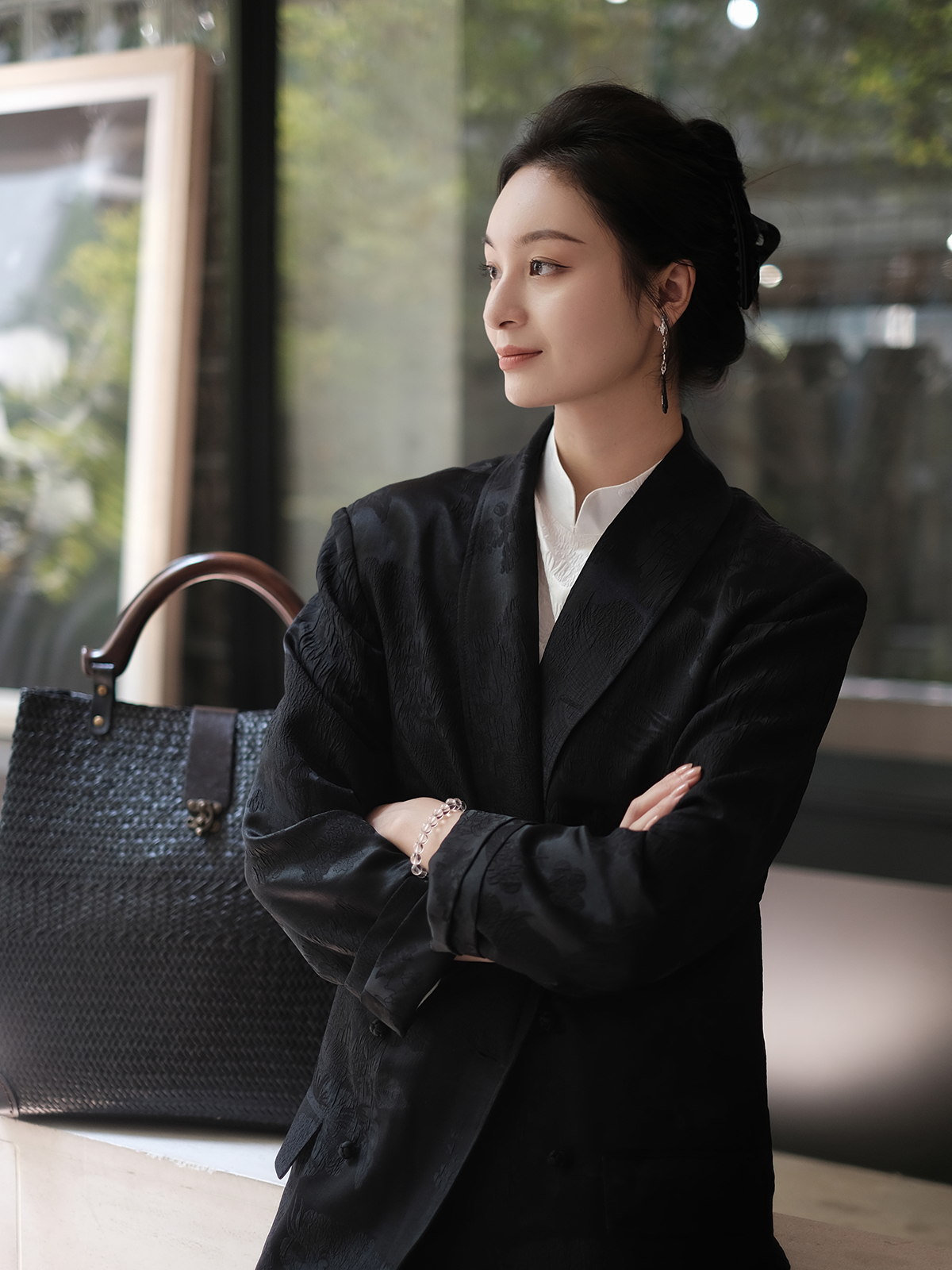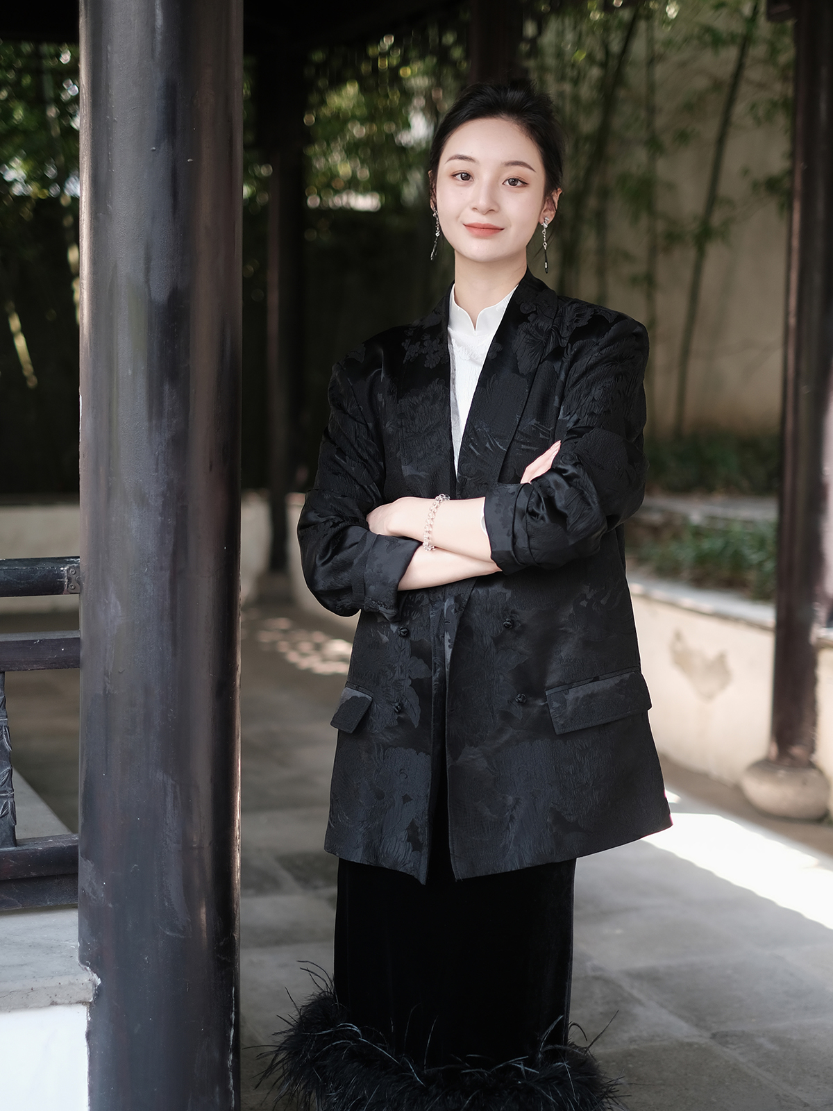 盛唐牡丹 |真丝冠乐绉凤凰纹双排扣西装外套