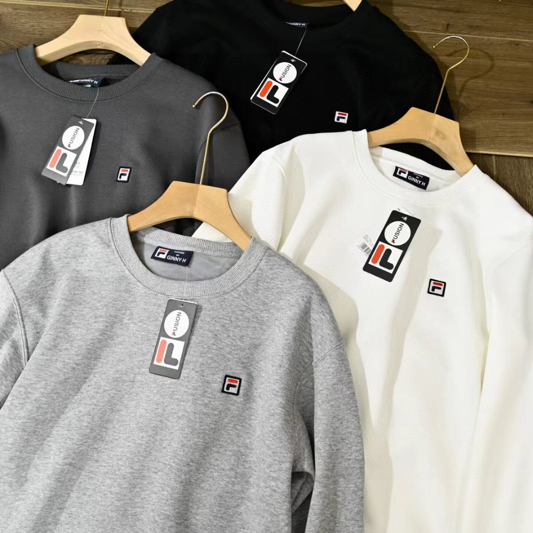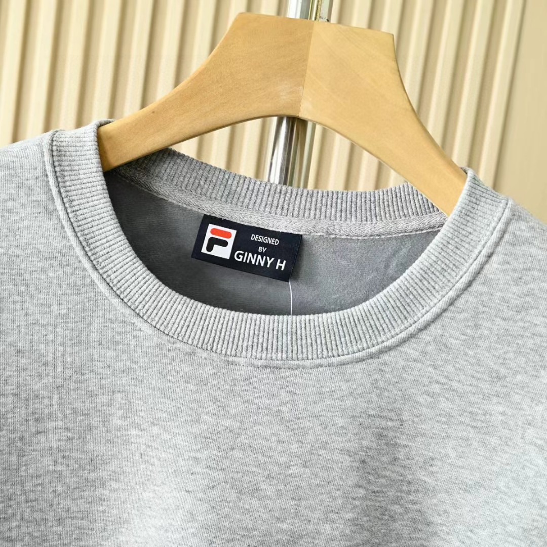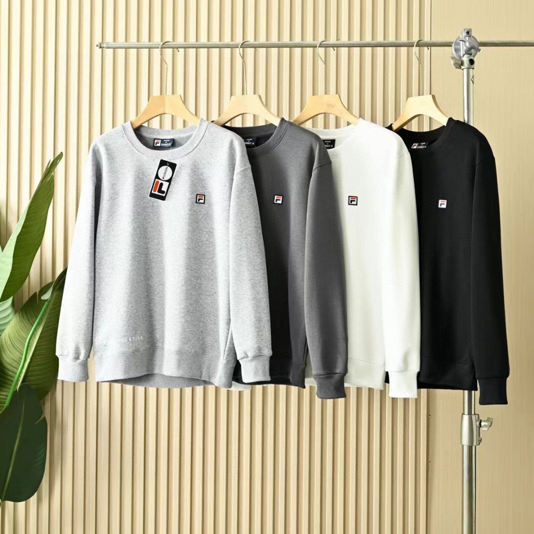 菲乐FILA贴布绣刺绣logo2025秋冬加绒加厚季新款男女同款四色锦纶华夫格面料 加厚套头圆领卫衣!