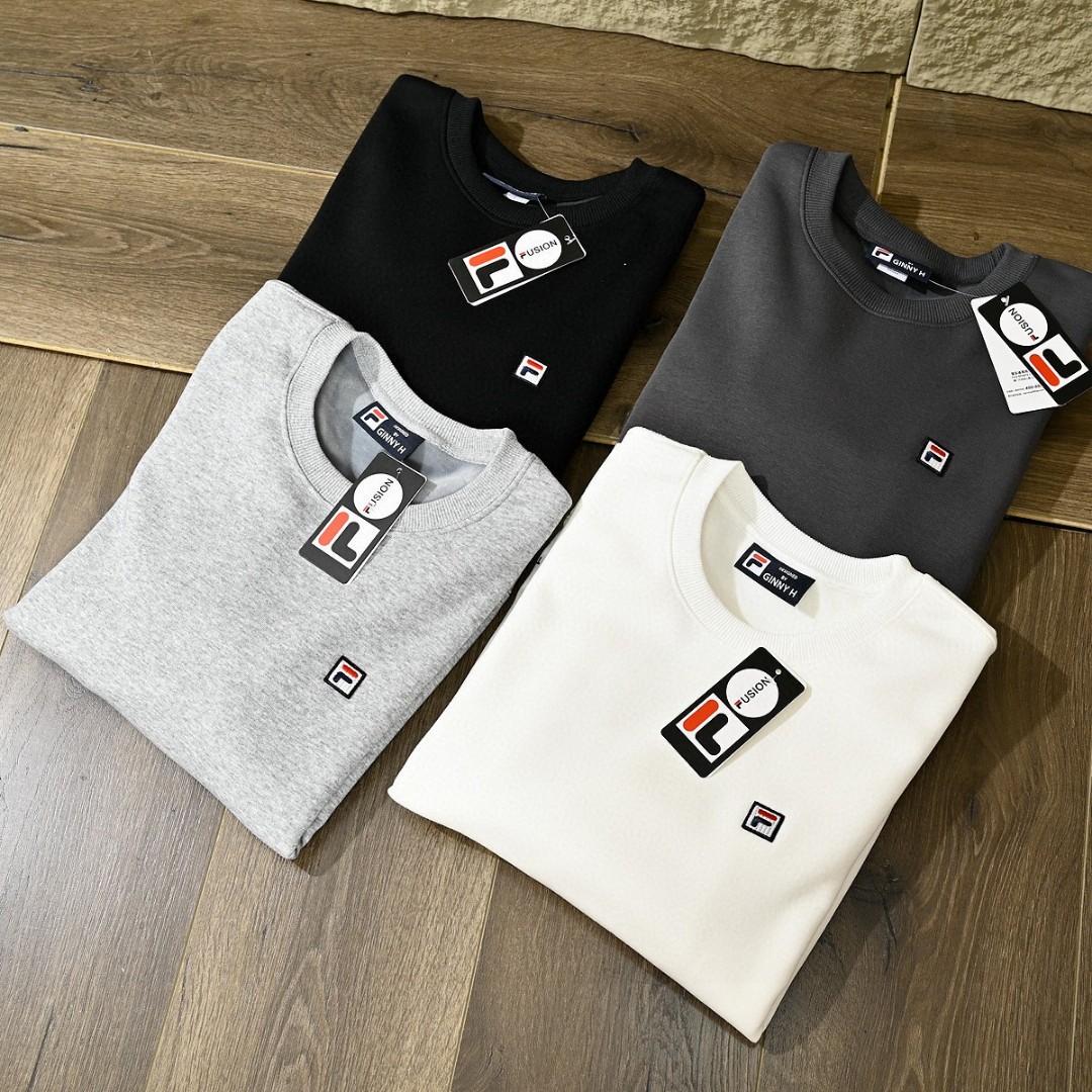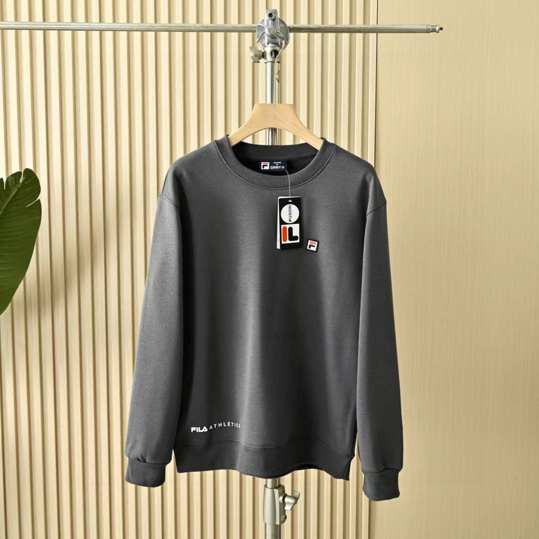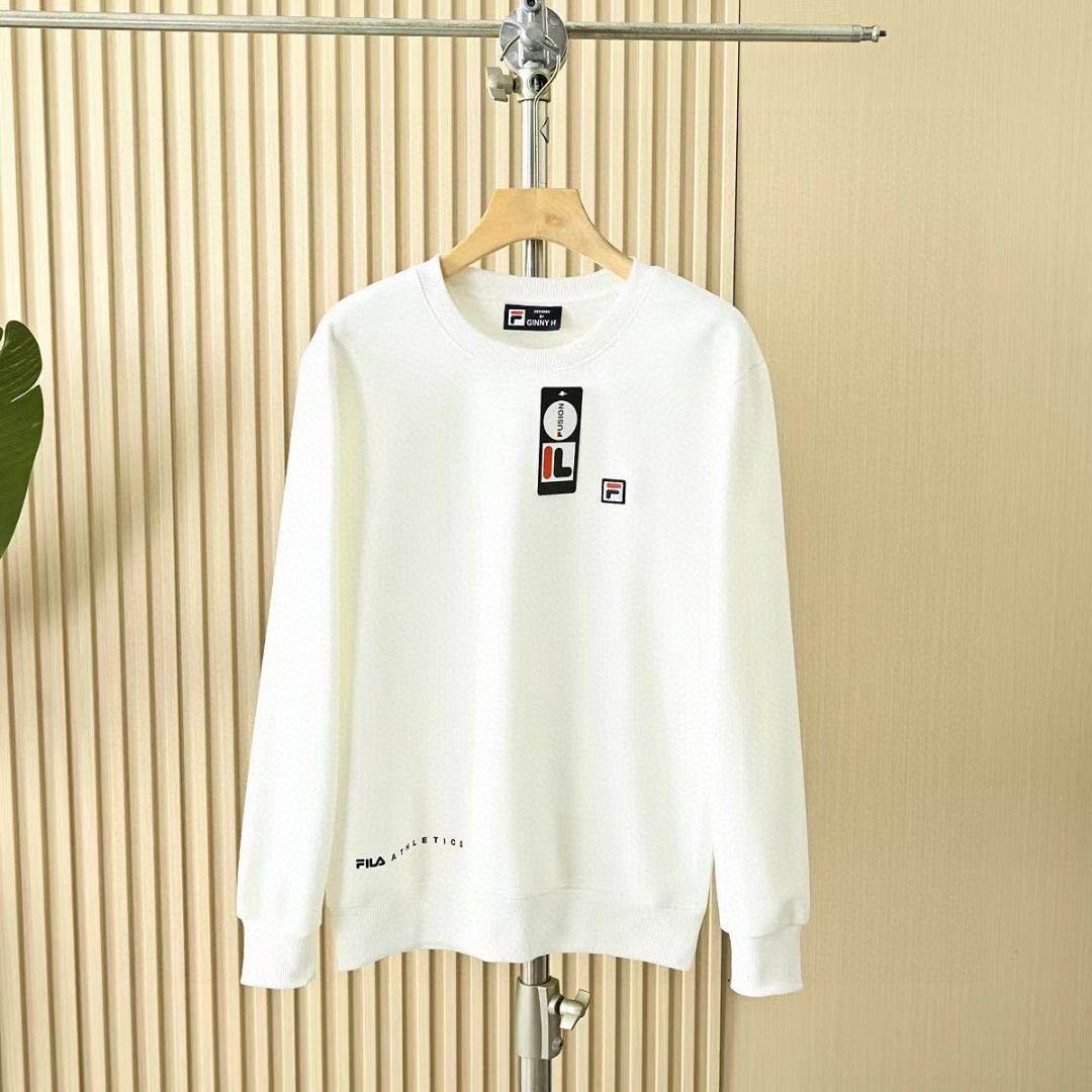 菲乐FILA贴布绣刺绣logo2025秋冬加绒加厚季新款男女同款四色锦纶华夫格面料 加厚套头圆领卫衣!