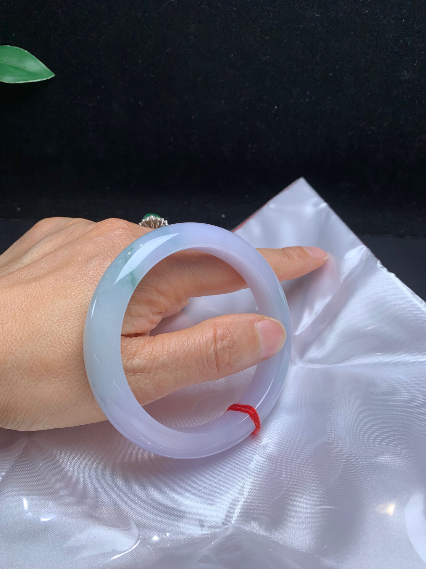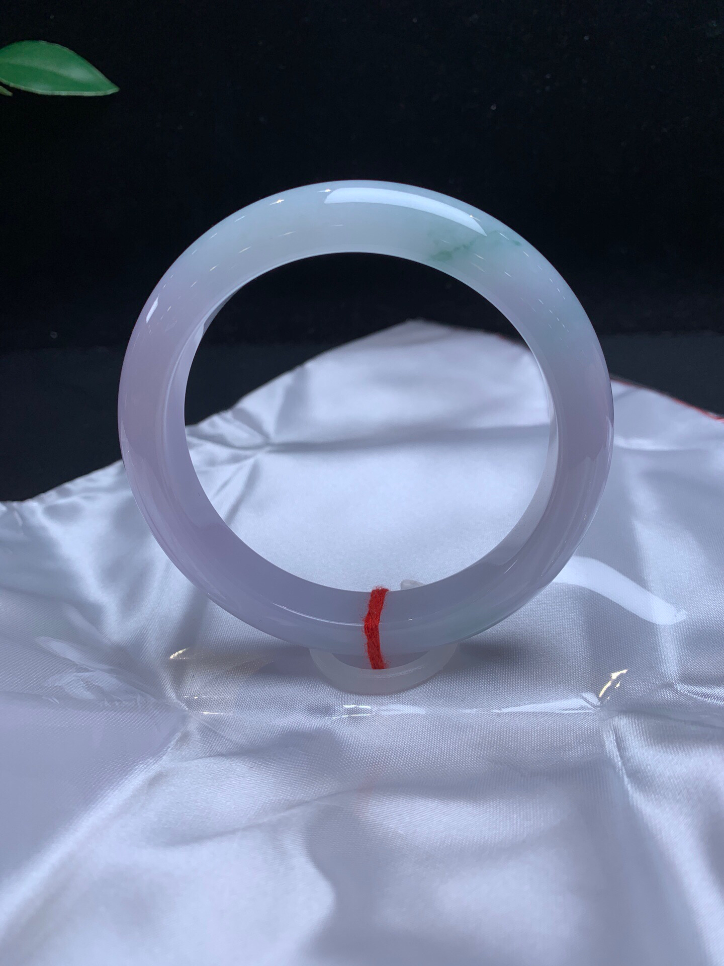 612474,61紫罗兰飘花手镯,12.4-9.5mm,底妆均匀细腻, 一截淡紫底色,局部飘了一些淡雅的花色,清新干净,完美,超值价💰28400 #优石客珠宝#香玉荟萃