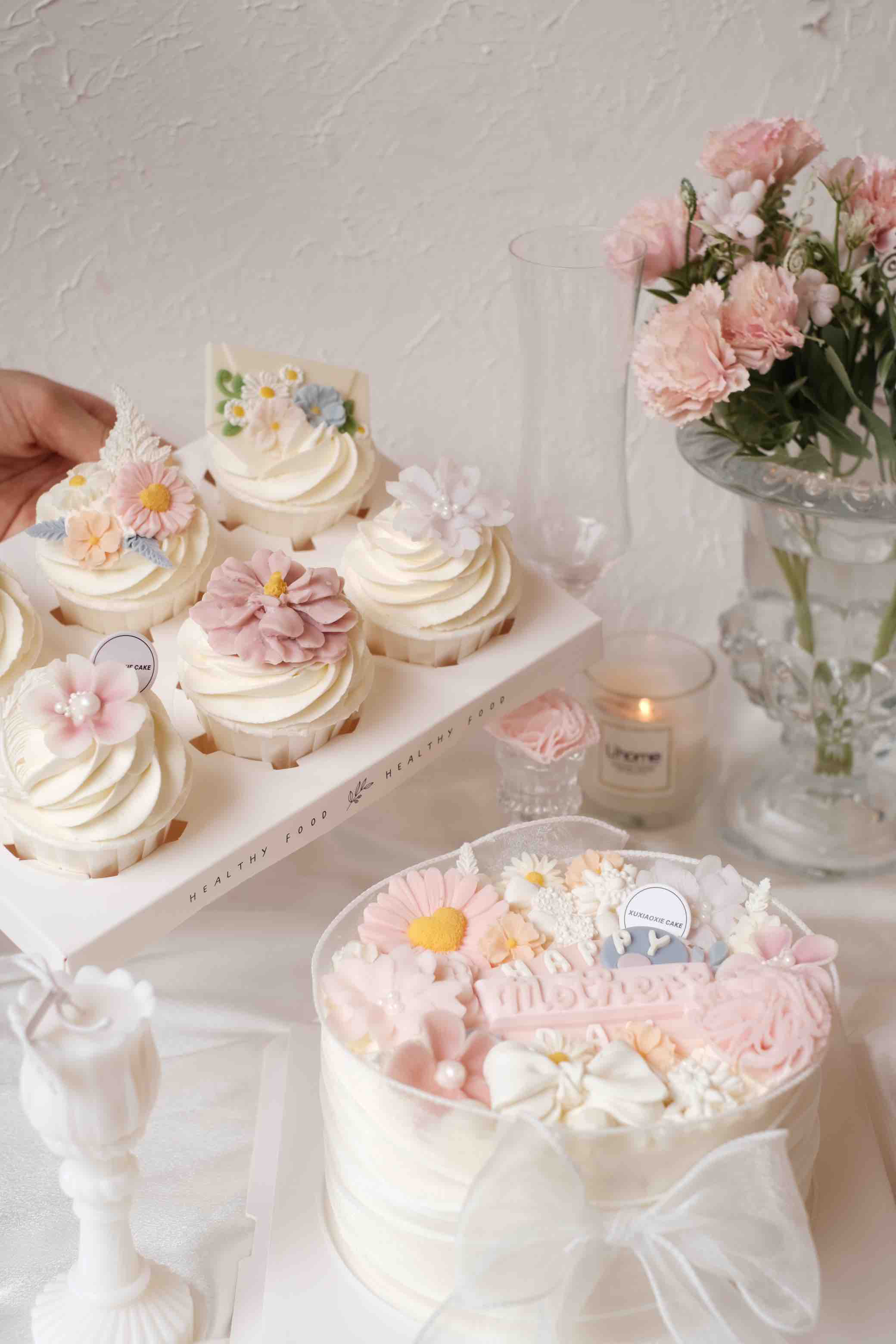 【2022母亲节限定】款式四、6寸巧克力花蛋糕+纸杯蛋糕6只 (3层蛋糕胚,奶油抹面,2层夹心,水果默认火芒)