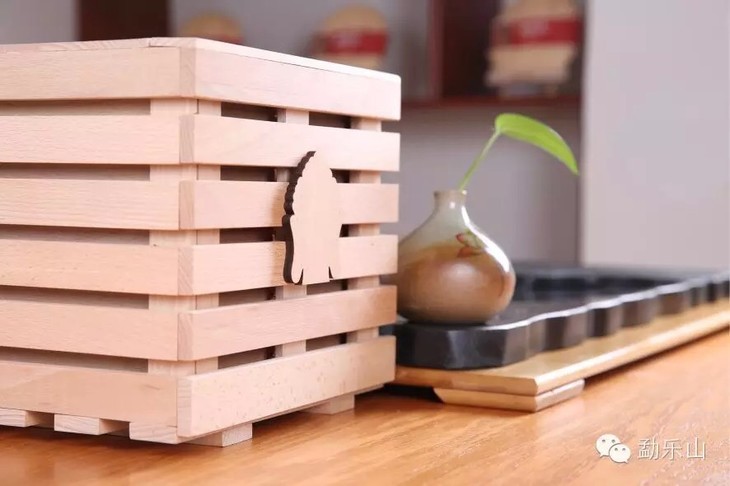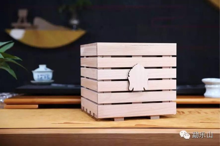 其美观实用的白松木木箱、与箱体相配合的箱盖以及安装在箱体内部的层架,构成箱体的左箱壁、右箱壁、后箱壁具有间隙形成通风结构,使茶叶在存放期间有完好的透风与转化。