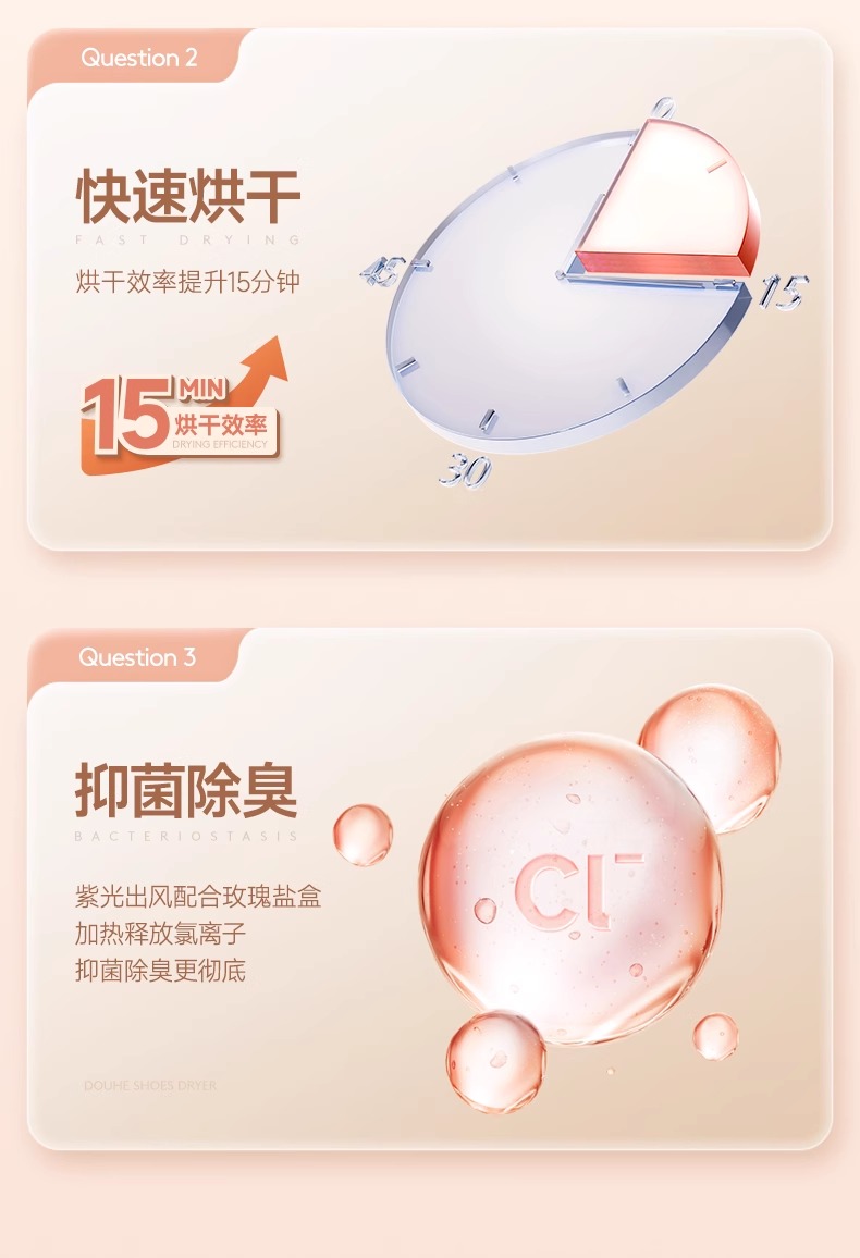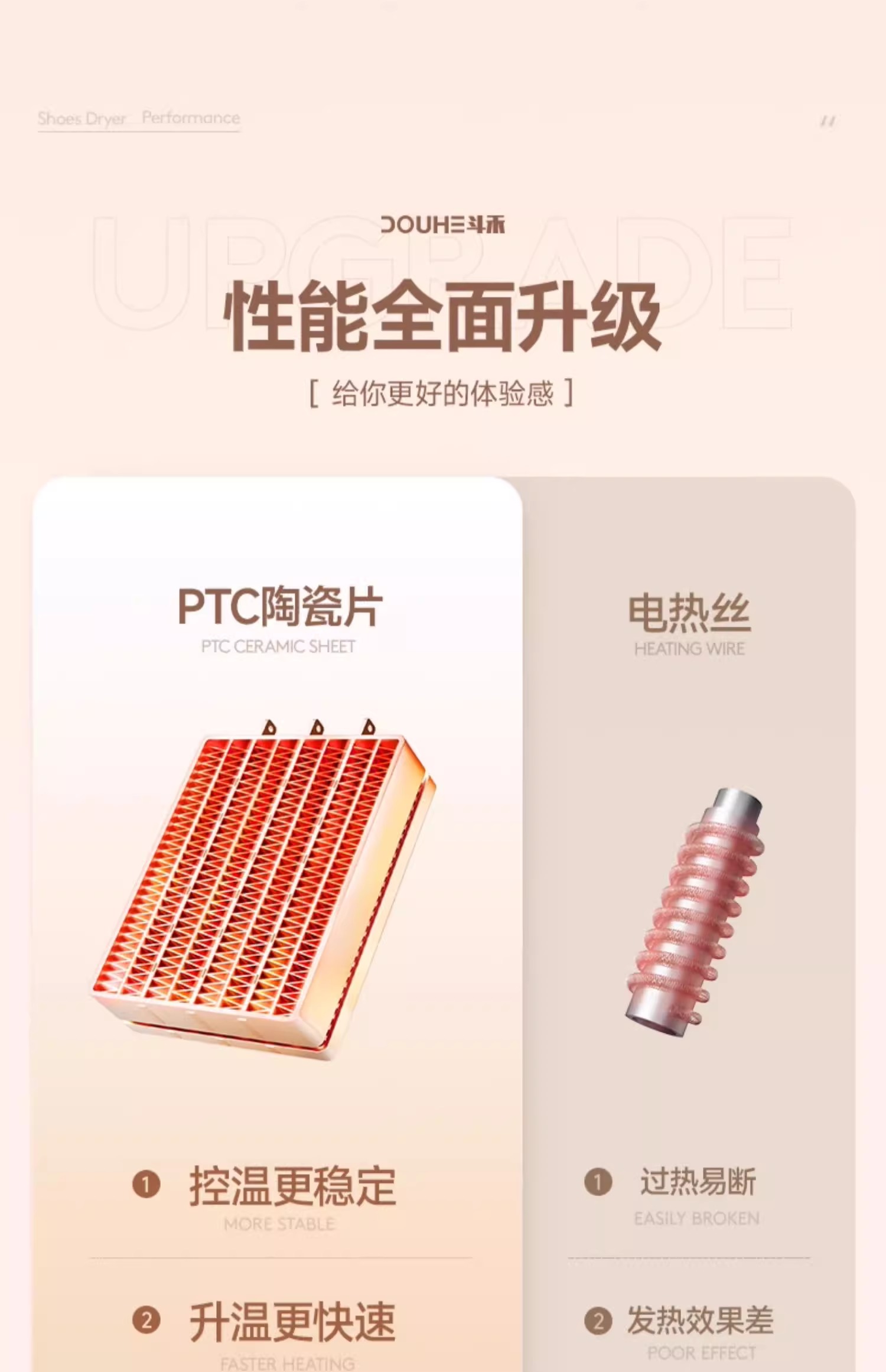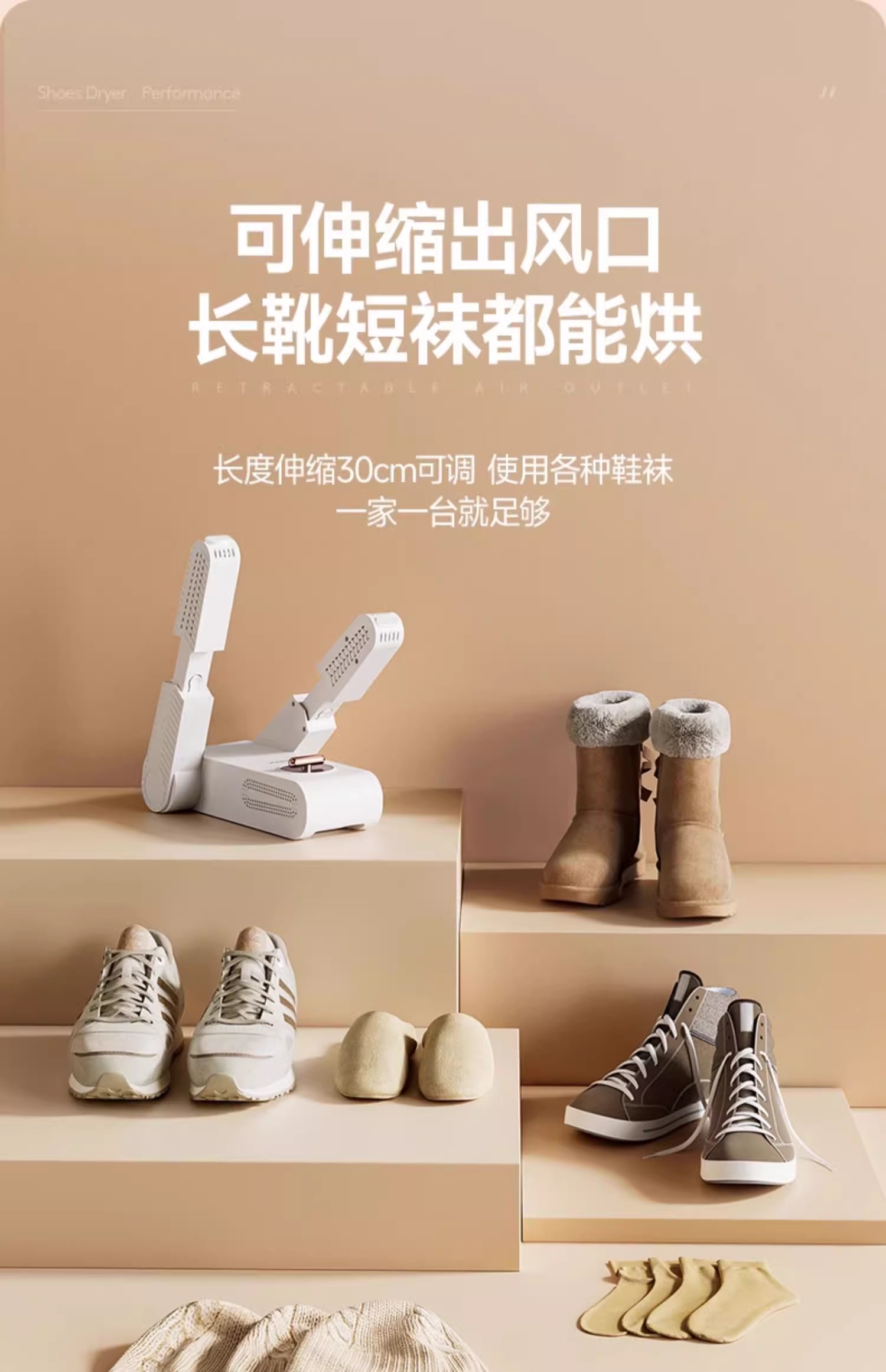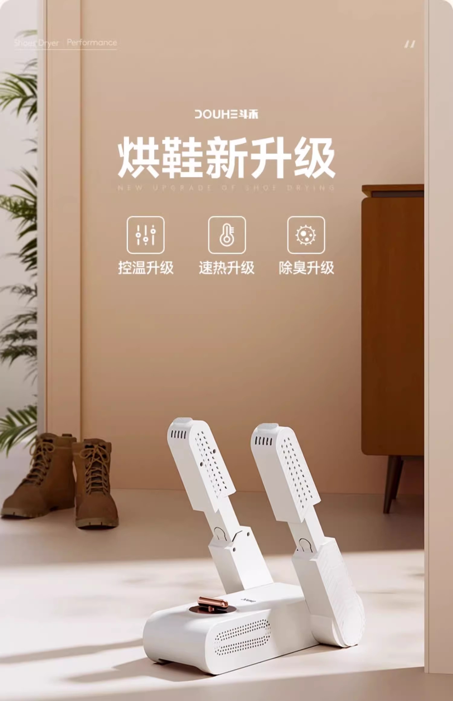 DOUHE斗禾烘鞋器干鞋器 · 家用鞋子烘干机 杀菌除臭「伸缩折叠款+紫光杀菌+玫瑰盐除味」|品牌直发