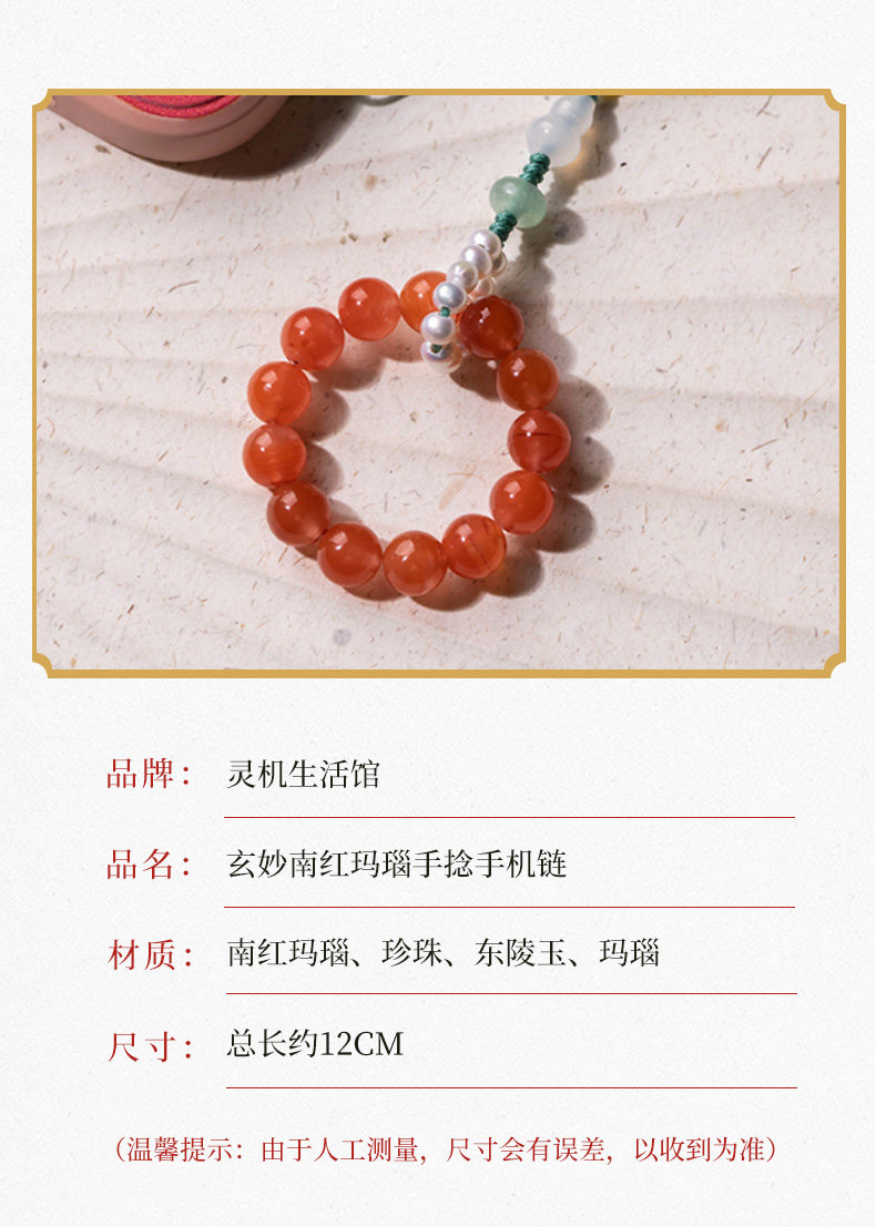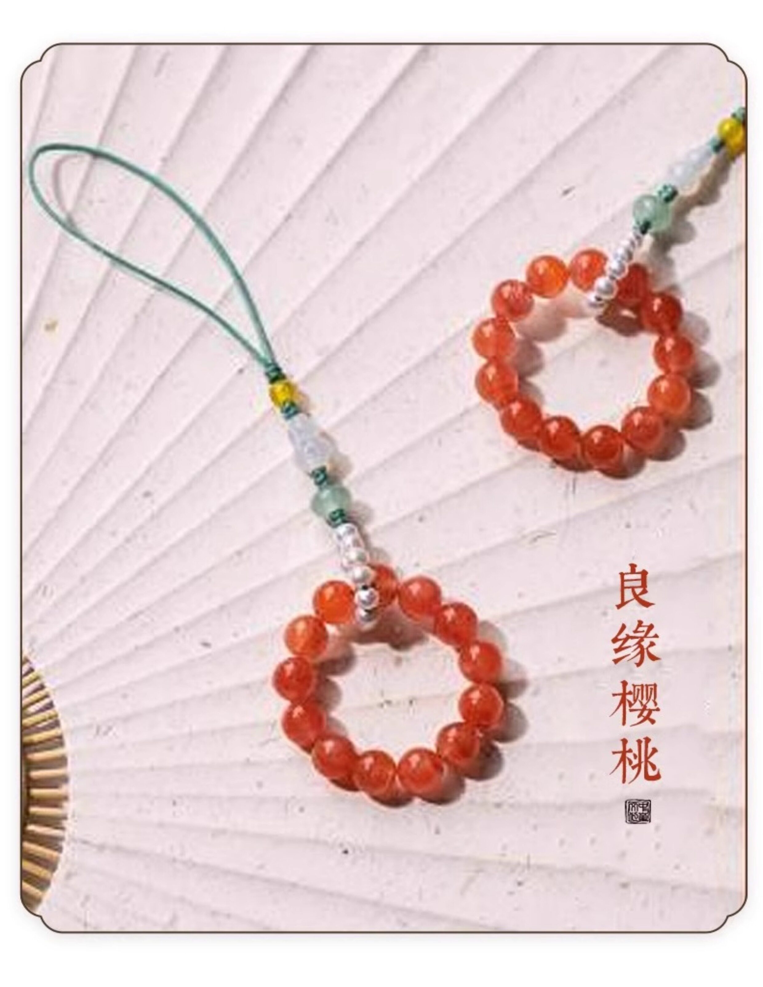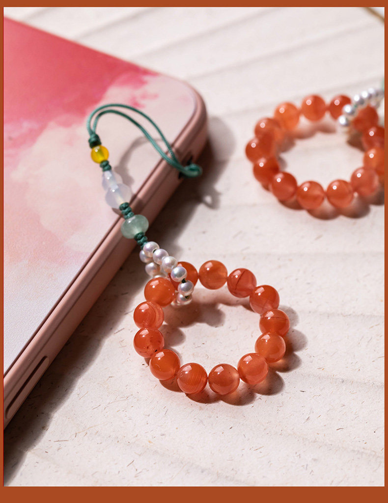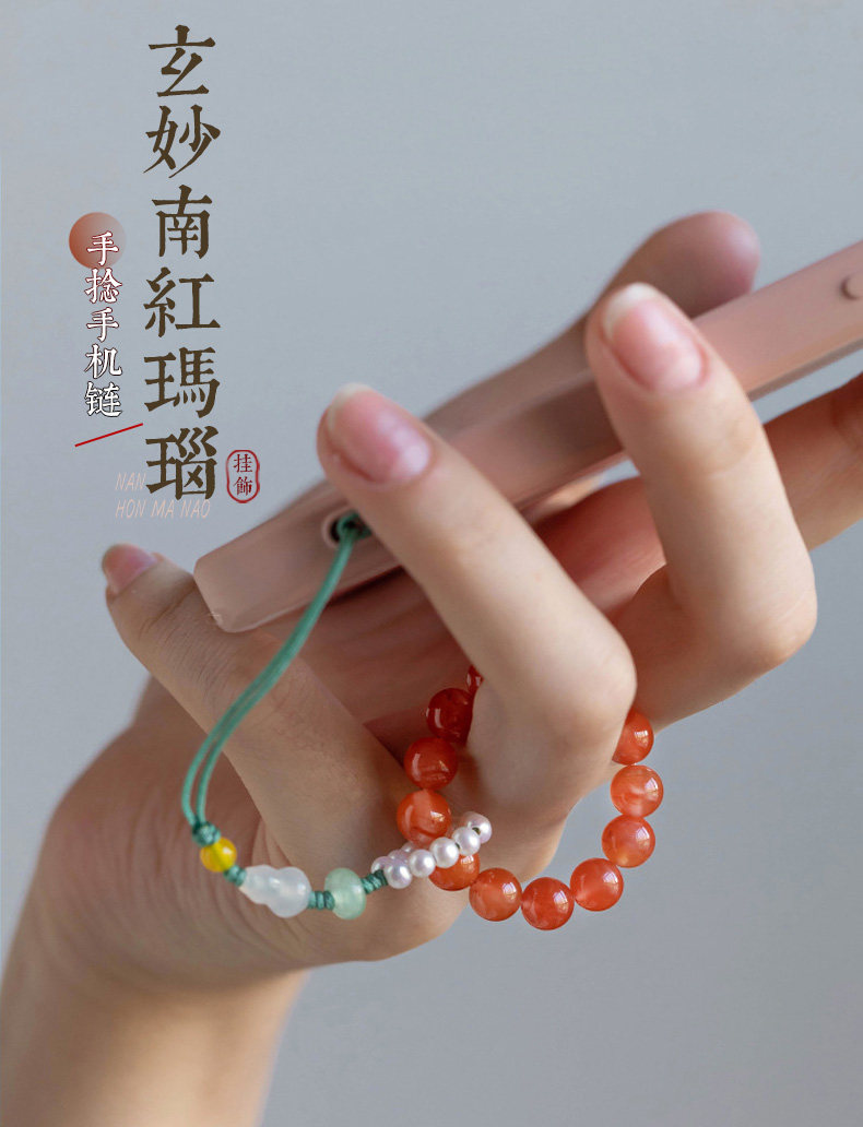 【祈愿吉品】樱桃红南红玛瑙手机链玉石小手捻指环防摔挂绳挂件